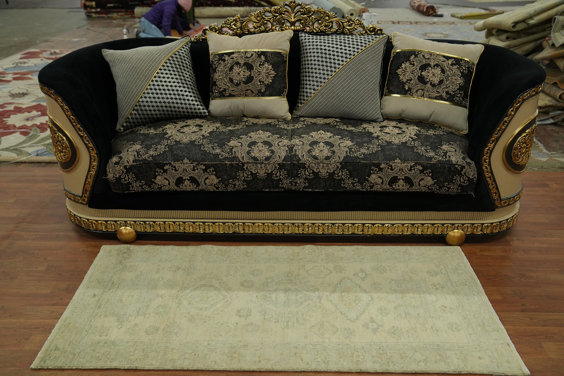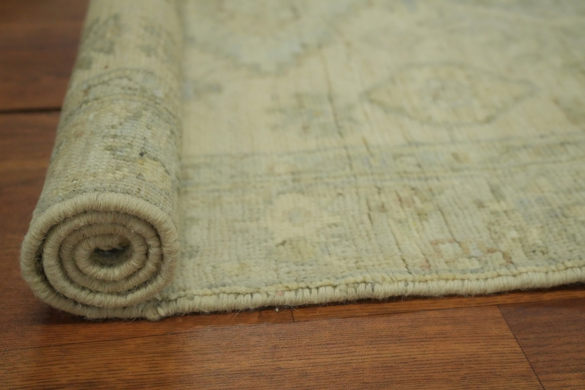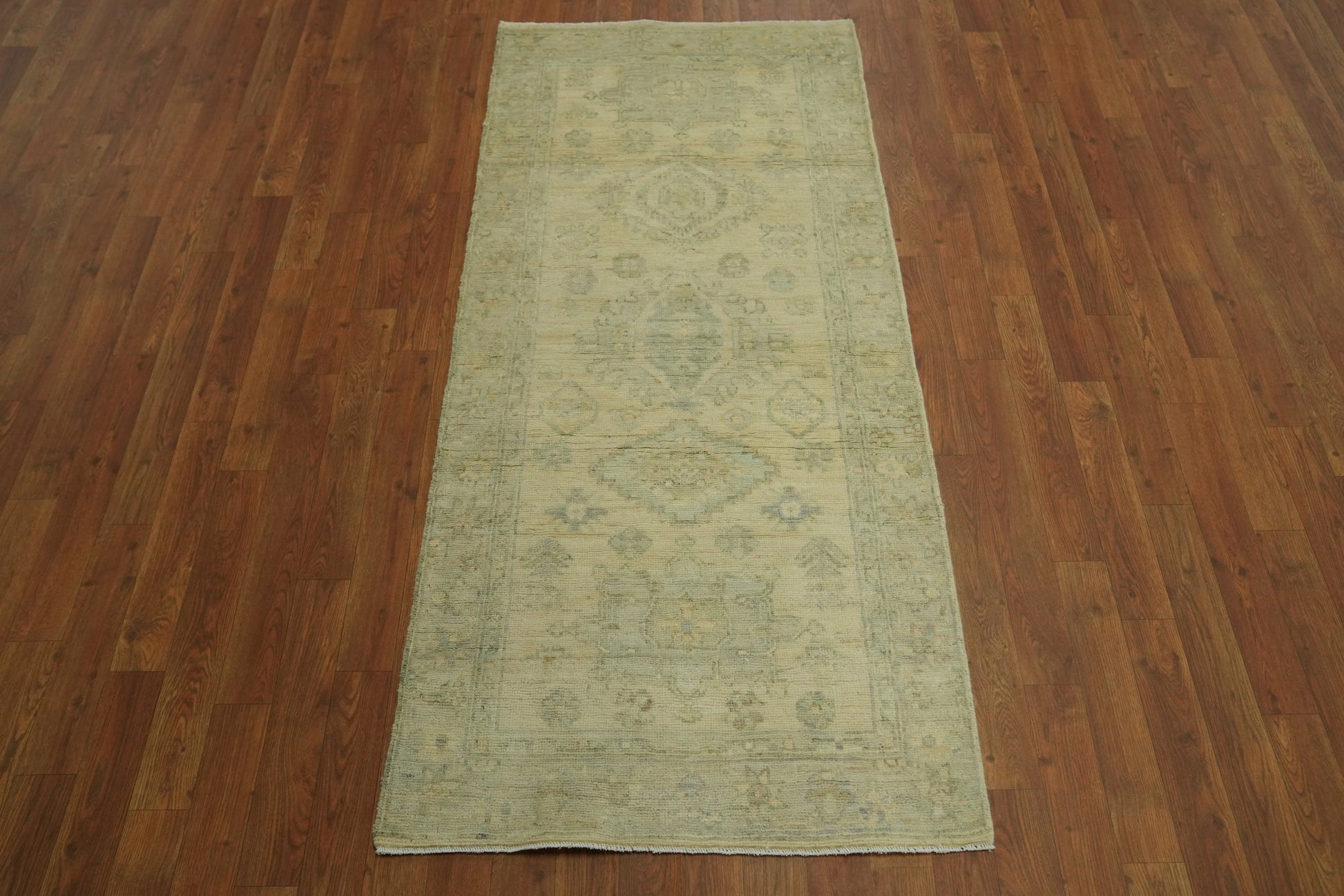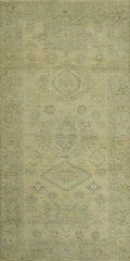 A Beautiful Genuine Turkey Oushak rug is Hand Knotted by skillful weavers in Turkey with 100% Wool Material. This rug is in New, First Quality condition. dimensions are 5' 11'' X 2' 9'' in foot and 180 X 84 in centimeter. the primary color is Beige & Ivories.