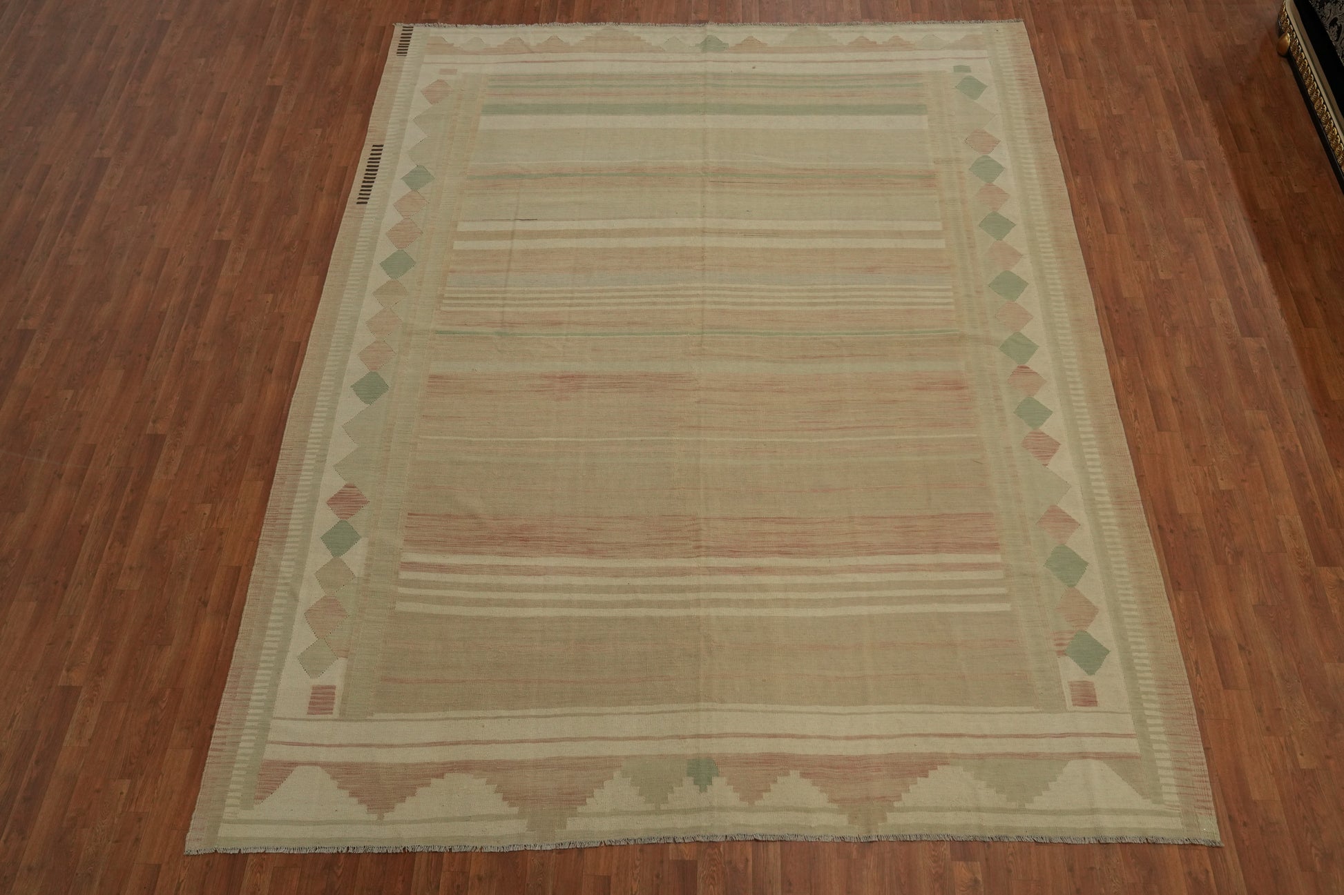 Earth Tones Wool Kilim Flat Weave Area Rug 10x13