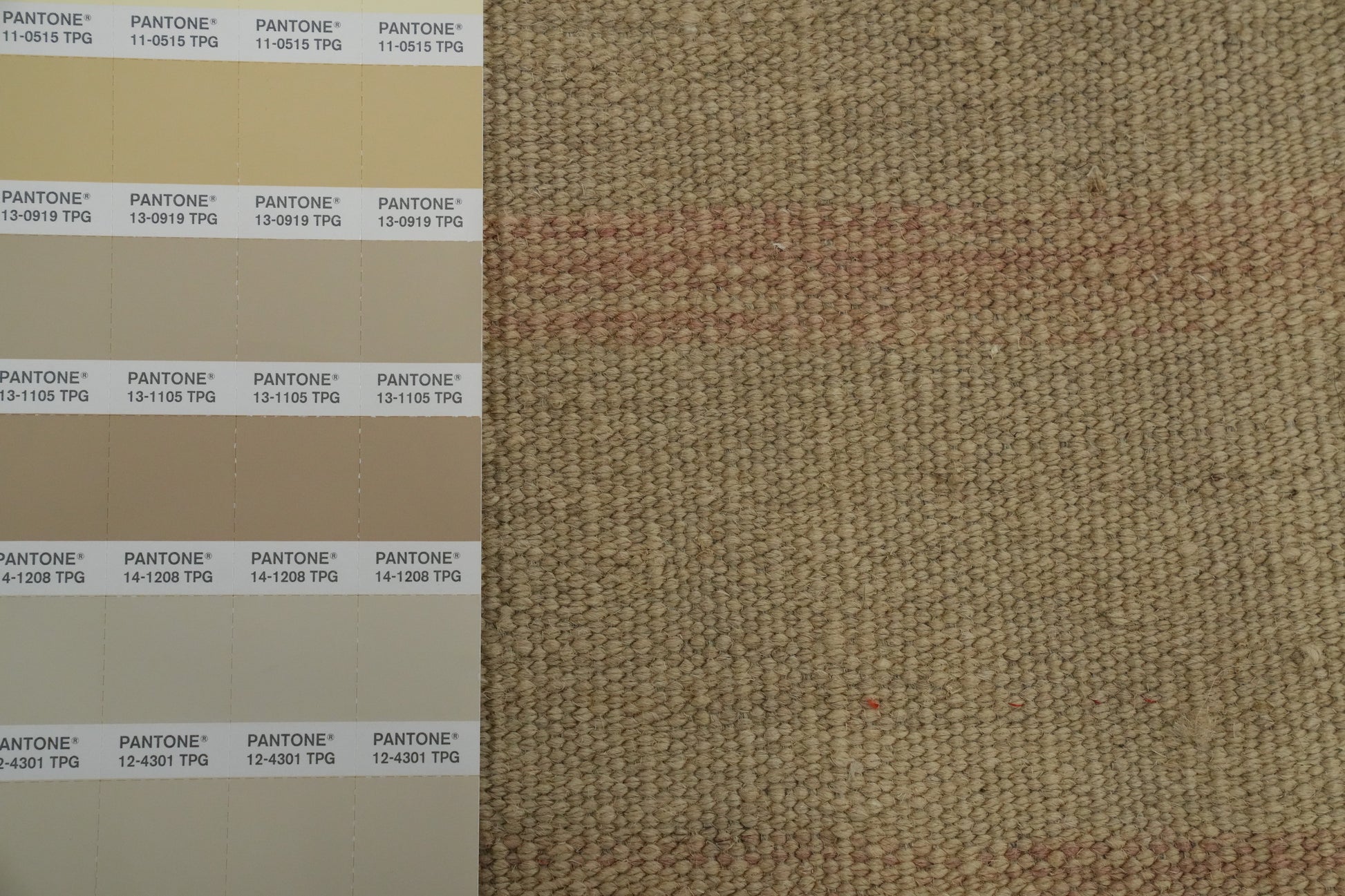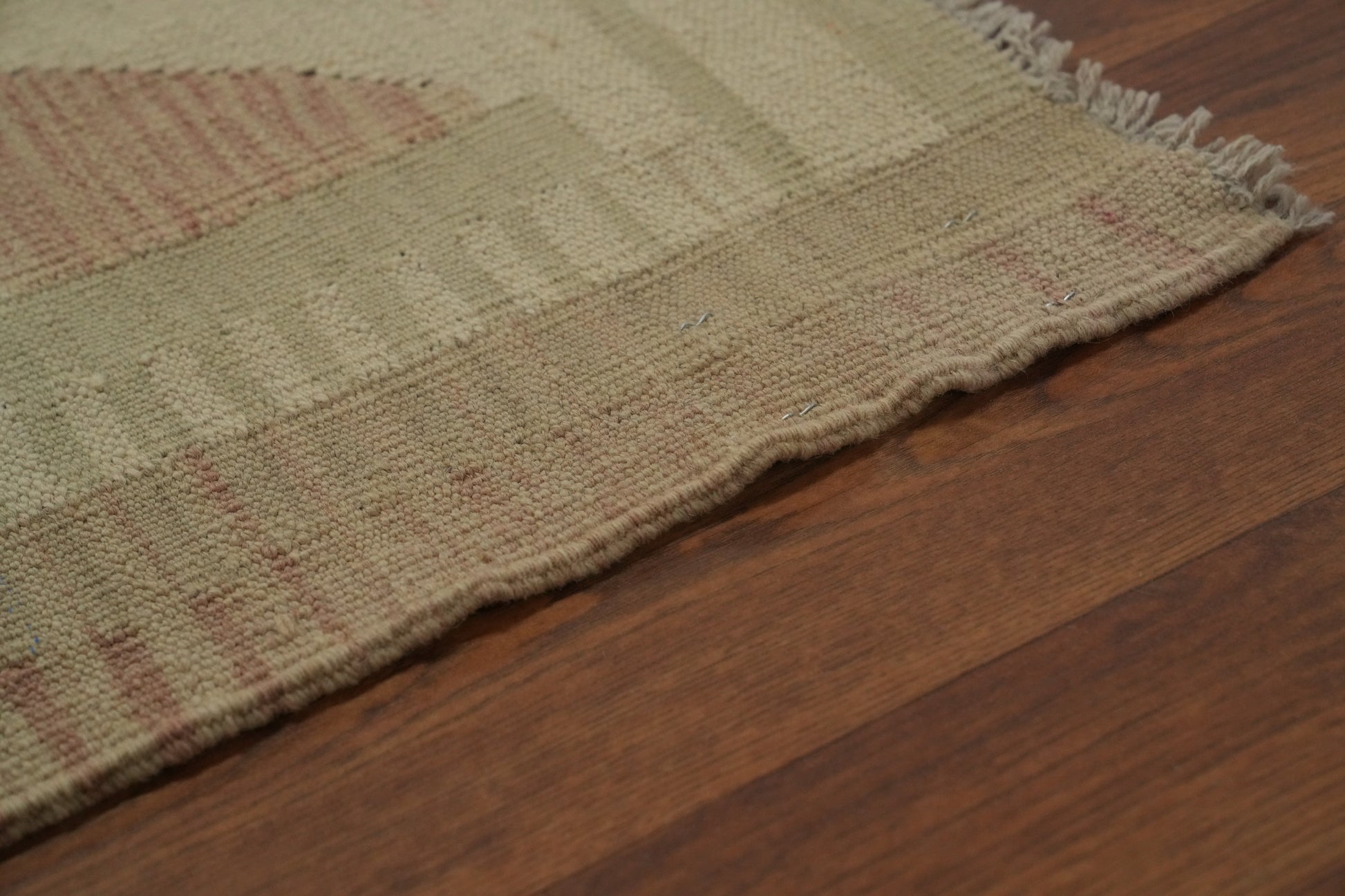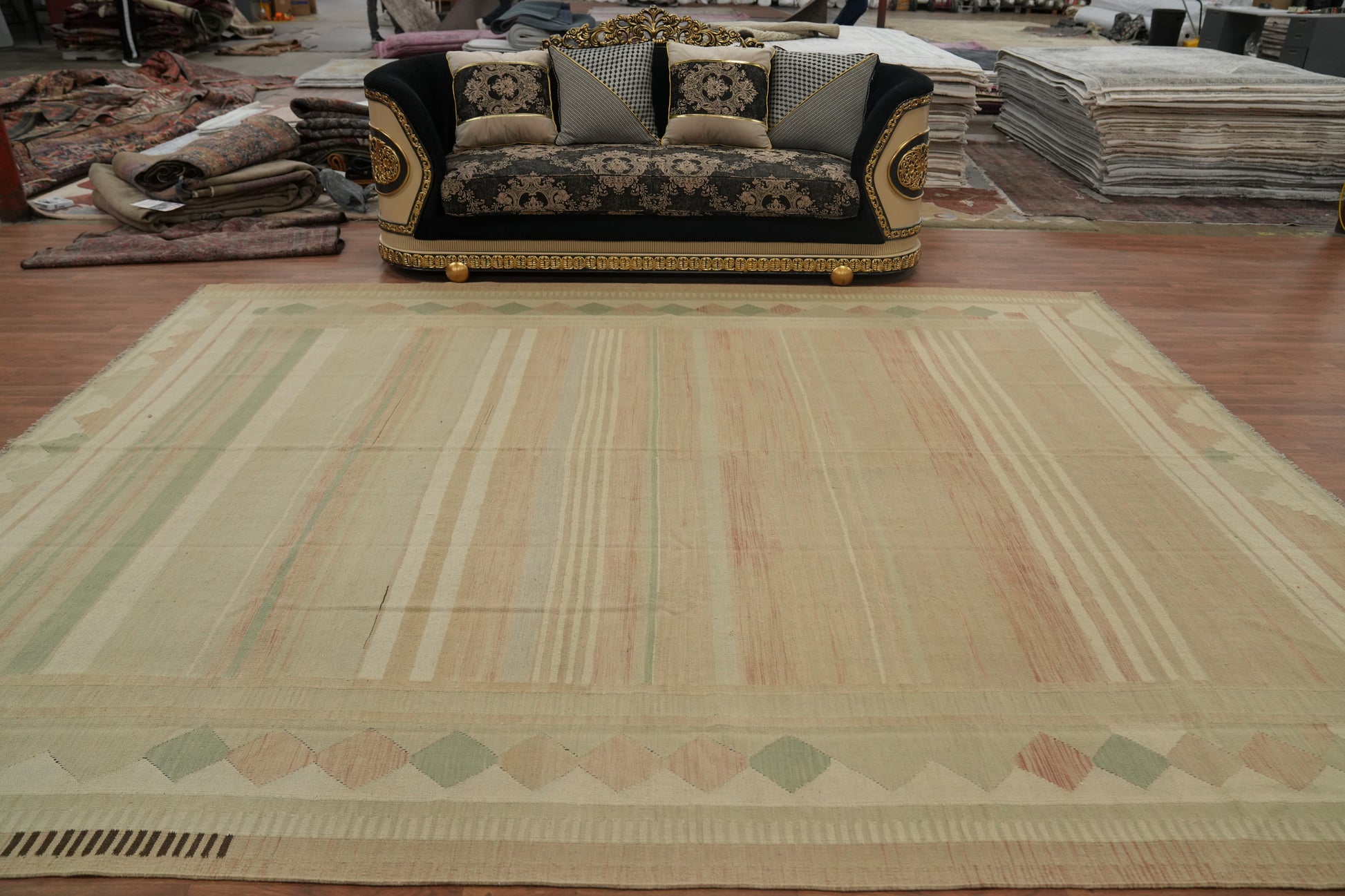 A Beautiful Genuine Pakistan Kilim rug is Hand Woven by skillful weavers in Pakistan with 100% Wool Material. This rug is in New, First Quality condition. dimensions are 12' 8'' X 10' 2'' in foot and 386 X 310 in centimeter. the primary color is Beige & Ivories.