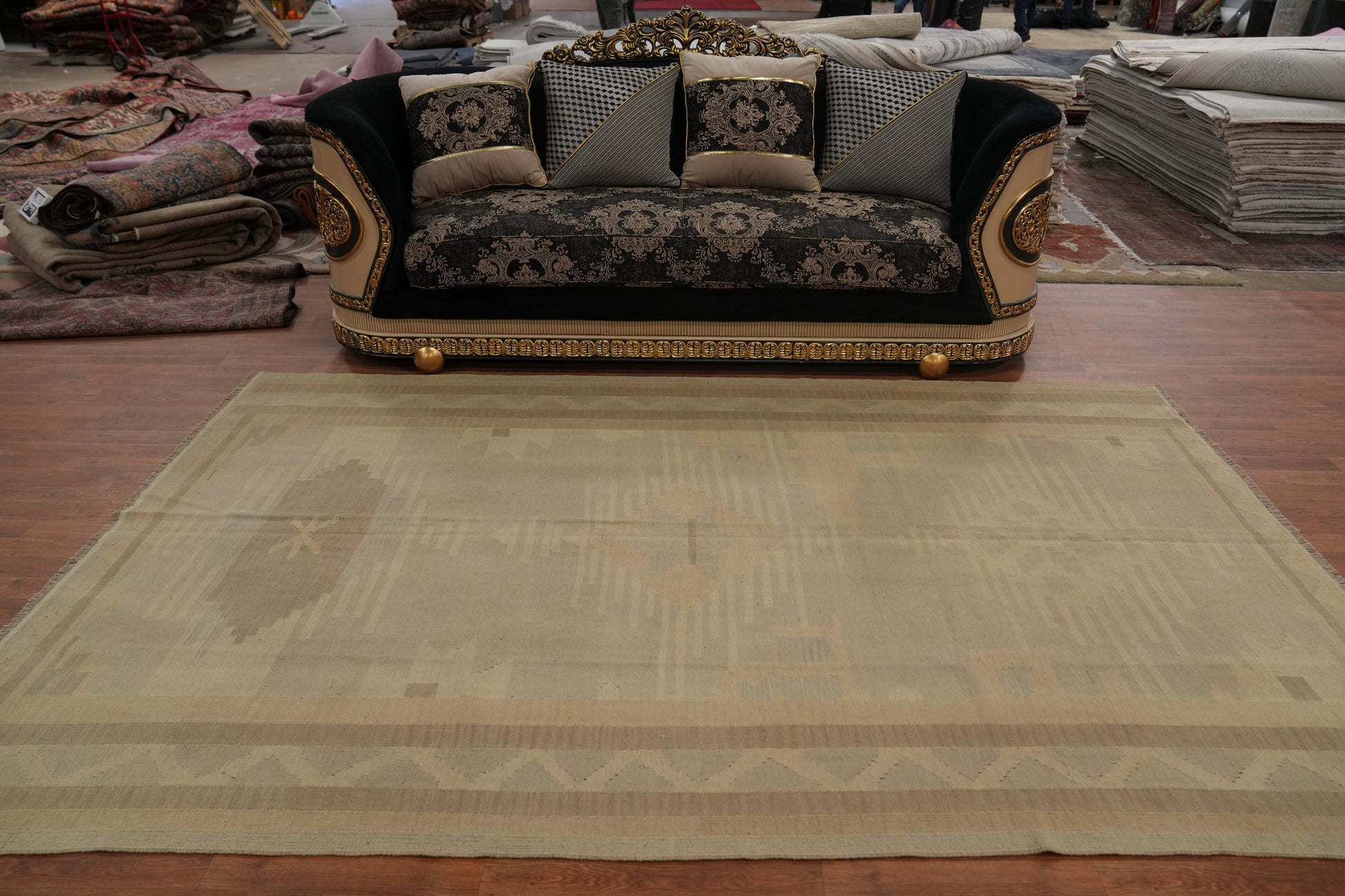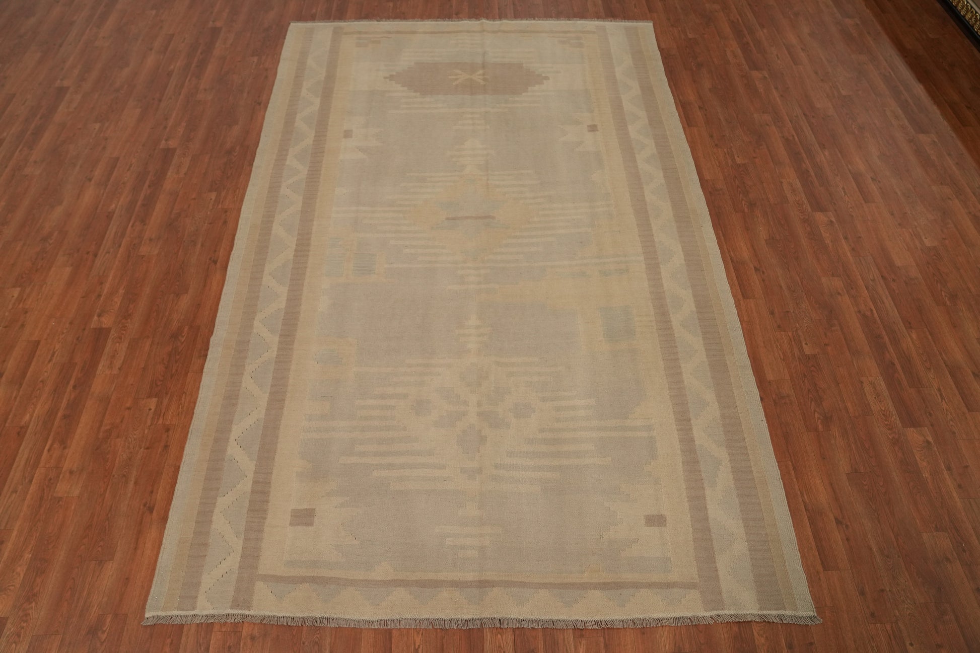 Earth Tones Wool Kilim Flat Weave Area Rug 6x10