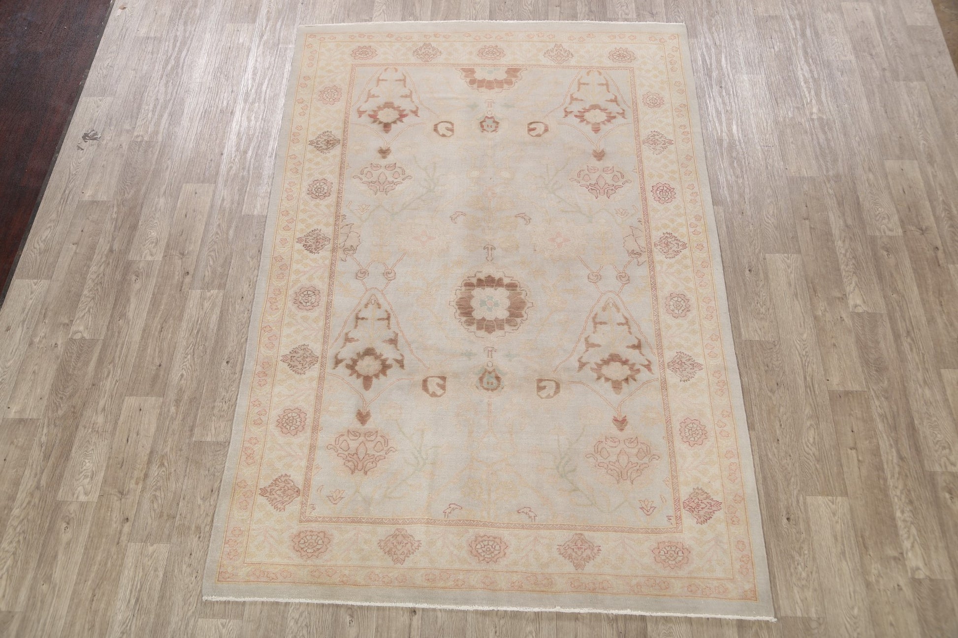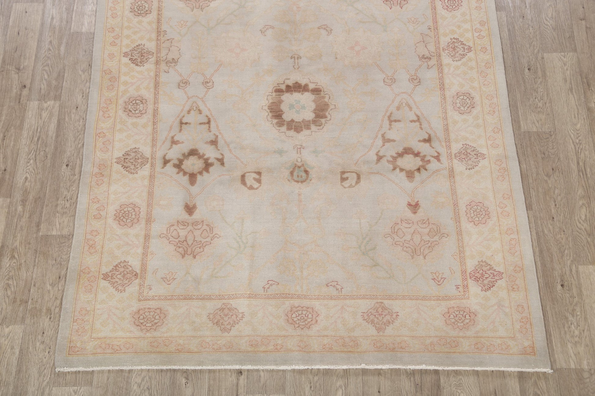 A Beautiful Genuine Egypt Oushak rug is Hand Knotted by skillful weavers in Egypt with 100% Wool Material. This rug is in New, First Quality condition. dimensions are 8' 11'' X 6' 0'' in foot and 272 X 183 in centimeter. the primary color is Greys & Charcoal.