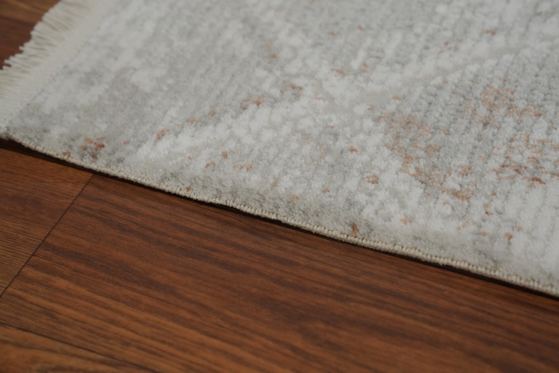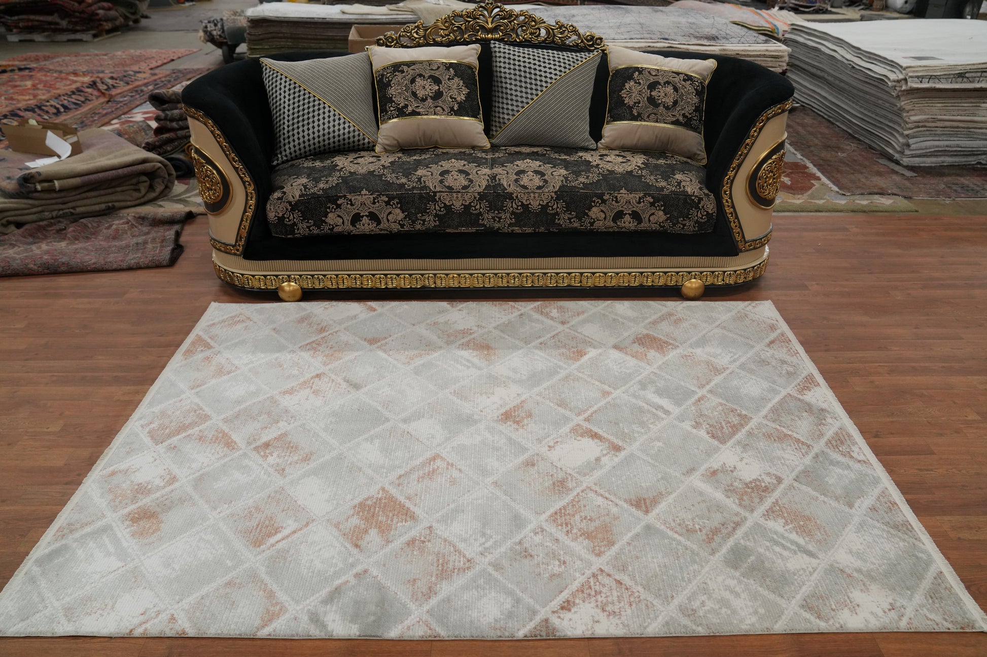 A Beautiful Genuine Turkey Modern rug is Machine Made by skillful weavers in Turkey with Polyester Material. This rug is in New, First Quality condition. dimensions are 7' 5'' X 5' 2'' in foot and 226 X 157 in centimeter. the primary color is Greys & Charcoal.