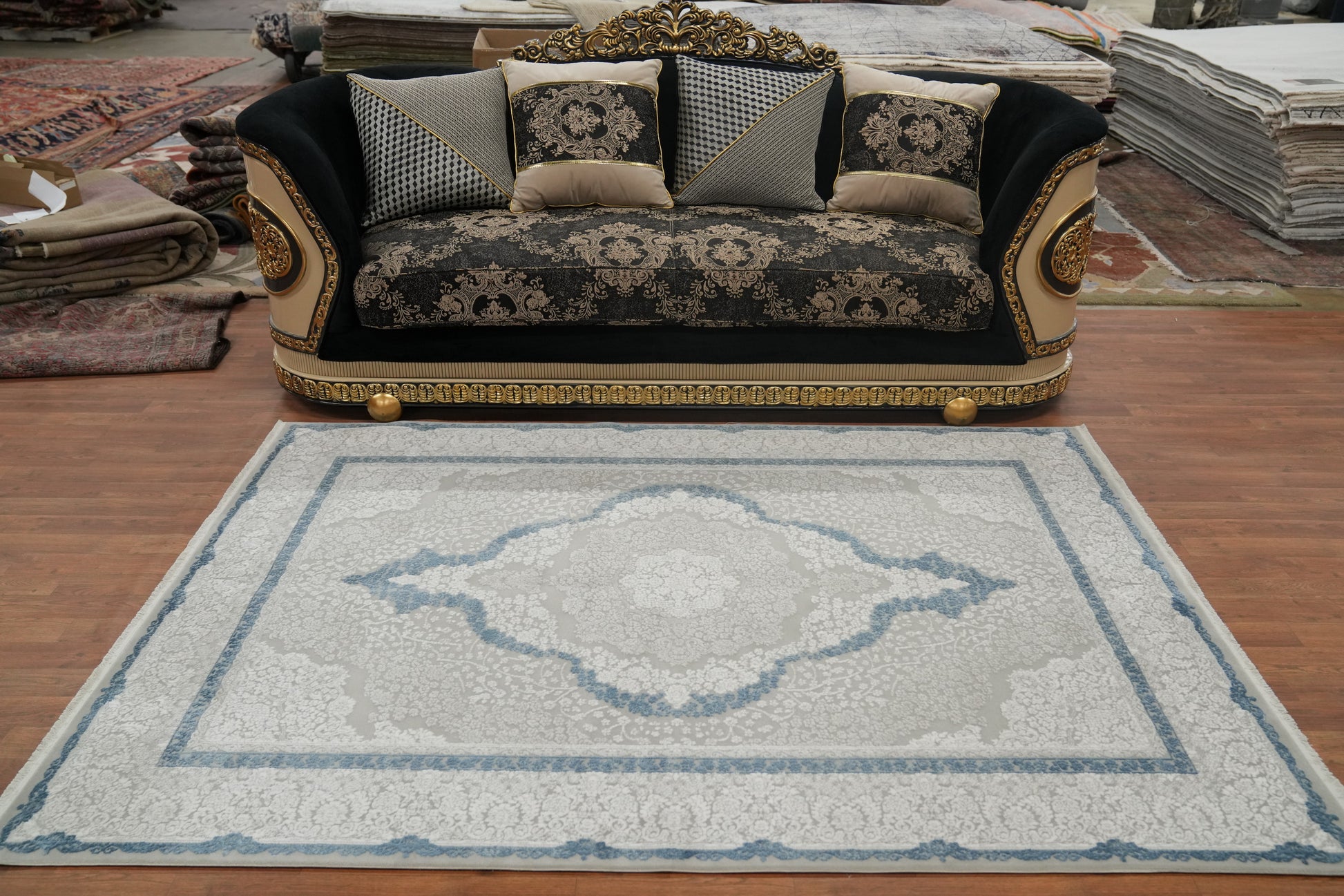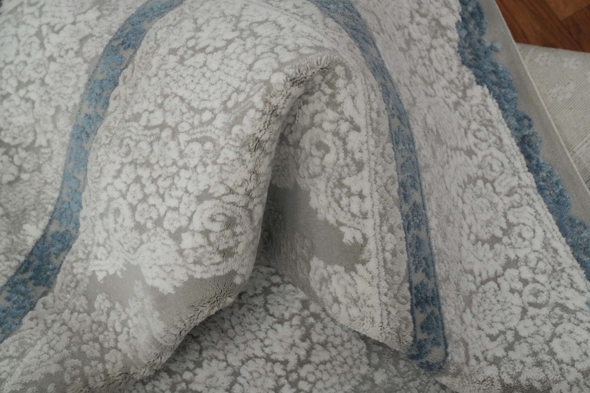 A Beautiful Genuine Turkey Tabriz rug is Machine Made by skillful weavers in Turkey with Polyester Material. This rug is in New, First Quality condition. dimensions are 7' 5'' X 5' 2'' in foot and 226 X 157 in centimeter. the primary color is Greys & Charcoal.