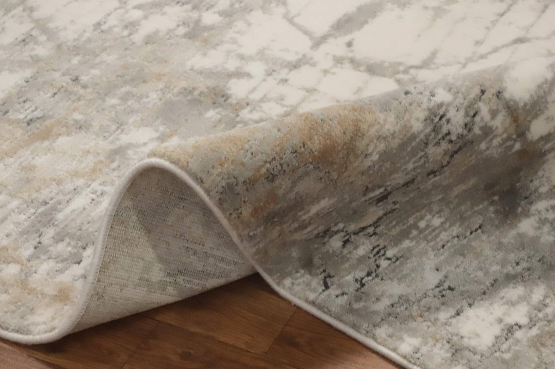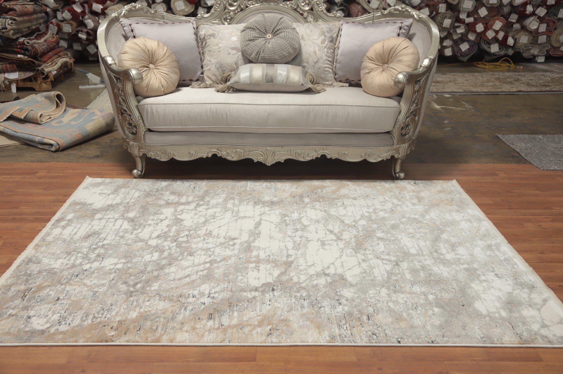 A Beautiful Genuine Turkey Abstract rug is Machine Made by skillful weavers in Turkey with Polyester Material. This rug is in New, First Quality condition. dimensions are 7' 5'' X 5' 2'' in foot and 226 X 157 in centimeter. the primary color is Beige & Ivories.