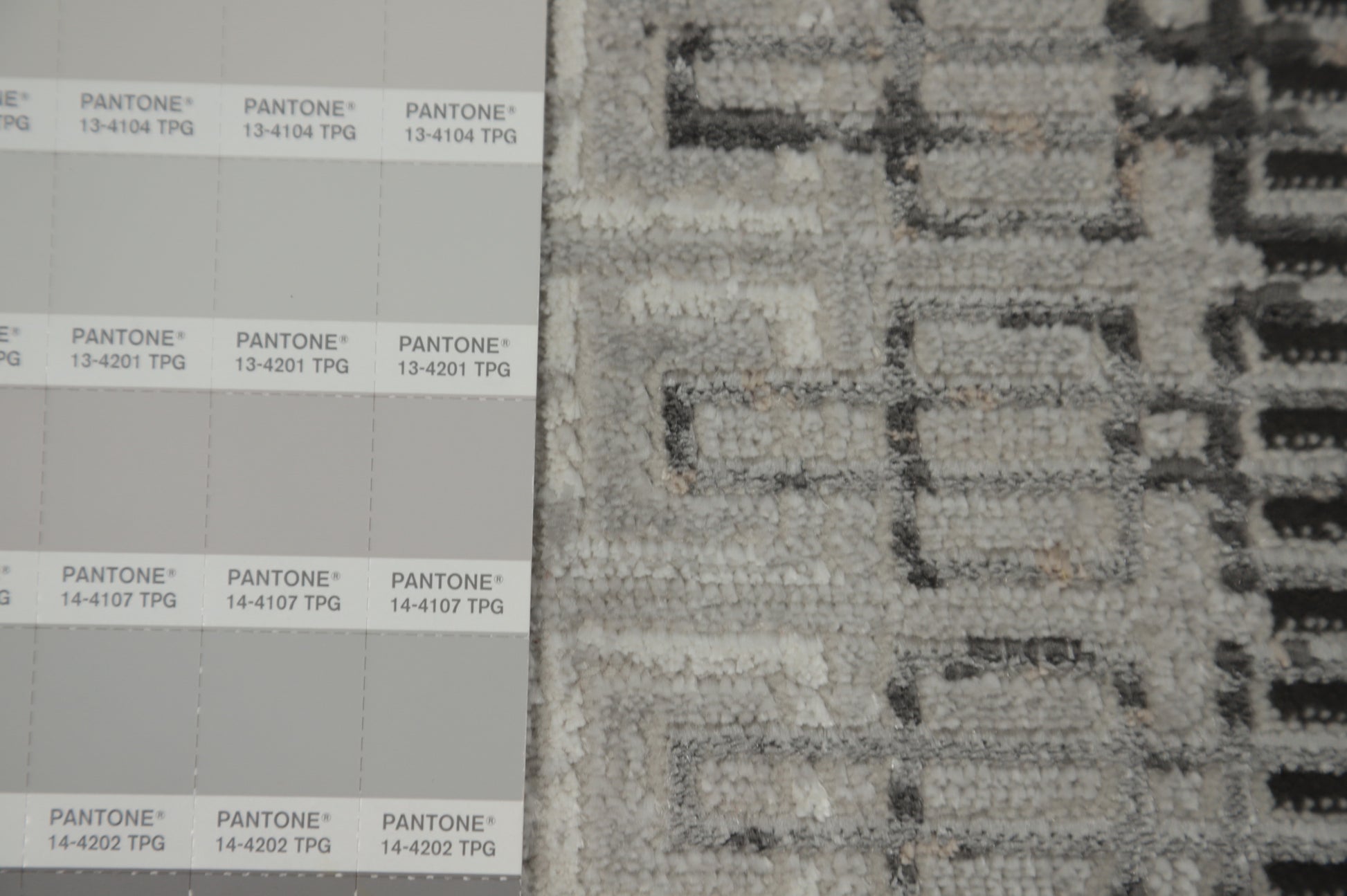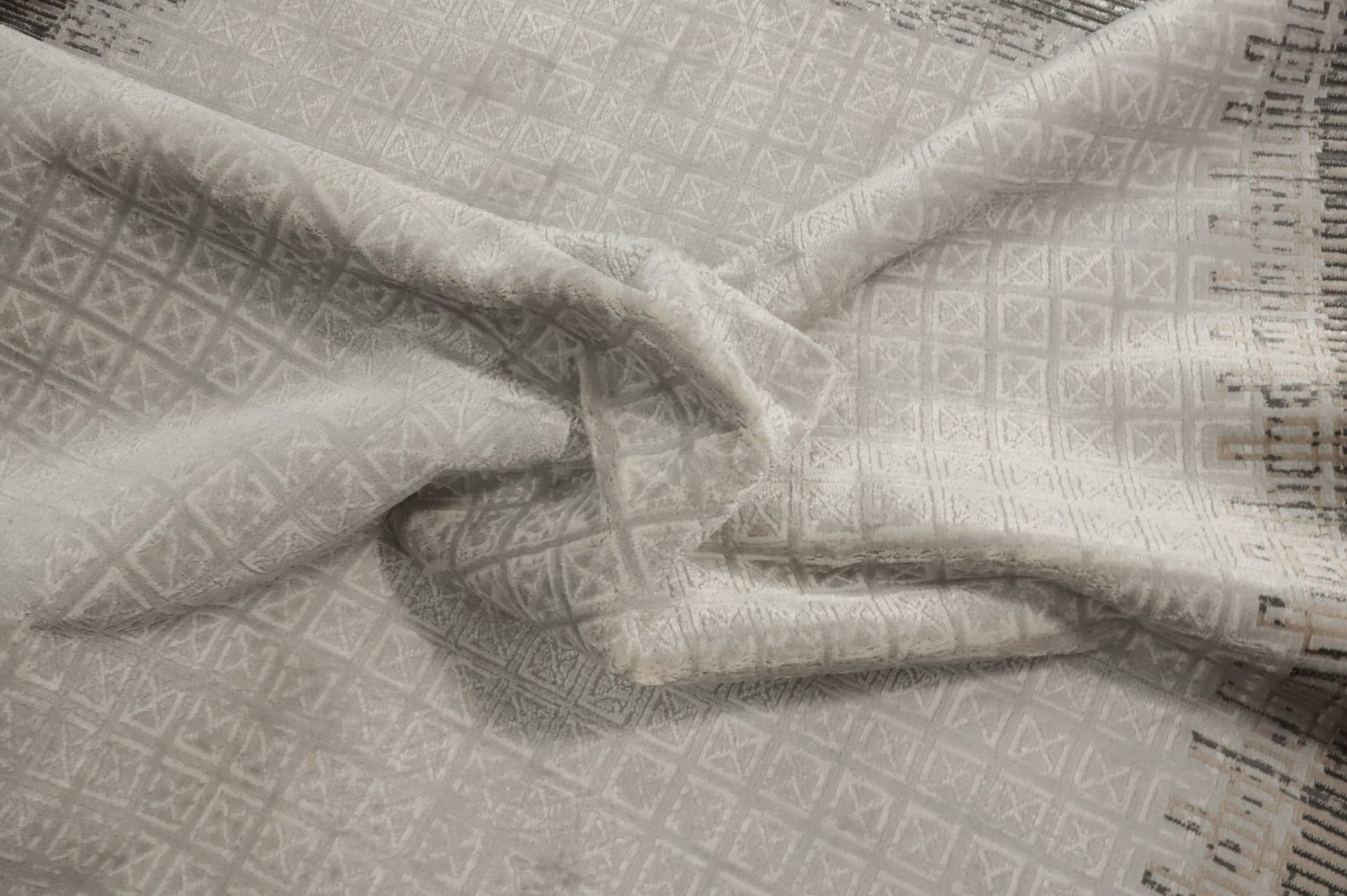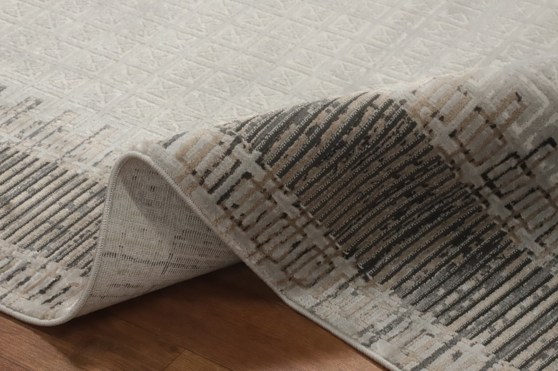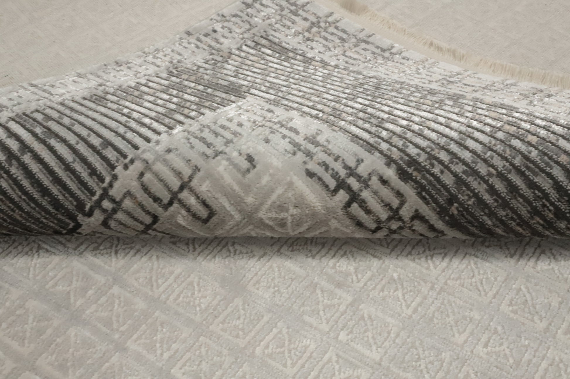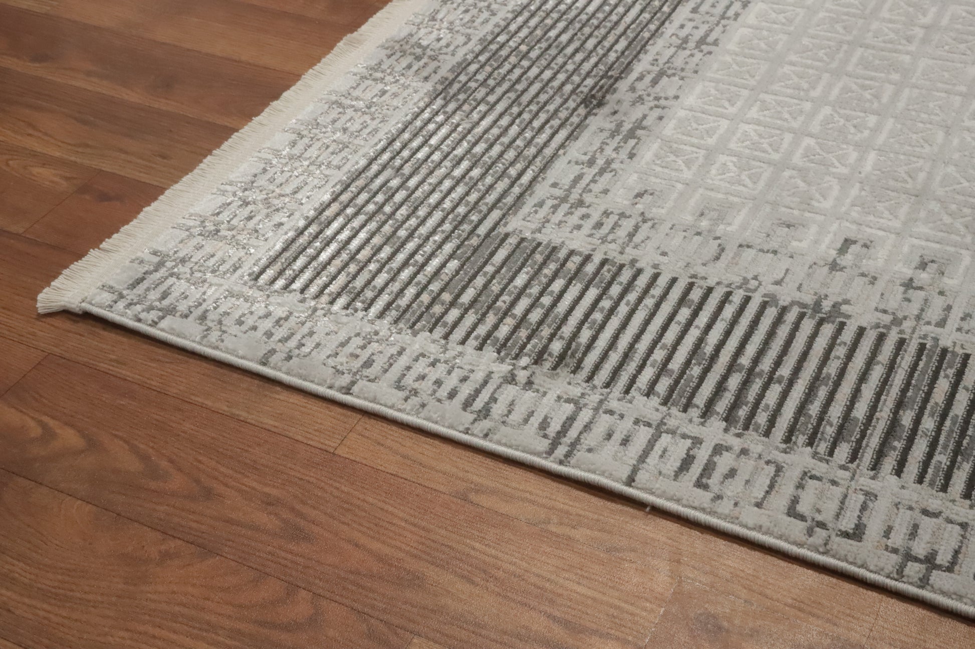 A Beautiful Genuine Turkey Modern rug is Machine Made by skillful weavers in Turkey with Polyester Material. This rug is in New, First Quality condition. dimensions are 7' 8'' X 5' 2'' in foot and 234 X 157 in centimeter. the primary color is Greys & Charcoal.