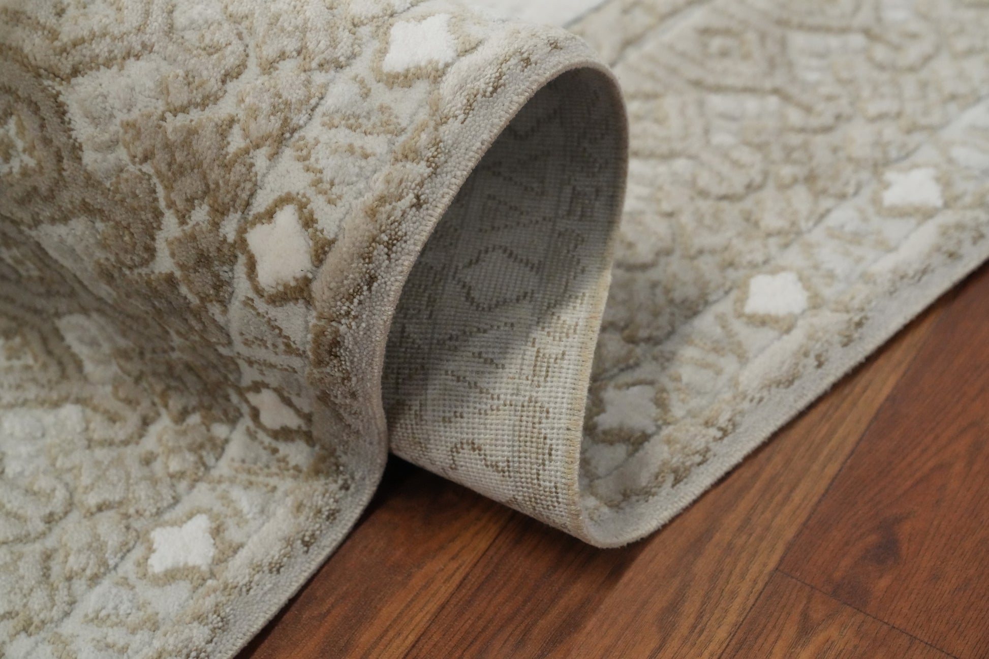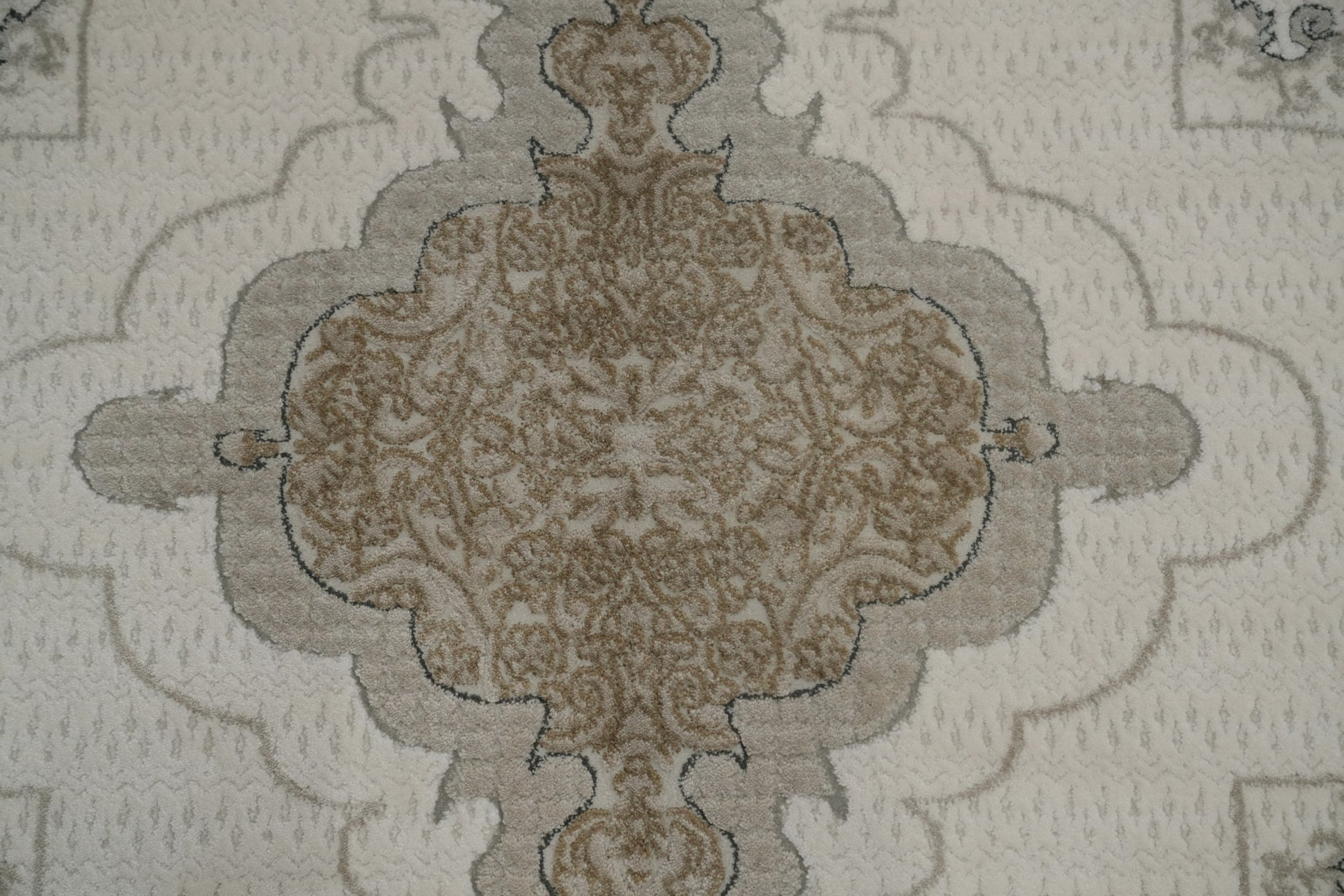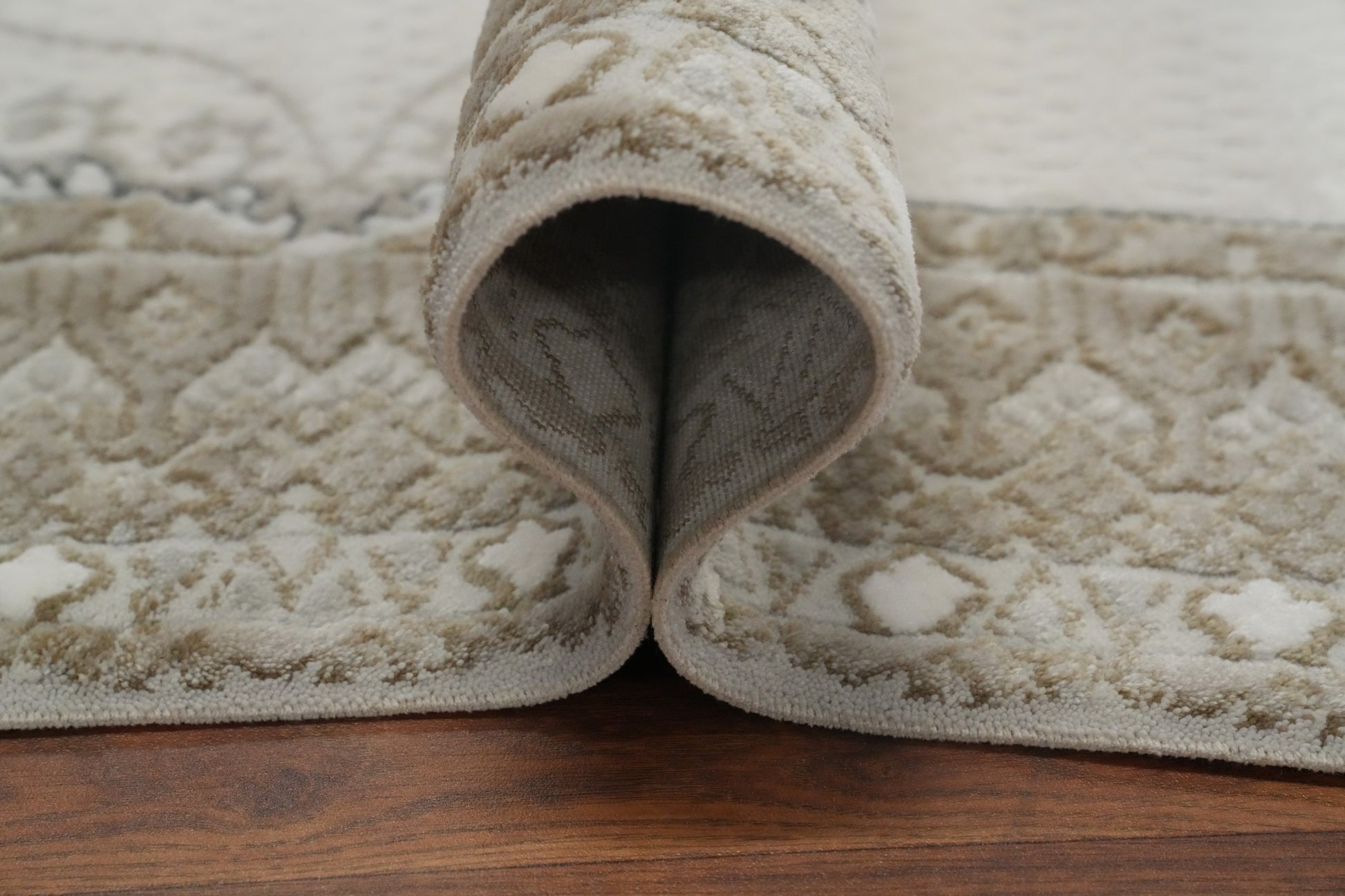 A Beautiful Genuine Turkey Tabriz rug is Machine Made by skillful weavers in Turkey with Polyester Material. This rug is in New, First Quality condition. dimensions are 7' 5'' X 5' 2'' in foot and 226 X 157 in centimeter. the primary color is Beige & Ivories.