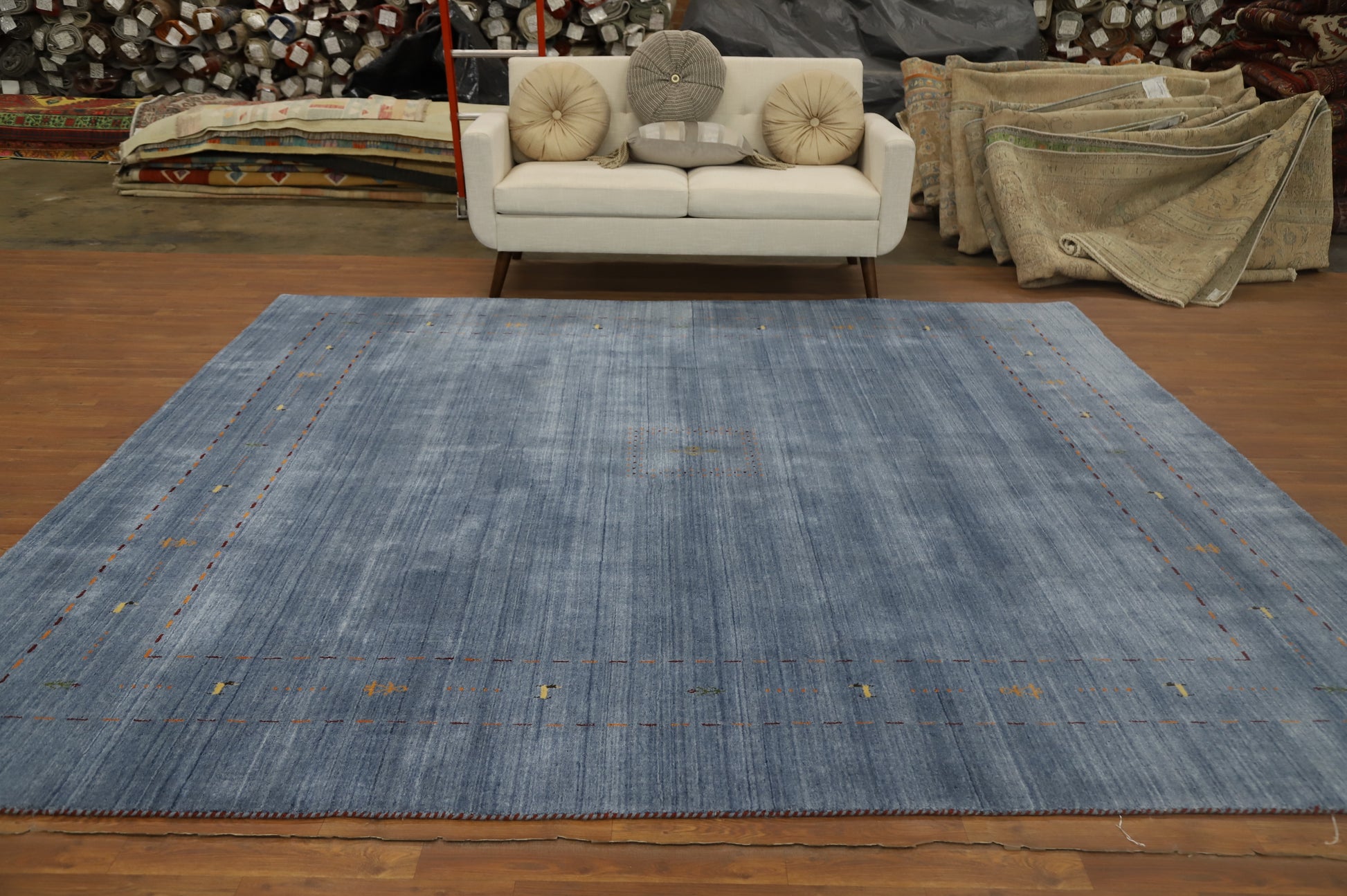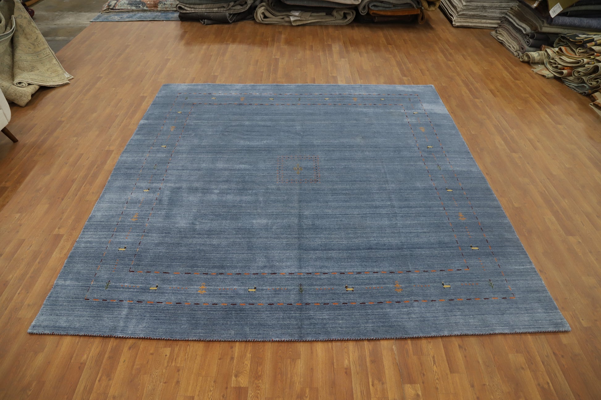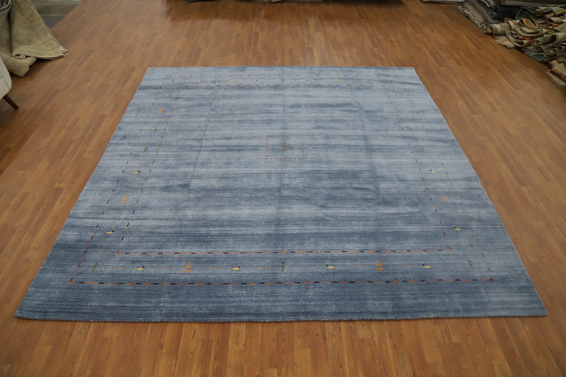 Elegant Soft Blue Handmade Gabbeh Square Area Rug 10x10