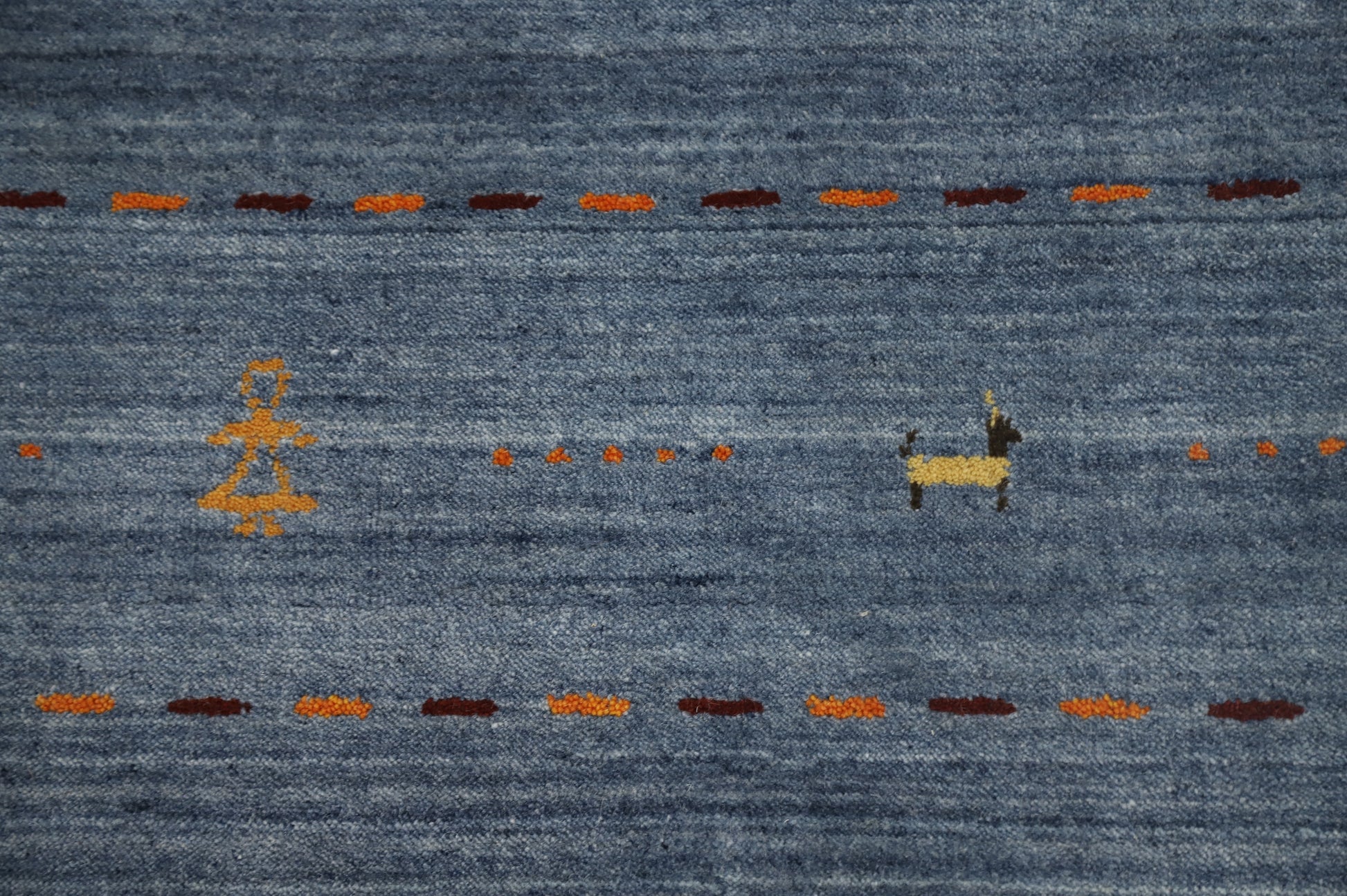 A Beautiful Genuine India Gabbeh rug is Hand Knotted by skillful weavers in India with 100% Wool Material. This rug is in New, First Quality condition. dimensions are 9' 10'' X 9' 9'' in foot and 300 X 297 in centimeter. the primary color is Navy Blue & Blues.