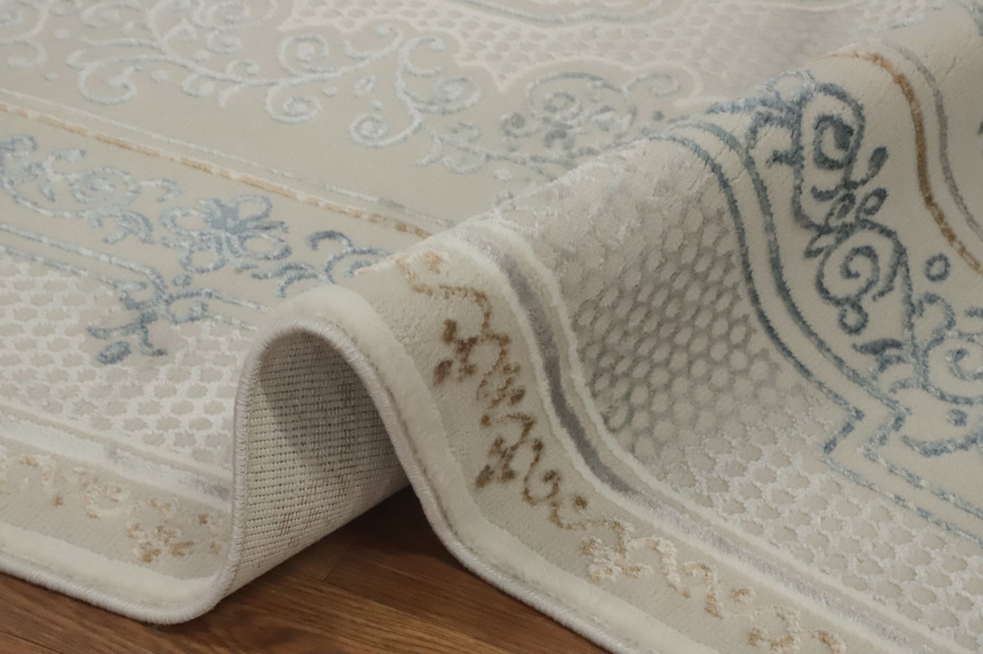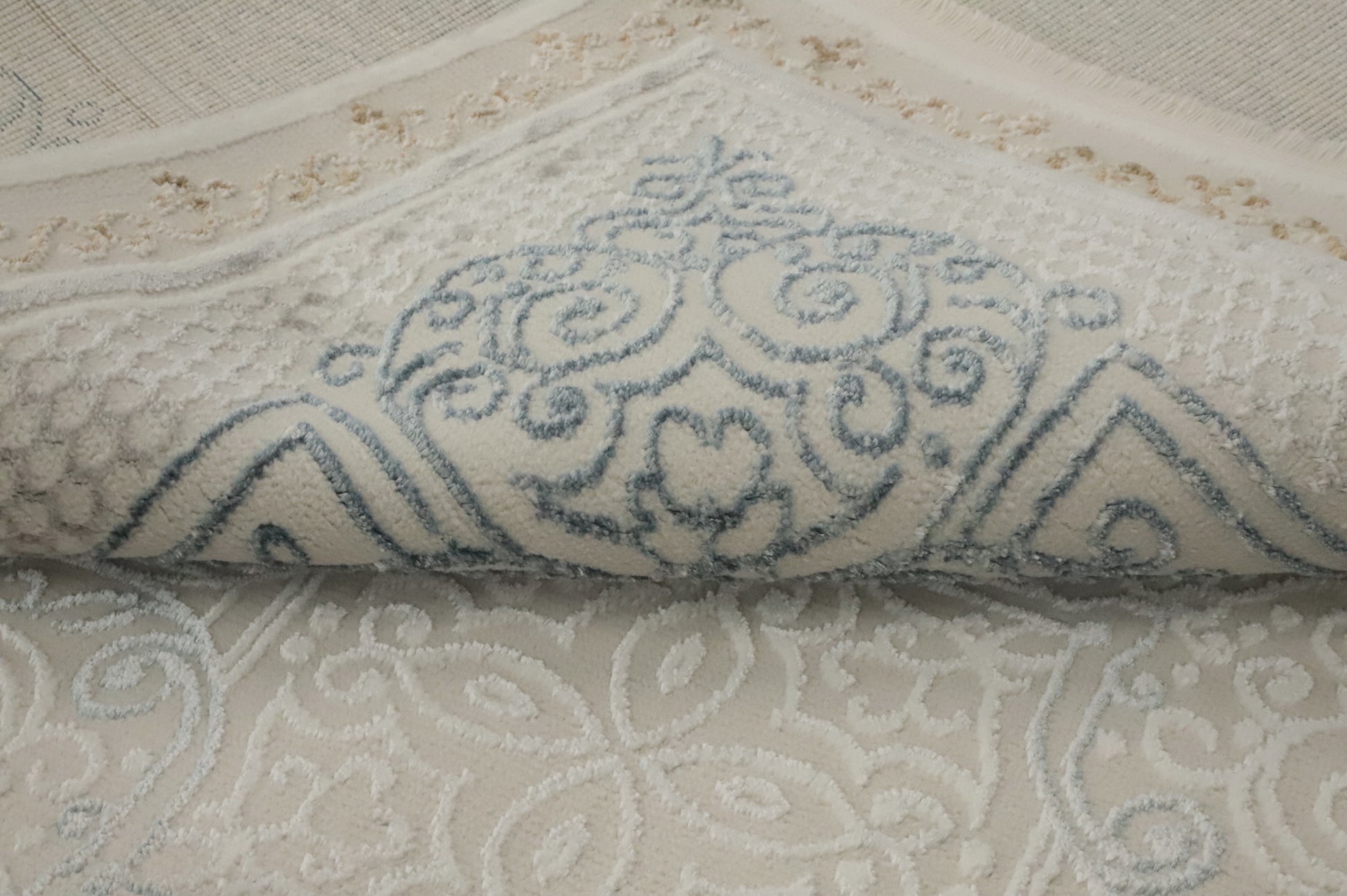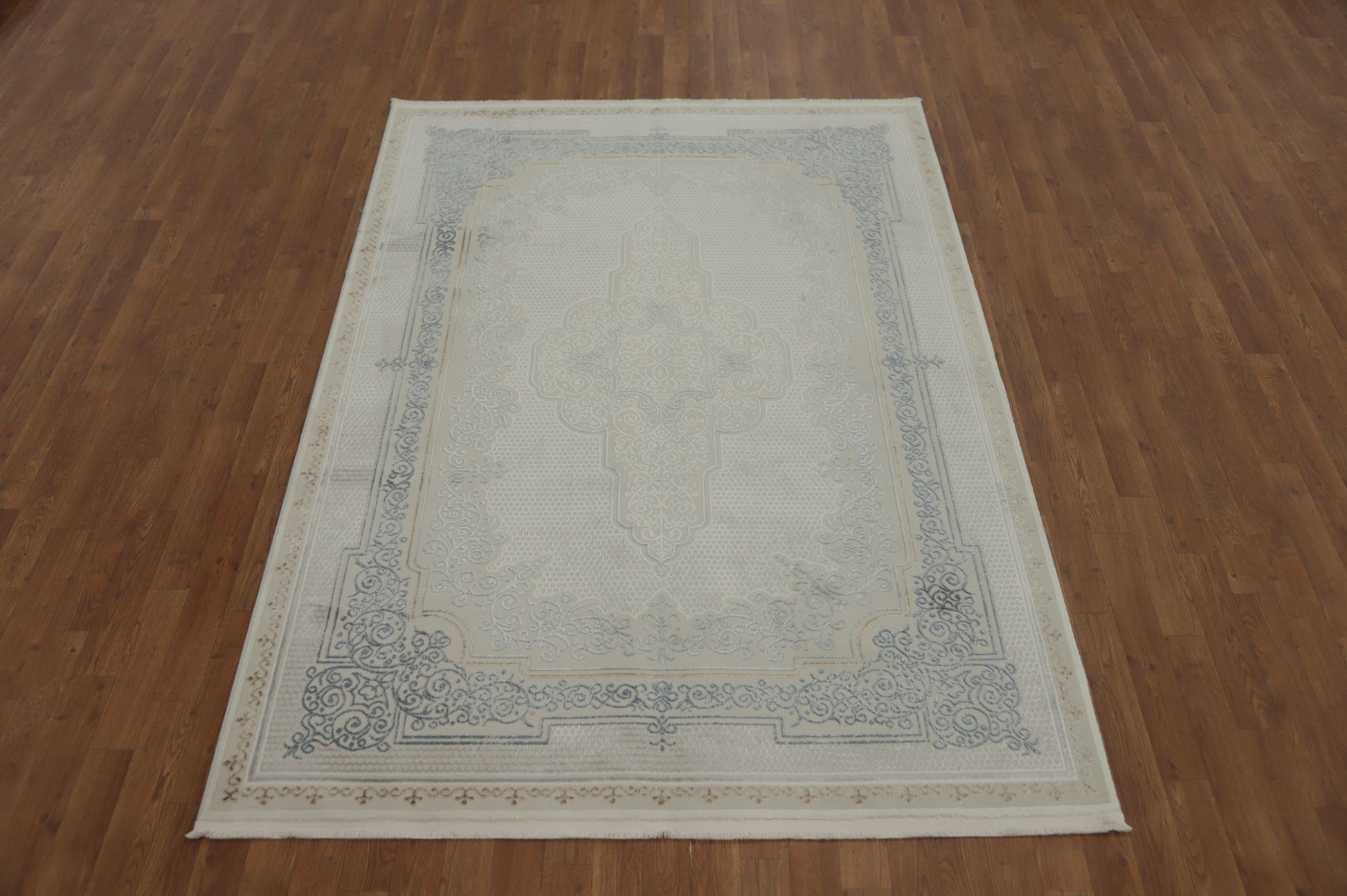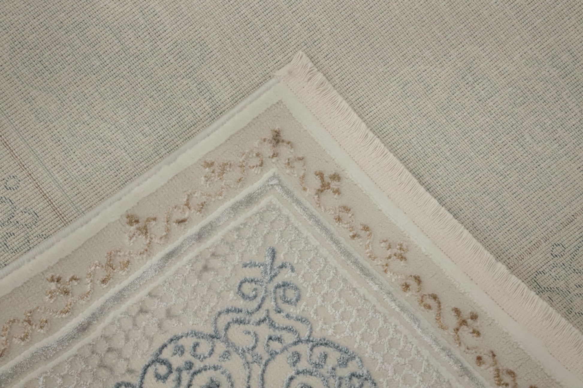 A Beautiful Genuine Turkey Tabriz rug is Machine Made by skillful weavers in Turkey with Polyester Material. This rug is in New, First Quality condition. dimensions are 7' 5'' X 5' 2'' in foot and 226 X 157 in centimeter. the primary color is Beige & Ivories.