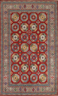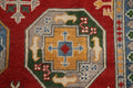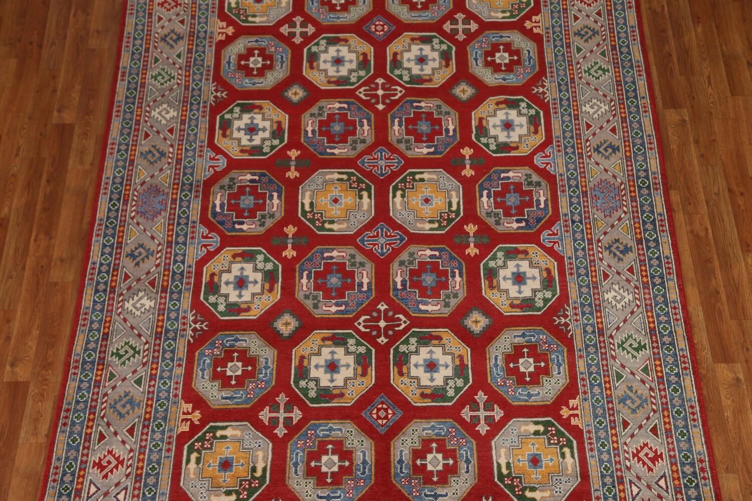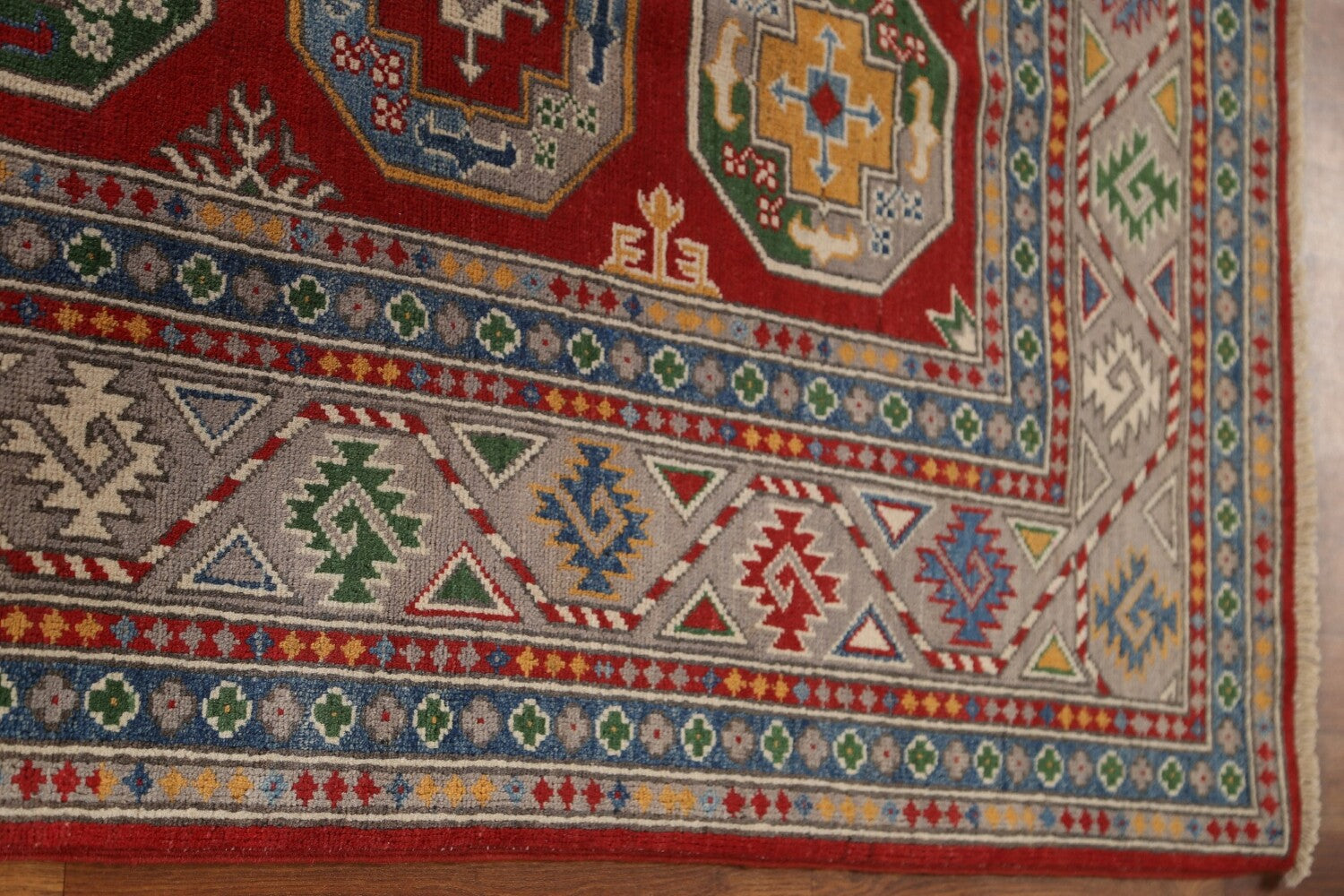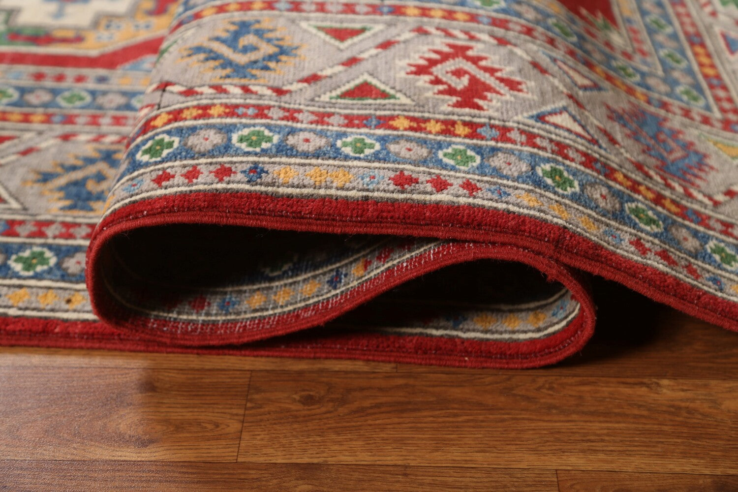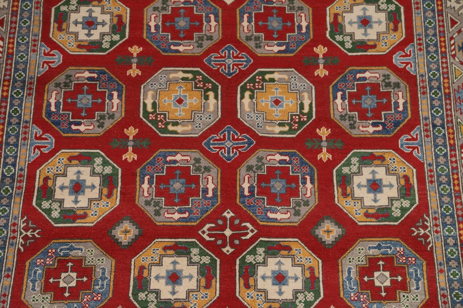 A Beautiful Genuine Pakistan Kazak rug is Hand Knotted by skillful weavers in Pakistan with 100% Wool Material. This rug is in New, First Quality condition. dimensions are 9' 9'' X 6' 8'' in foot and 297 X 203 in centimeter. the primary color is Red.