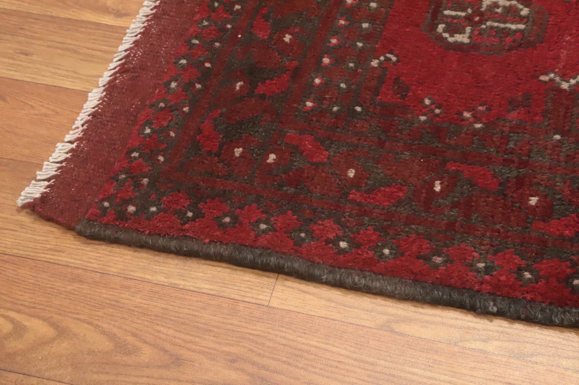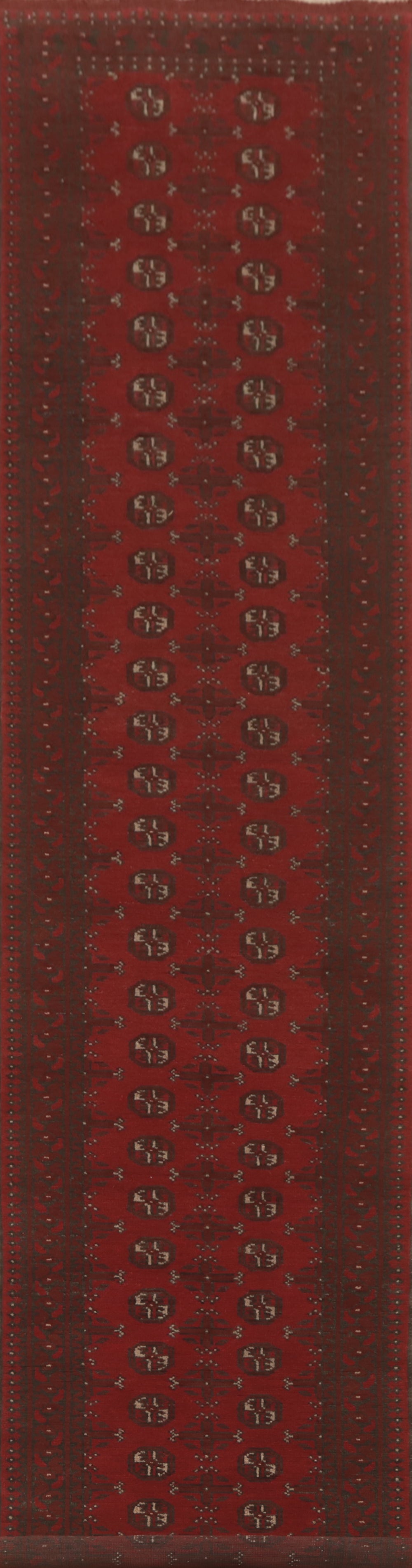 Elephant Foot Red Balouch Afghan Runner Rug 3x16