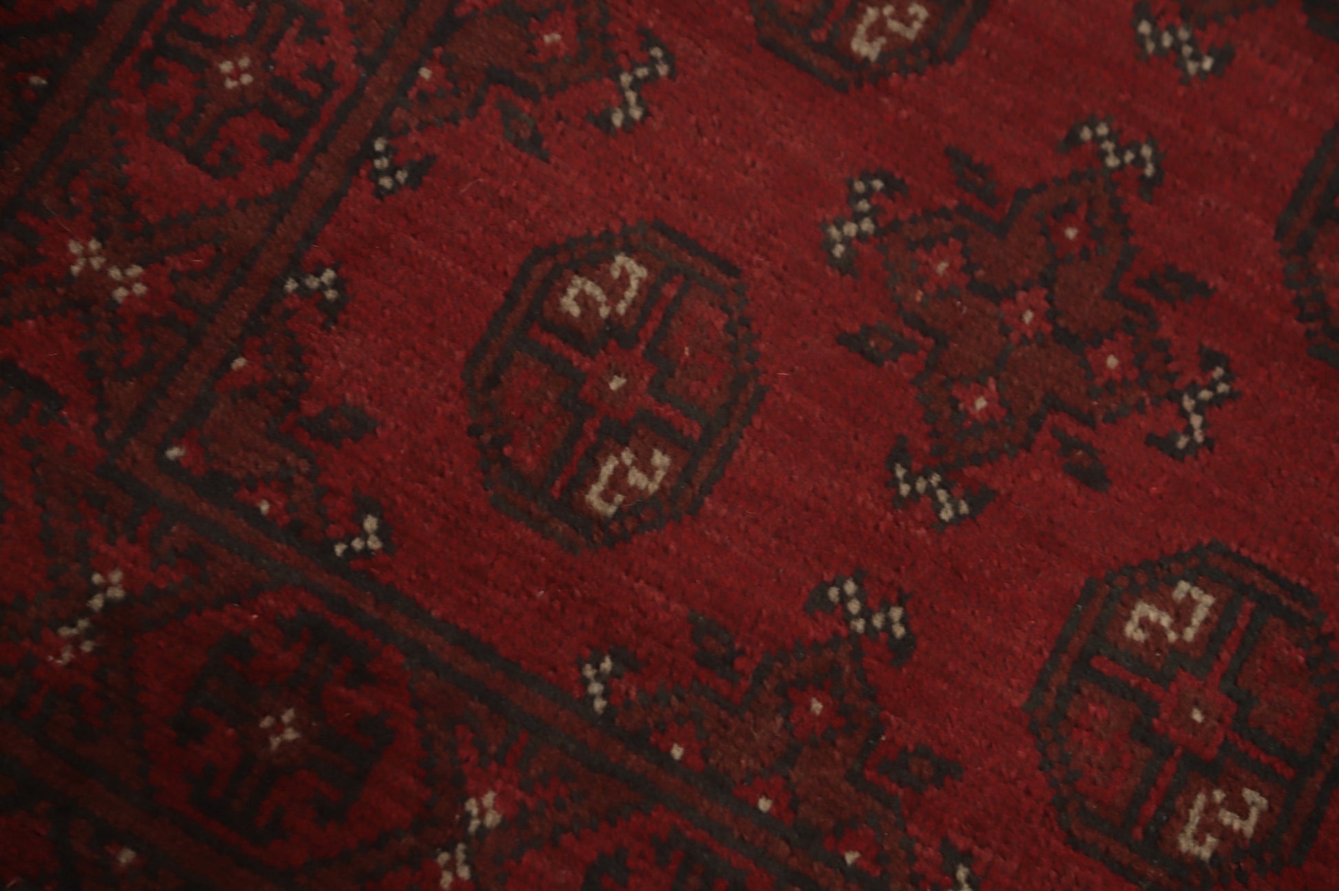 A Beautiful Genuine Afghanistan Balouch rug is Hand Knotted by skillful weavers in Afghanistan with 100% Wool Material. This rug is in New, First Quality condition. dimensions are 19' 2'' X 2' 8'' in foot and 584 X 81 in centimeter. the primary color is Red.