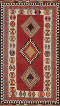 A Beautiful Genuine Persia ( Persia ) Kilim (Qashqai) rug is Hand Woven by skillful weavers in Persia ( Persia ) with 100% Wool Material. This rug is in Very Good (Abrash) condition. dimensions are 8' 1'' X 4' 5'' in foot and 246 X 135 in centimeter. the primary color is Red.