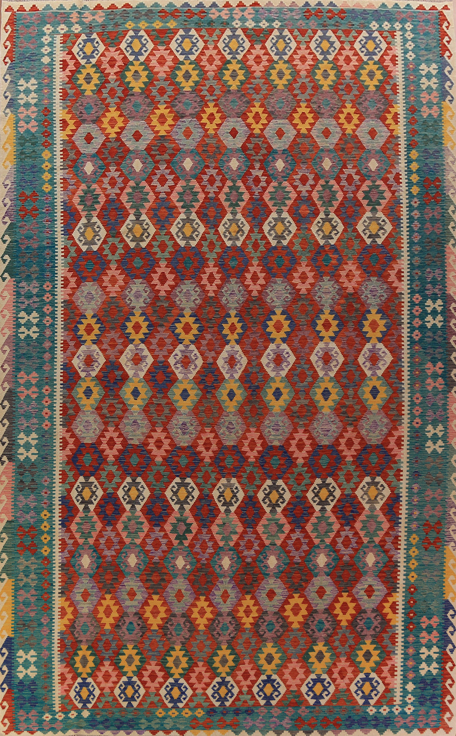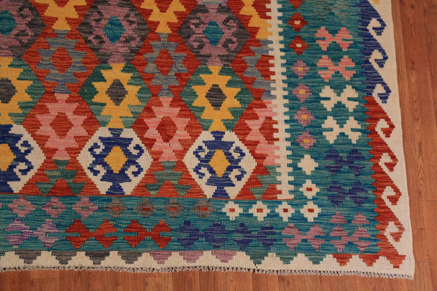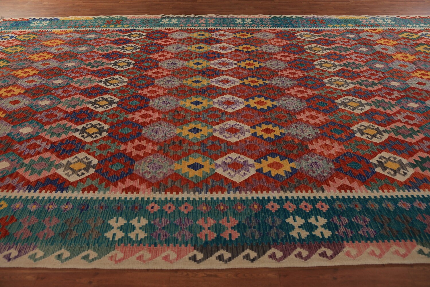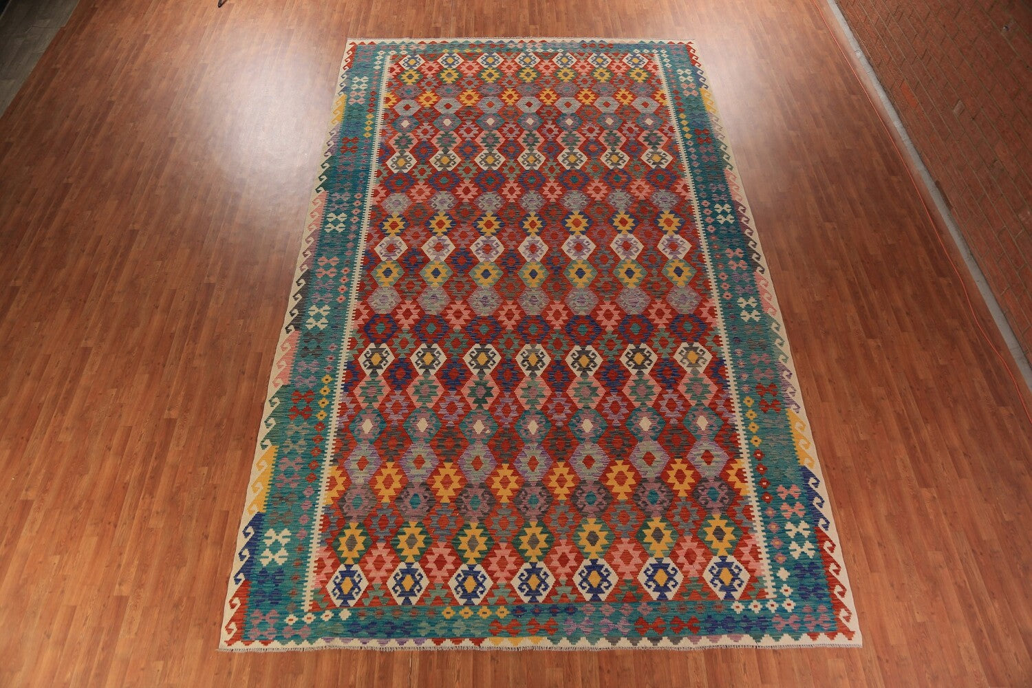 Flat Weave Wool Geometric Kilim Oriental Large Rug 10x17