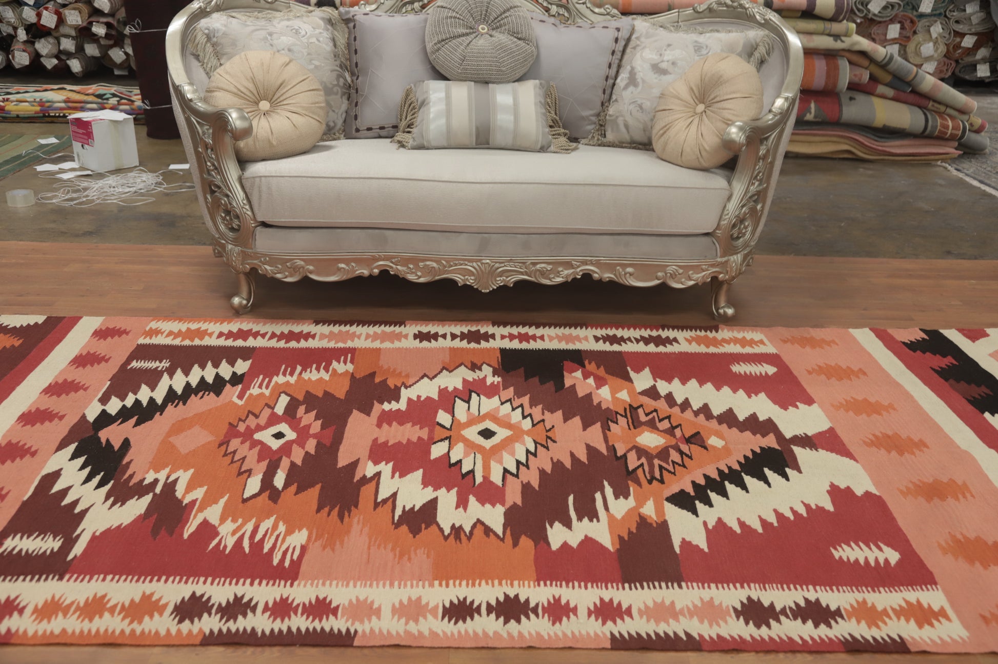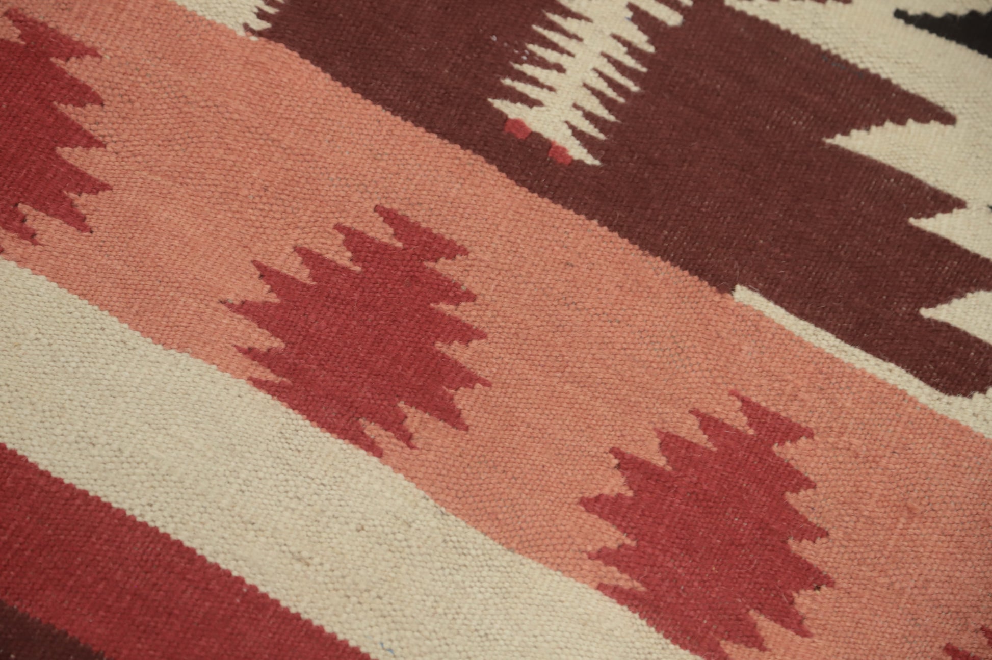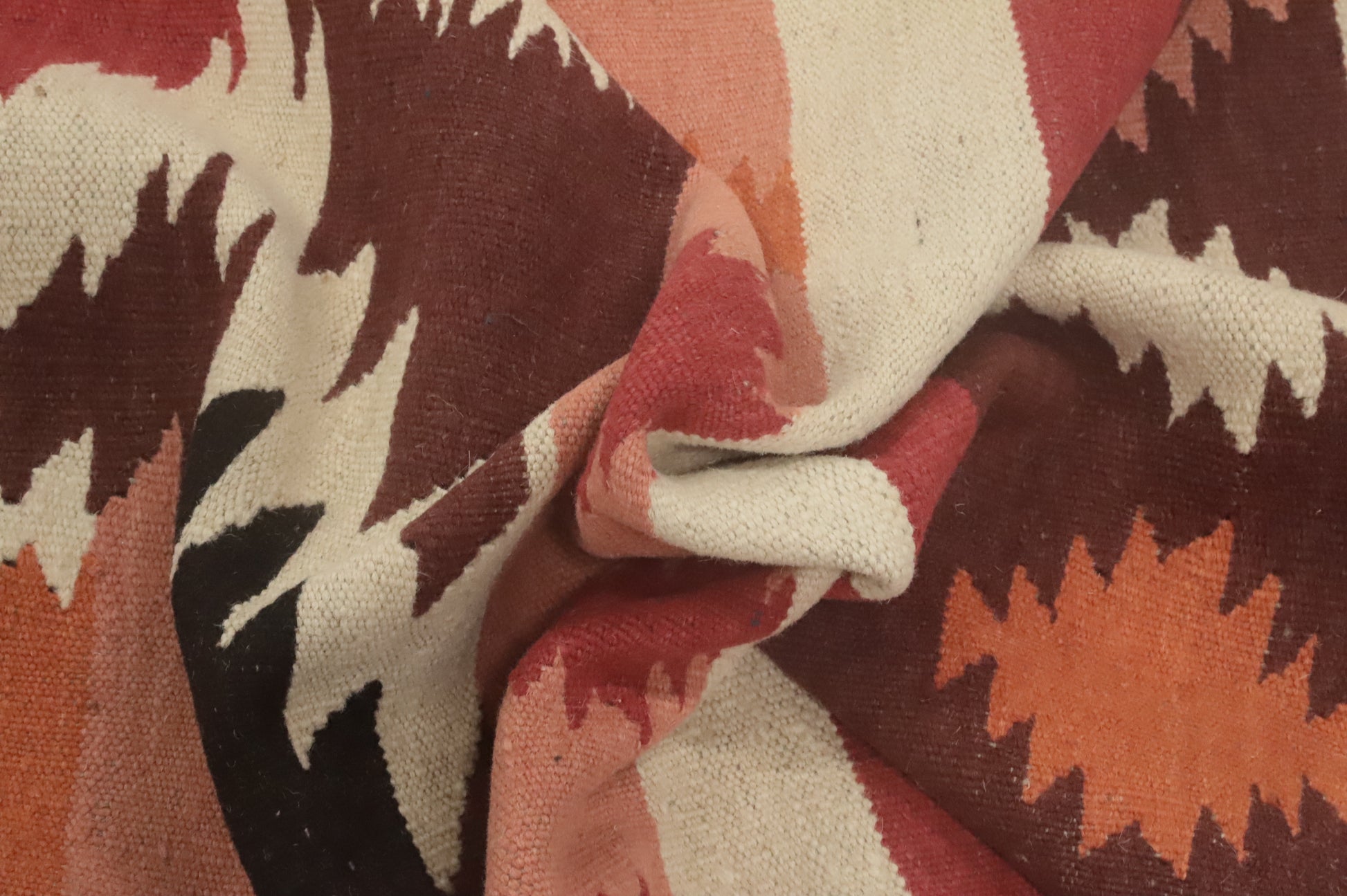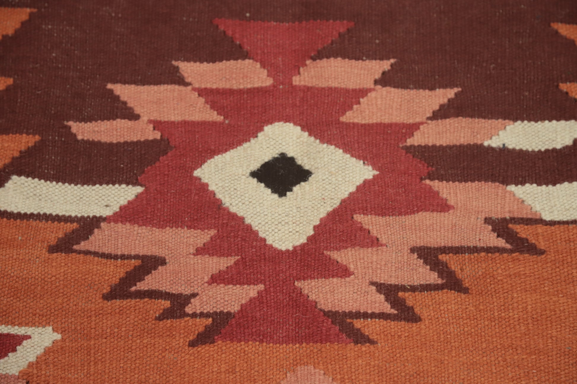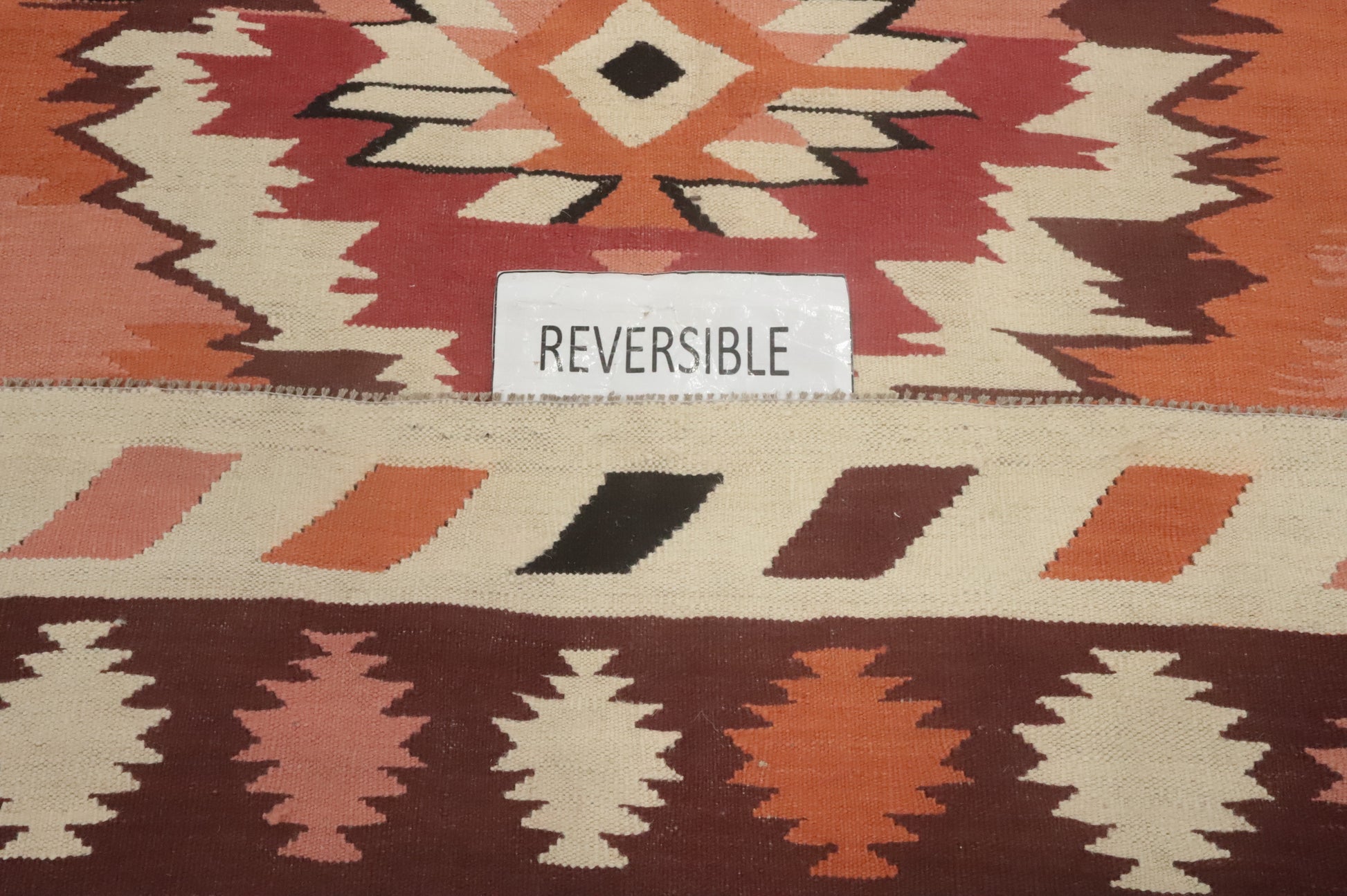 A Beautiful Genuine Pakistan Kilim rug is Hand Woven by skillful weavers in Pakistan with 100% Wool Material. This rug is in New, First Quality condition. dimensions are 11' 7'' X 5' 0'' in foot and  353 X 152 in centimeter. the primary color is Oranges & Rust.
