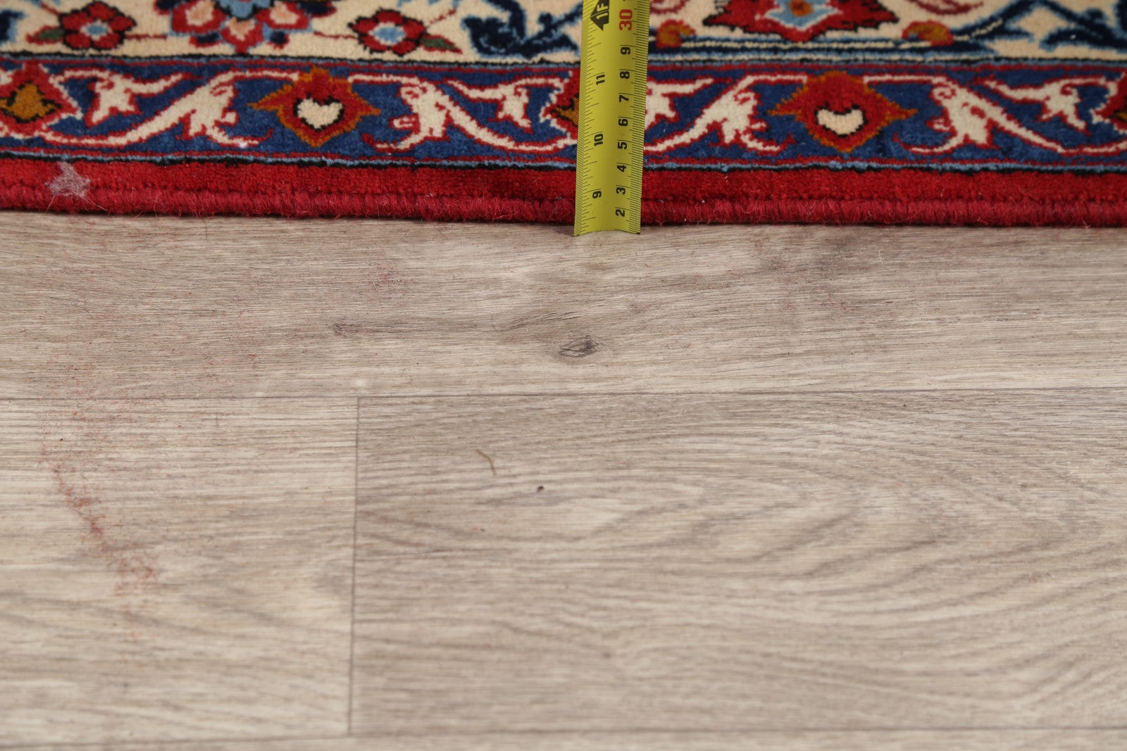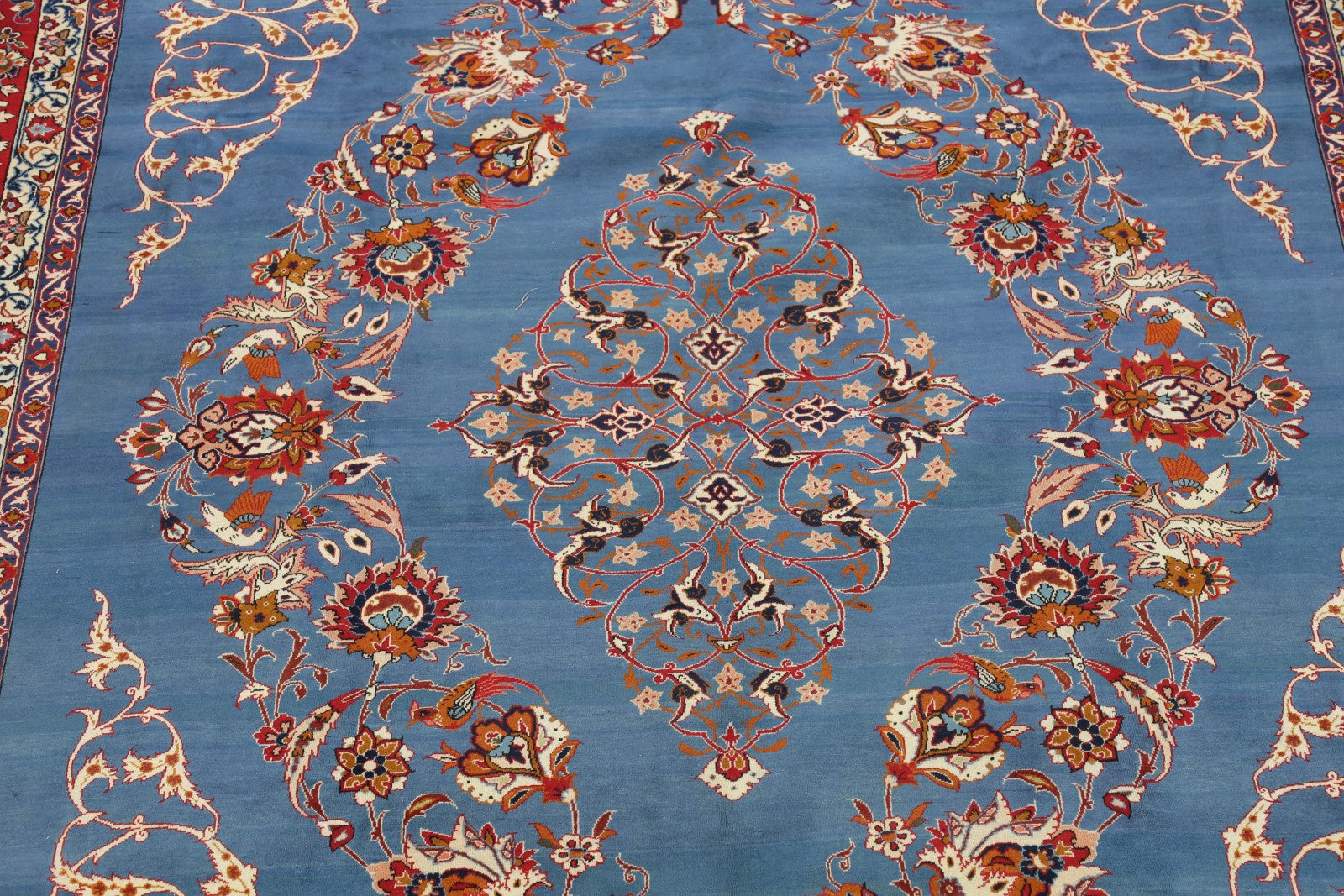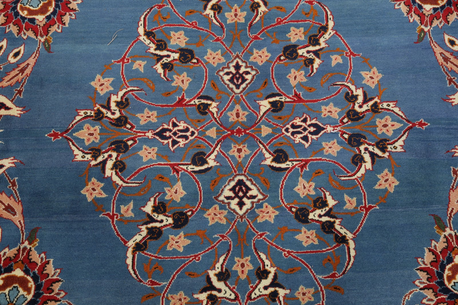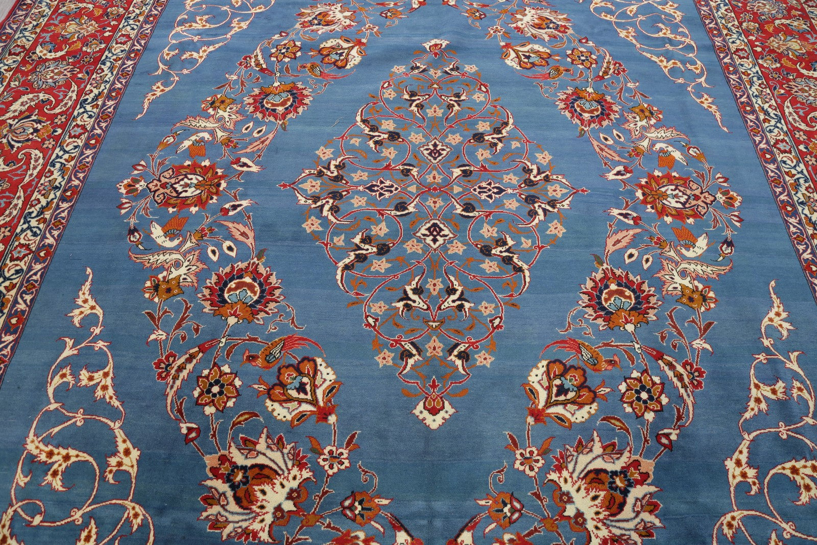 A Beautiful Genuine Persia ( Persia ) Kashan rug is Hand Knotted by skillful weavers in Persia ( Persia ) with 100% Wool Material. This rug is in Very Good (Abrash-100% Vegetable Dye) condition. dimensions are 13' 10'' X 10' 4'' in foot and 422 X 315 in centimeter. the primary color is Navy Blue & Blues.