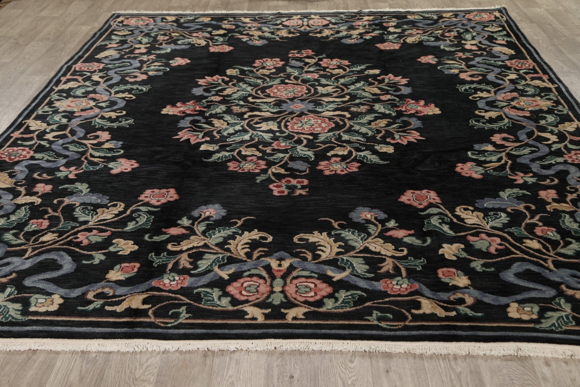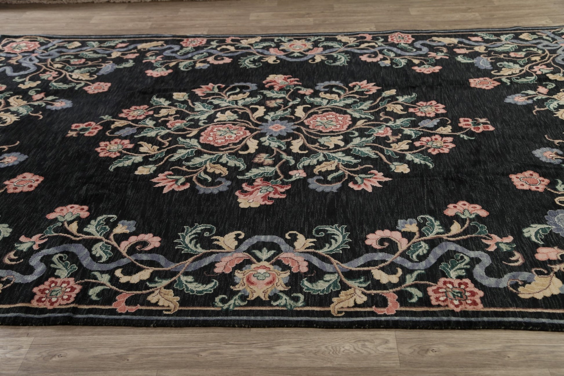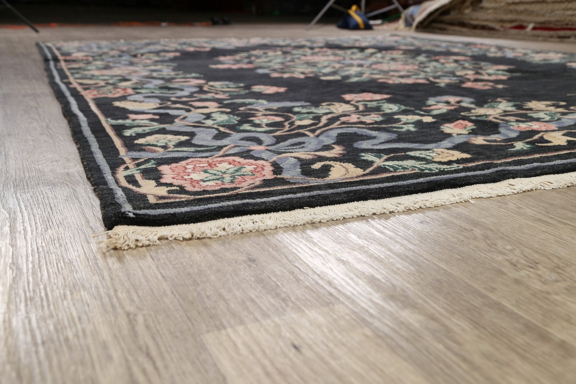 A Beautiful Genuine Pakistan Aubusson rug is Hand Knotted by skillful weavers in Pakistan with 100% Wool Material. This rug is in New, First Quality condition. dimensions are 11' 6'' X 8' 9'' in foot and 351 X 267 in centimeter. the primary color is Black.