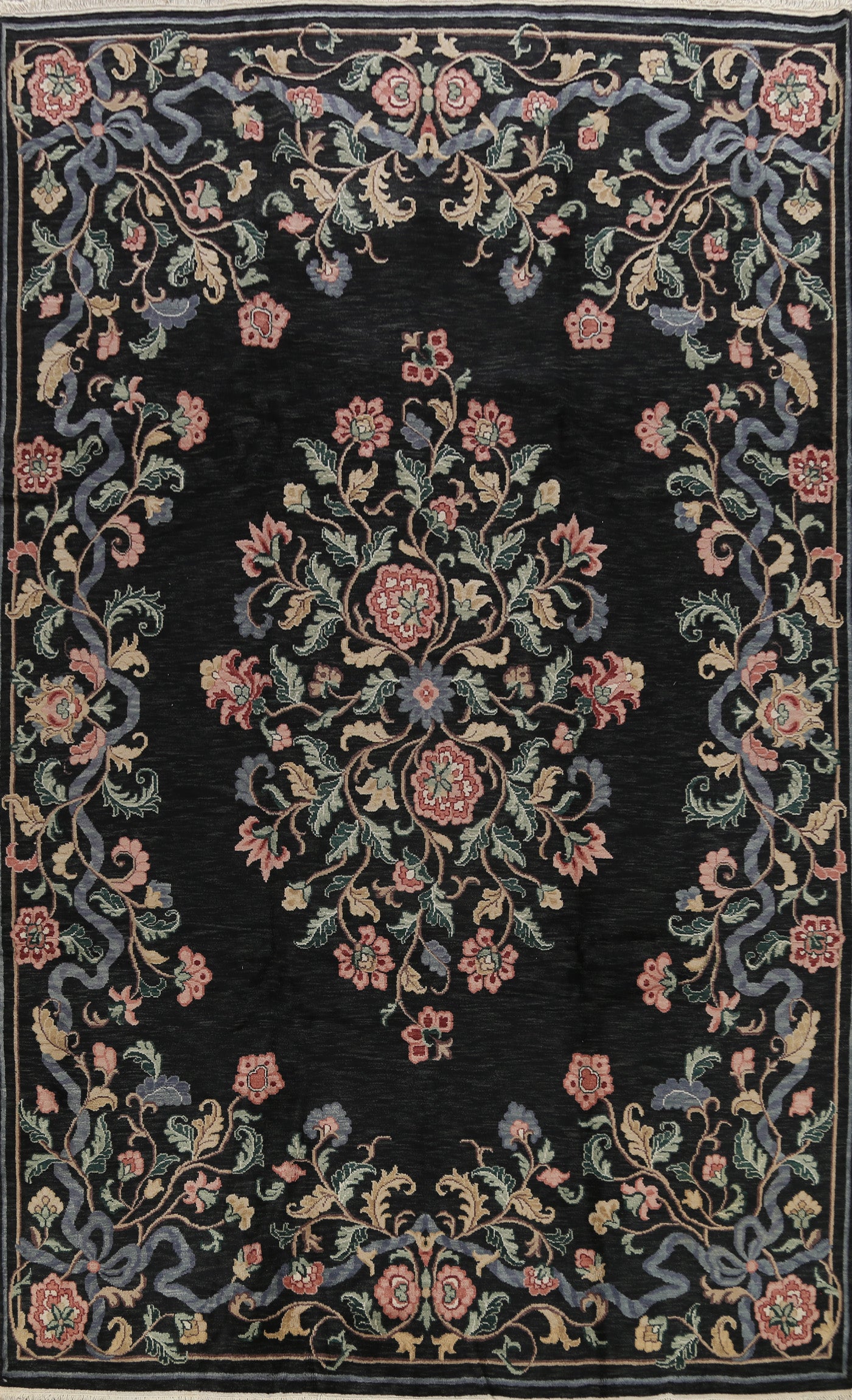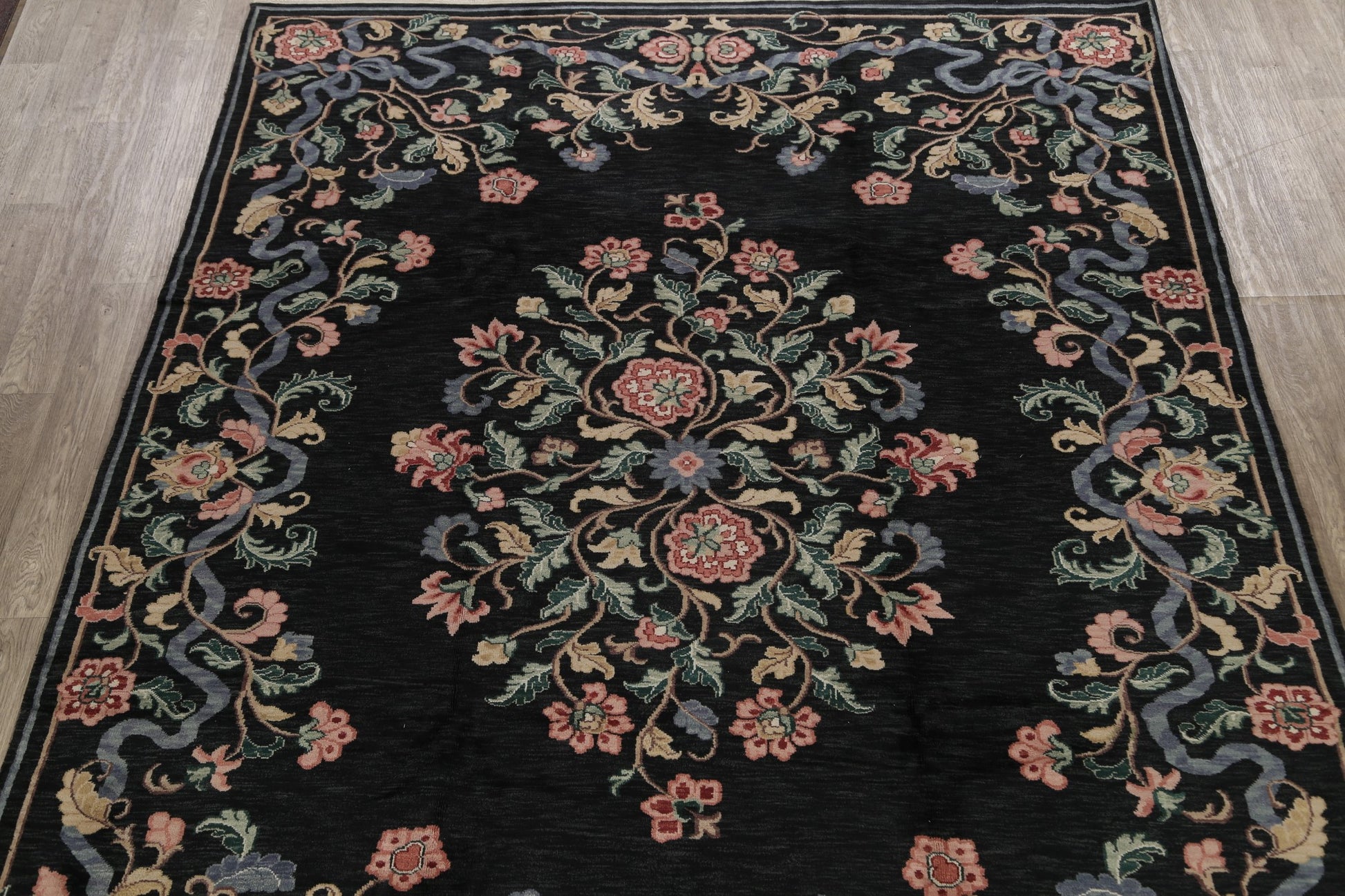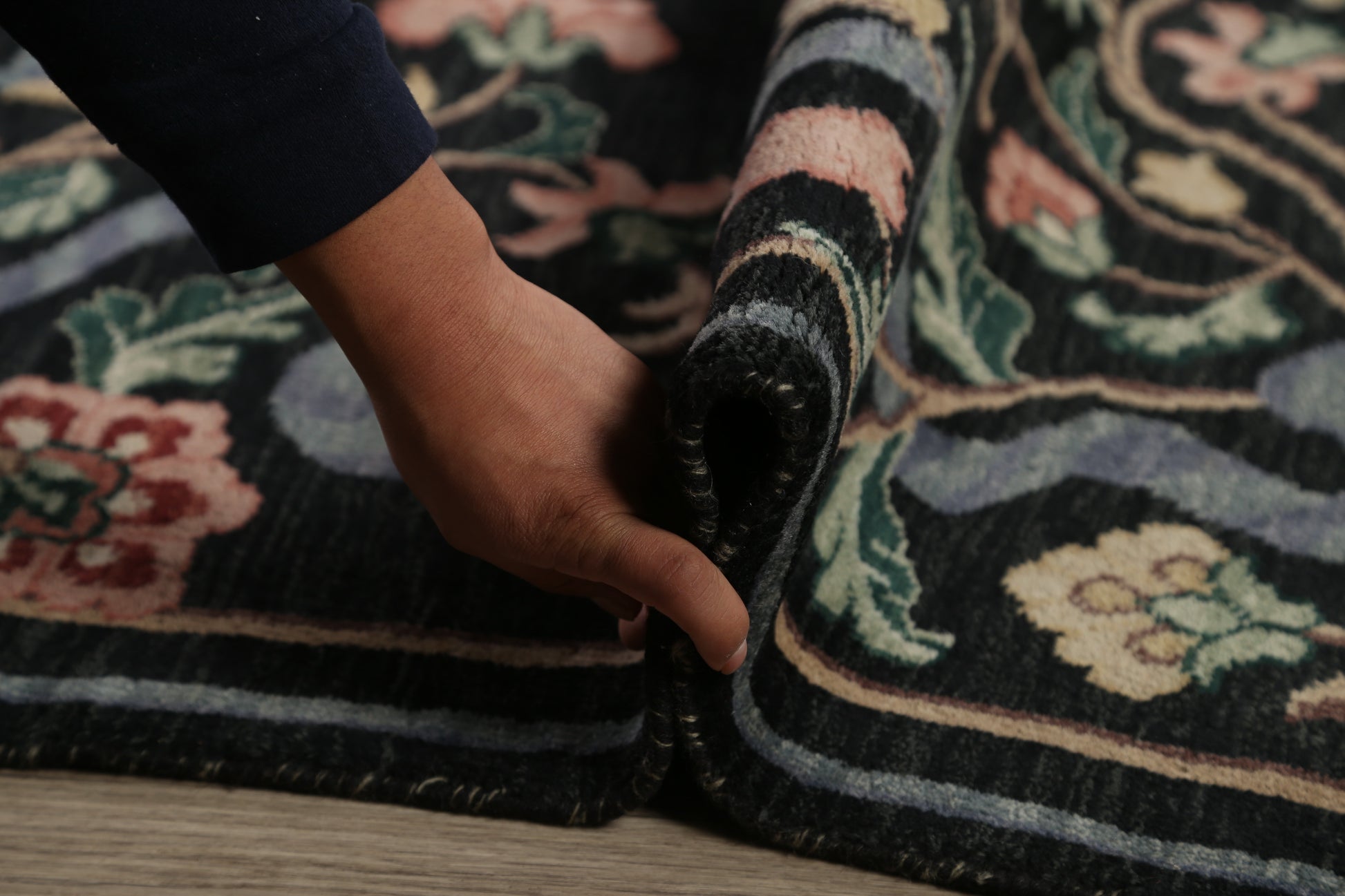 A Beautiful Genuine Pakistan Aubusson rug is Hand Knotted by skillful weavers in Pakistan with 100% Wool Material. This rug is in New, First Quality condition. dimensions are 11' 6'' X 8' 9'' in foot and 351 X 267 in centimeter. the primary color is Black.