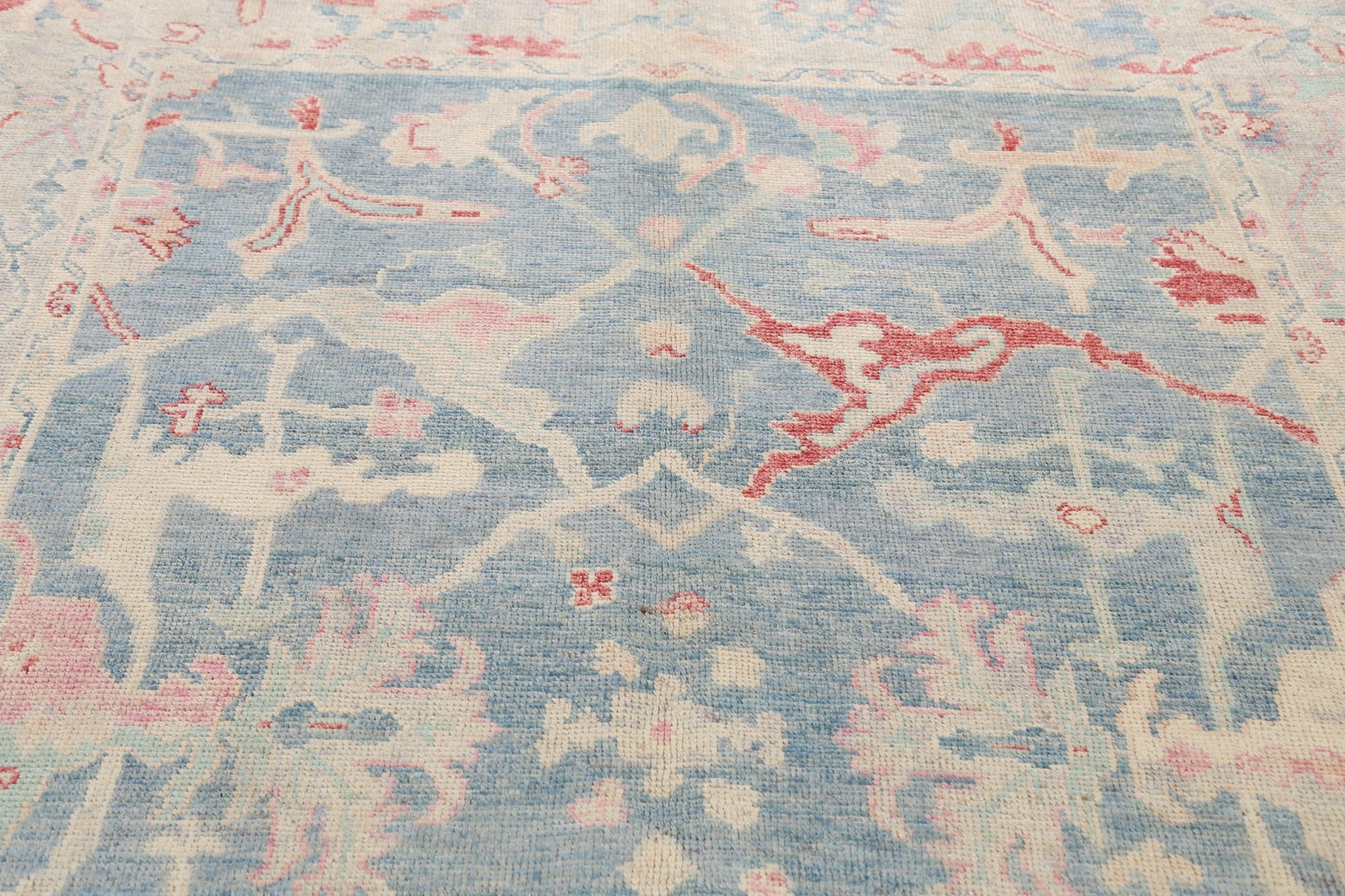A Beautiful Genuine Turkey Oushak rug is Hand Knotted by skillful weavers in Turkey with 100% Wool Material. This rug is in New, First Quality condition. dimensions are 9' 0'' X 6' 1'' in foot and 274 X 185 in centimeter. the primary color is Navy Blue & Blues.