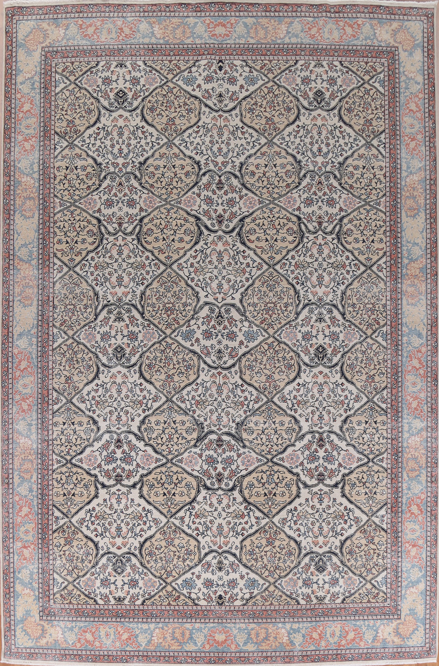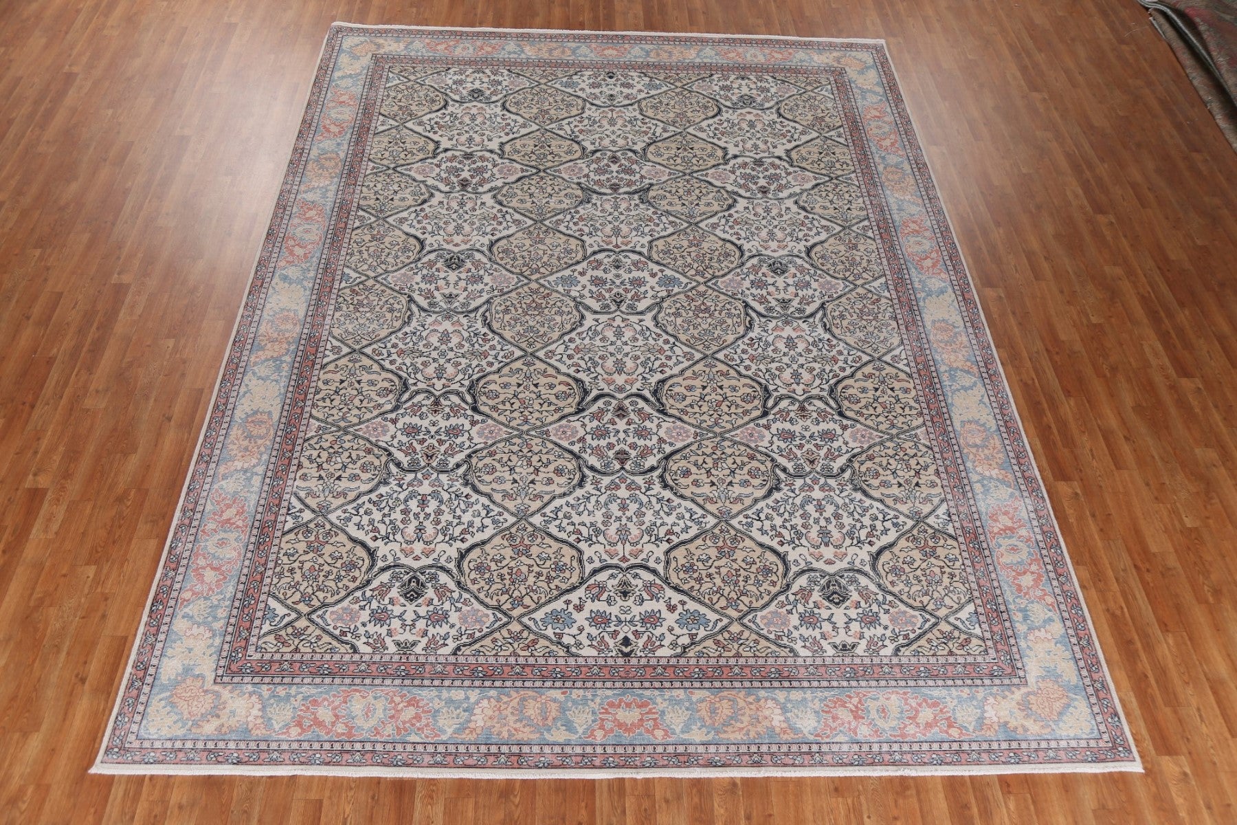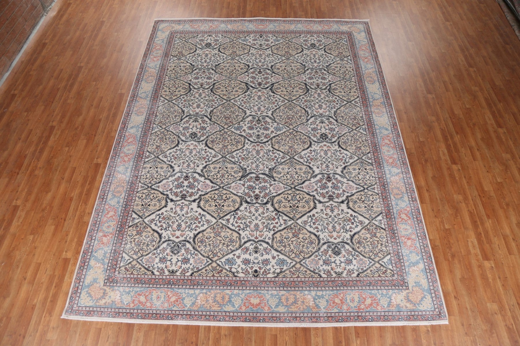 A Beautiful Genuine Turkey Bakhtiari rug is Hand Knotted by skillful weavers in Turkey with 100% Wool Material. This rug is in New, First Quality condition. dimensions are 12' 11'' X 9' 10'' in foot and 394 X 300 in centimeter. the primary color is Beige & Ivories.