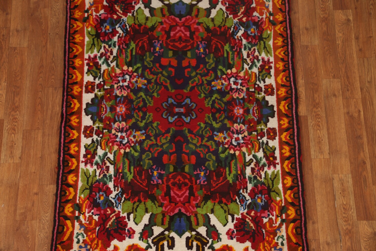 A Beautiful Genuine Persia ( Persia ) Bakhtiari rug is Hand Knotted by skillful weavers in Persia ( Persia ) with 100% Wool Material. This rug is in New, First Quality condition. dimensions are 4' 11'' X 3' 5'' in foot and 150 X 104 in centimeter. the primary color is Beige & Ivories.