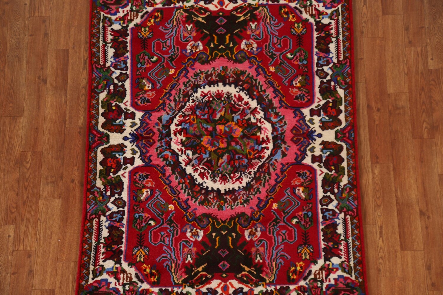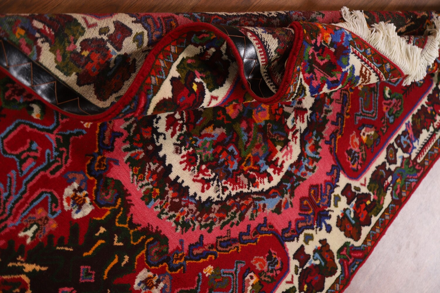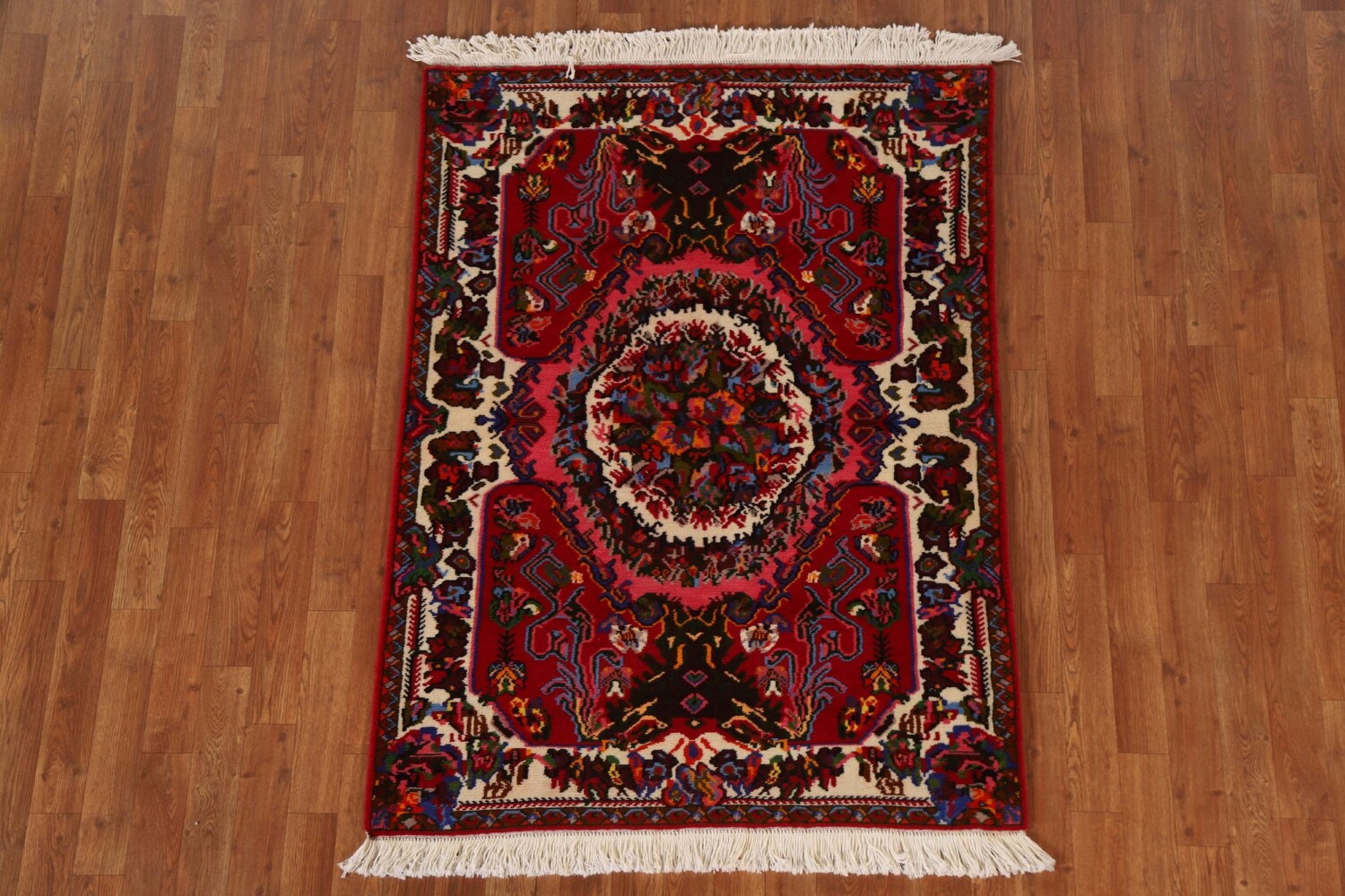 A Beautiful Genuine Persia ( Persia ) Bakhtiari rug is Hand Knotted by skillful weavers in Persia ( Persia ) with 100% Wool Material. This rug is in New, First Quality condition. dimensions are 4' 10'' X 3' 7'' in foot and 147 X 109 in centimeter. the primary color is Red.