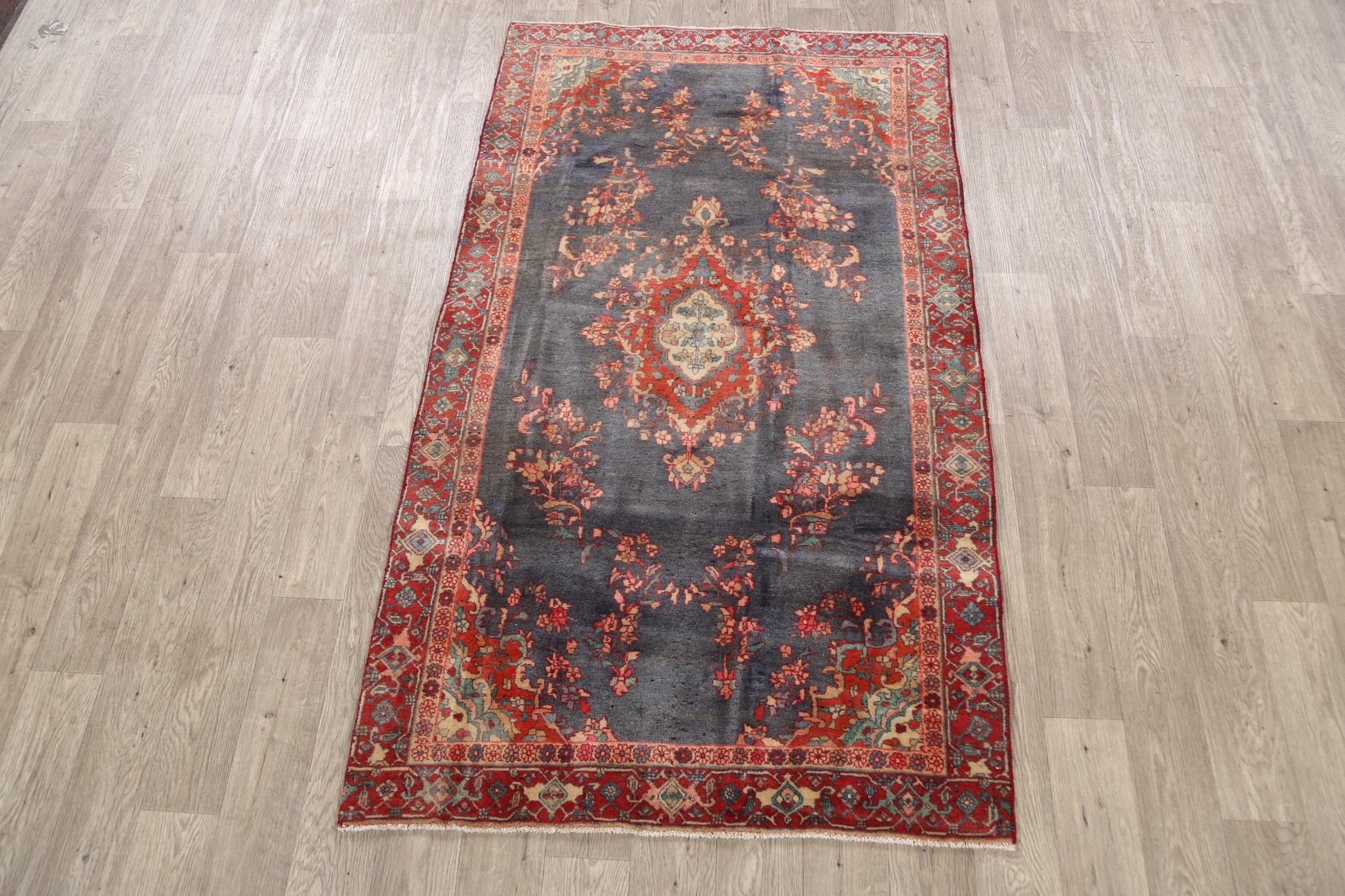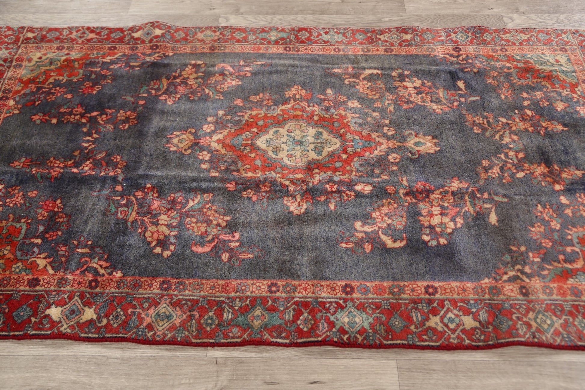 A Beautiful Genuine Persia ( Persia ) Bidjar rug is Hand Knotted by skillful weavers in Persia ( Persia ) with 100% Wool Material. This rug is in Very Good (Faded Color) condition. dimensions are 6' 7'' X 3' 10'' in foot and 201 X 117 in centimeter. the primary color is Navy Blue & Blues.