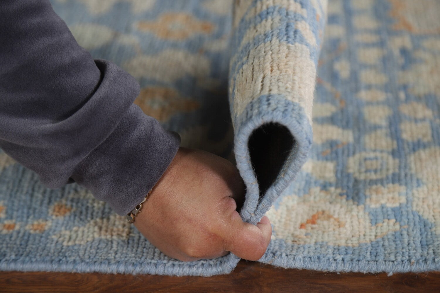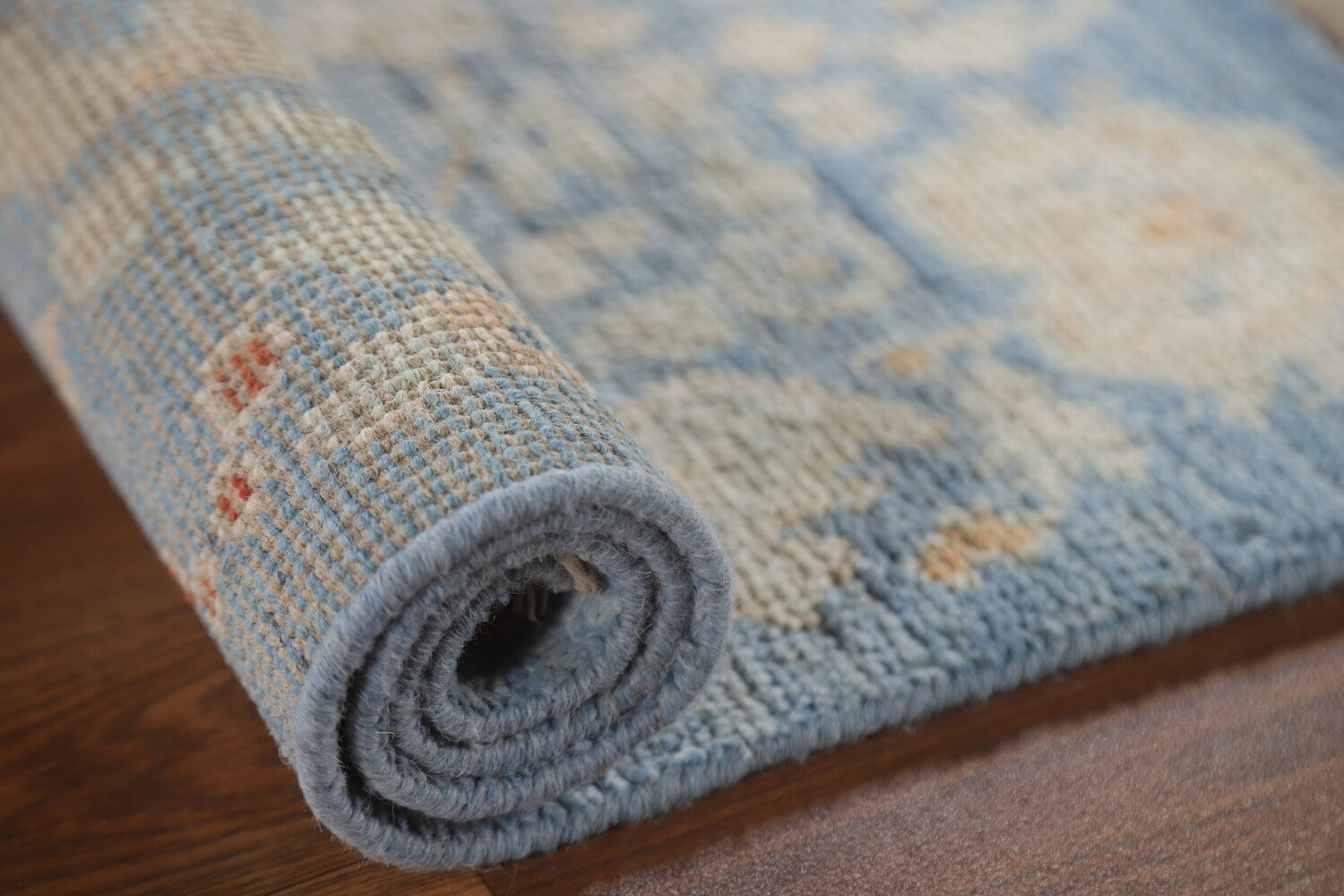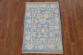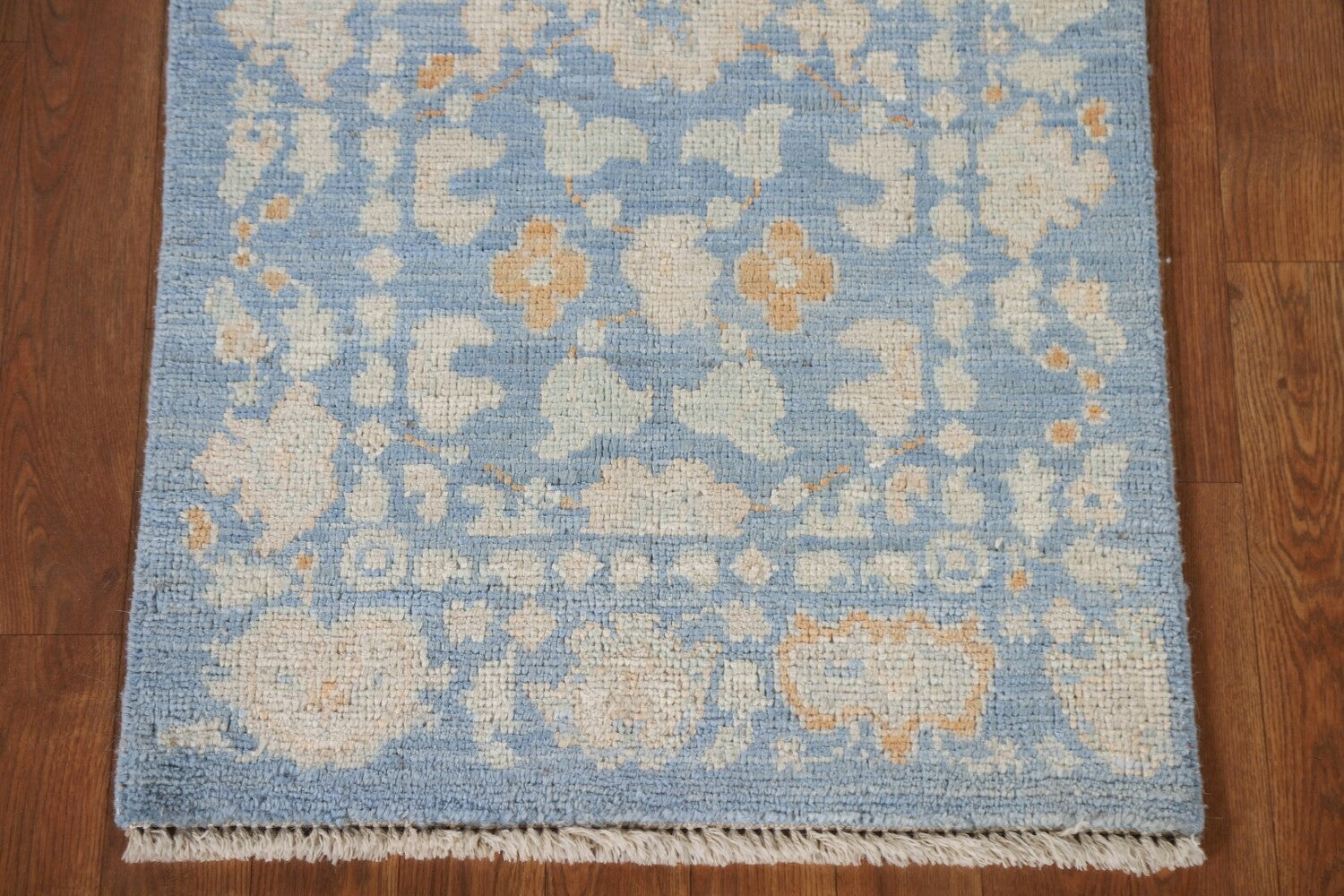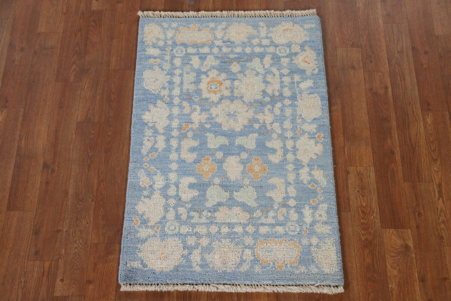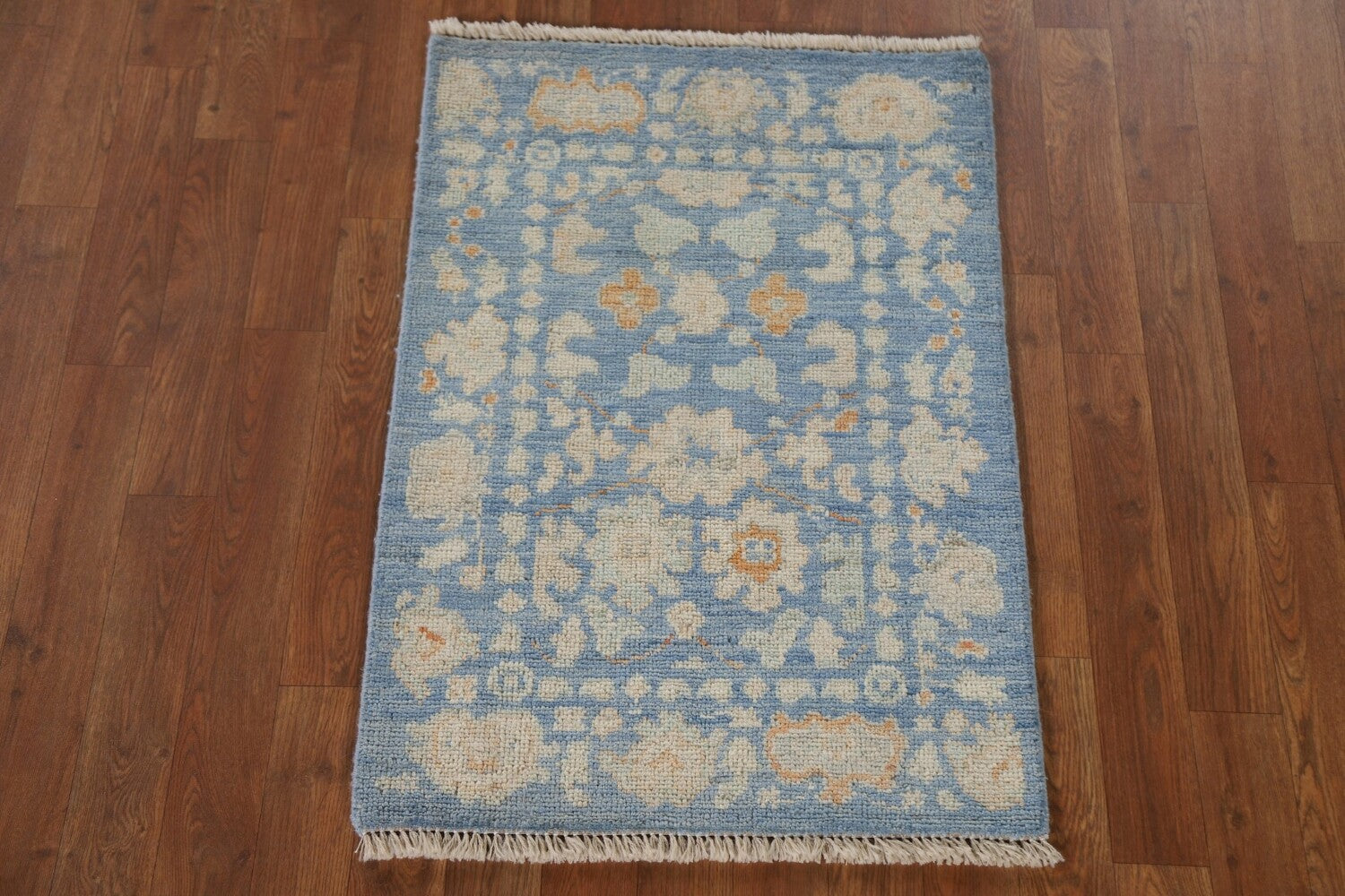 Floral Blue Oushak Vegetable Dye Accent Rug 2x3