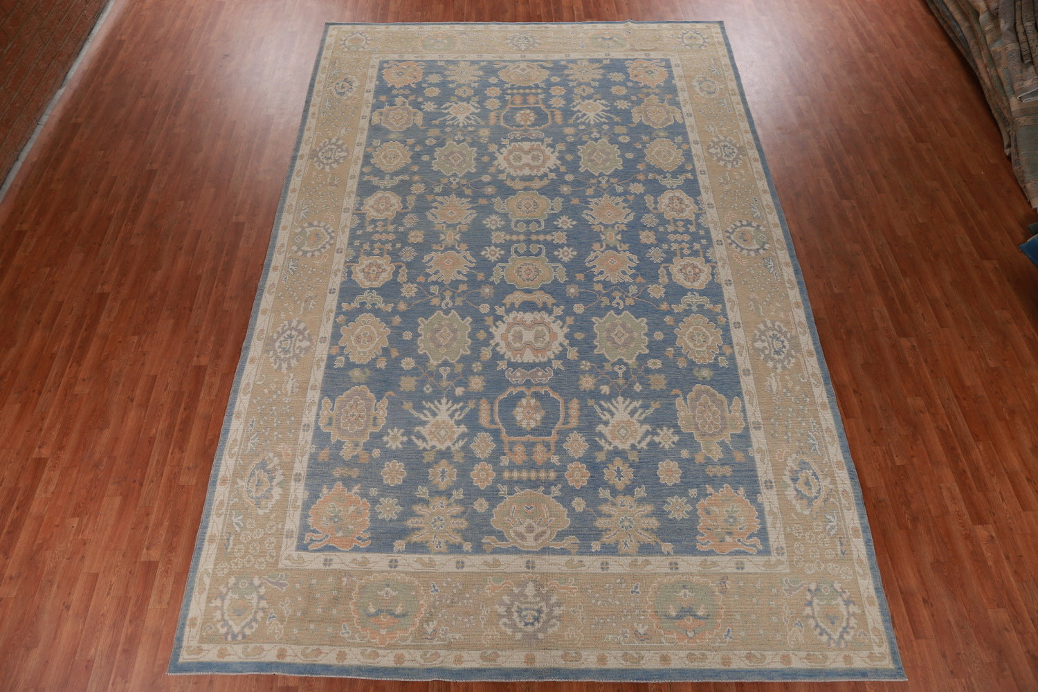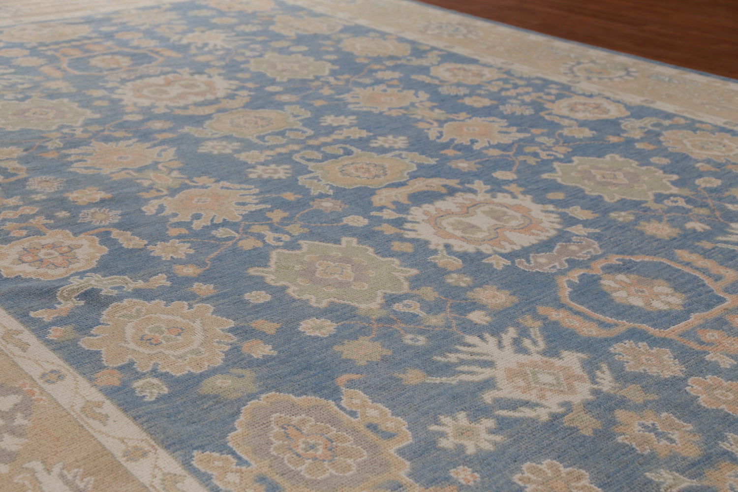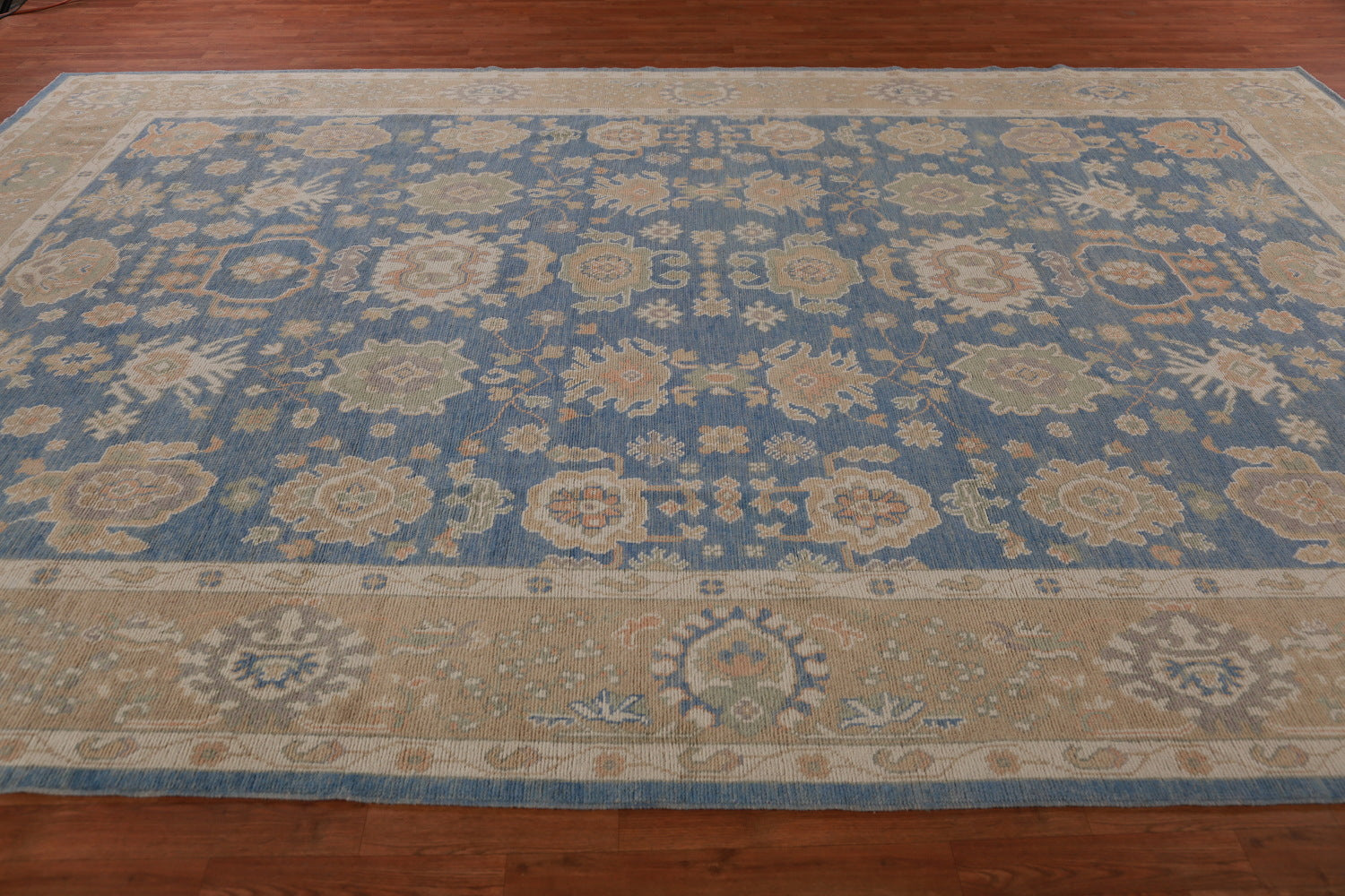 Floral Blue Oushak Vegetable Dye Large Rug 10x15