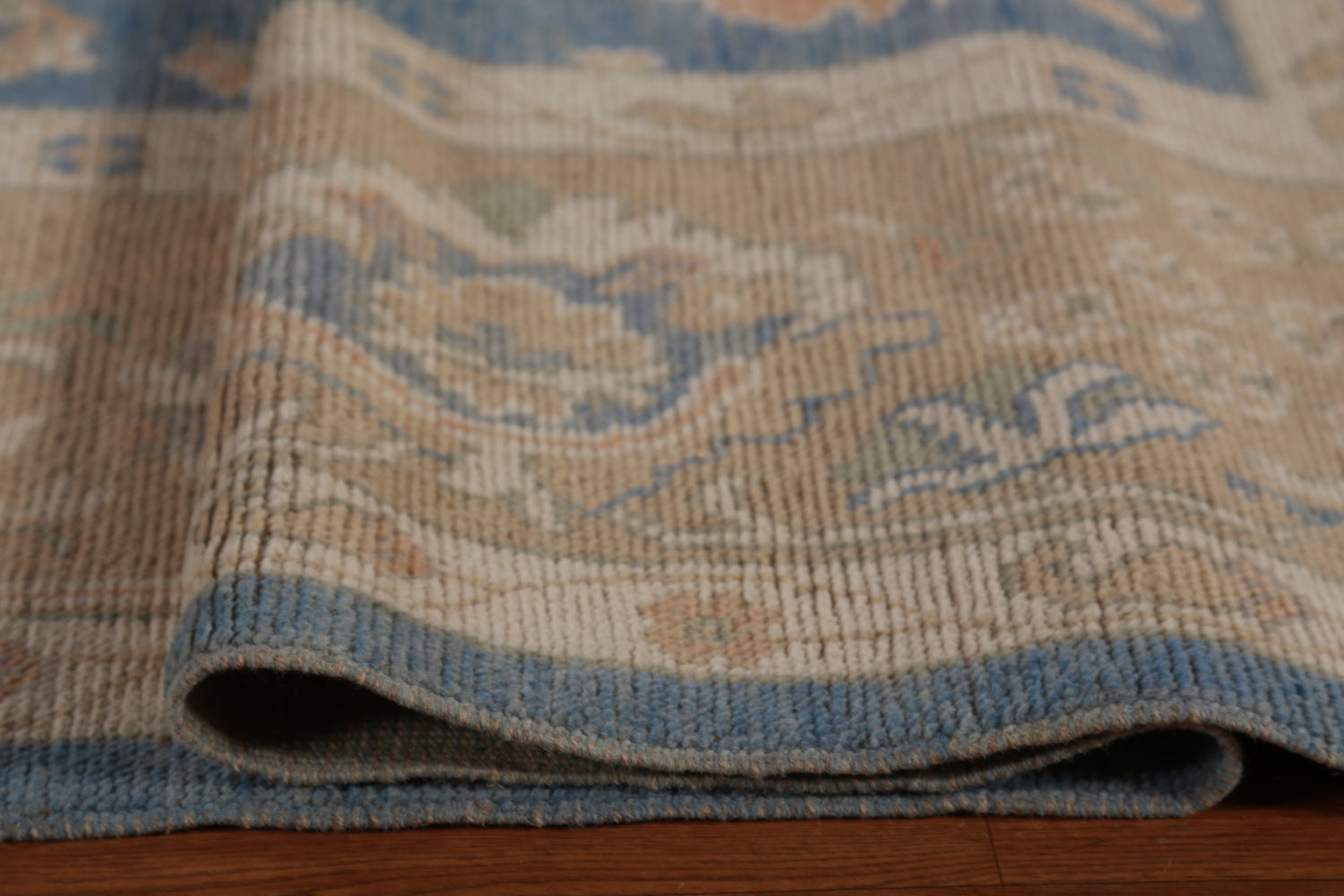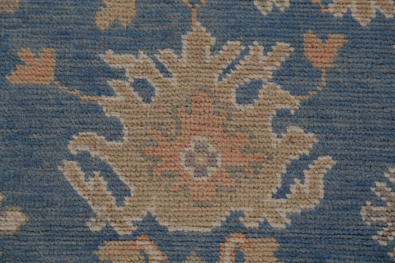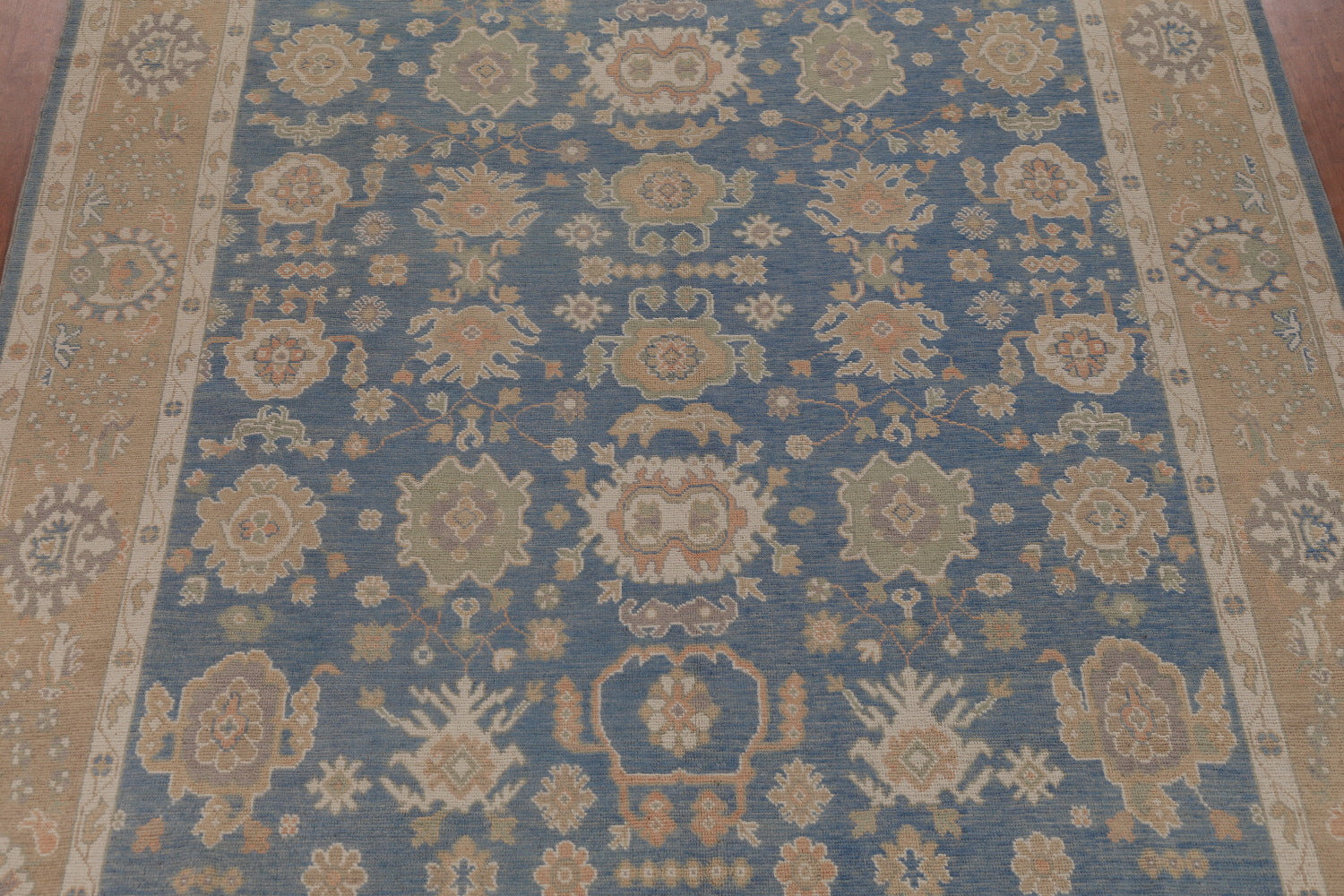 Floral Blue Oushak Vegetable Dye Large Rug 10x15