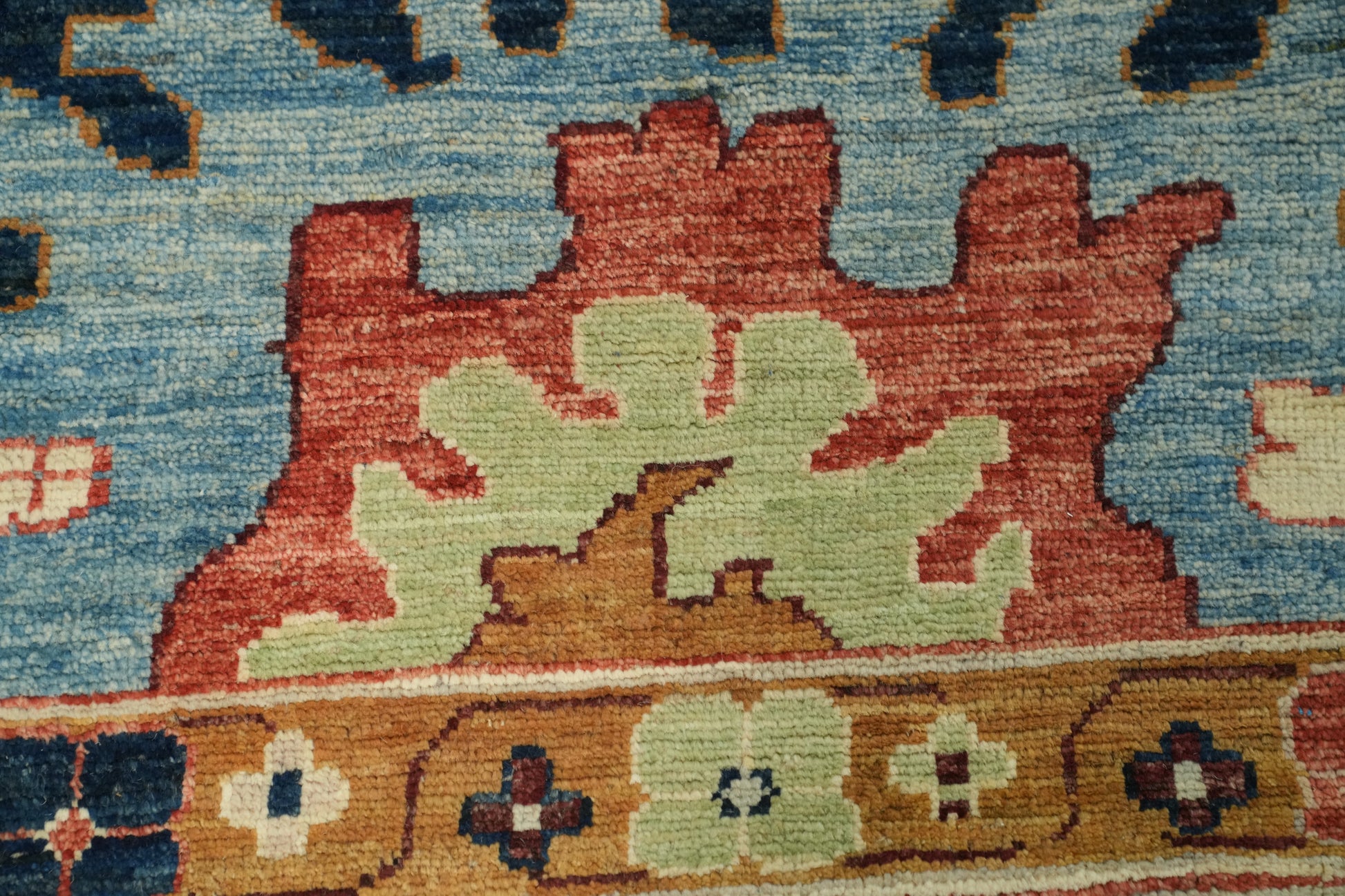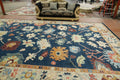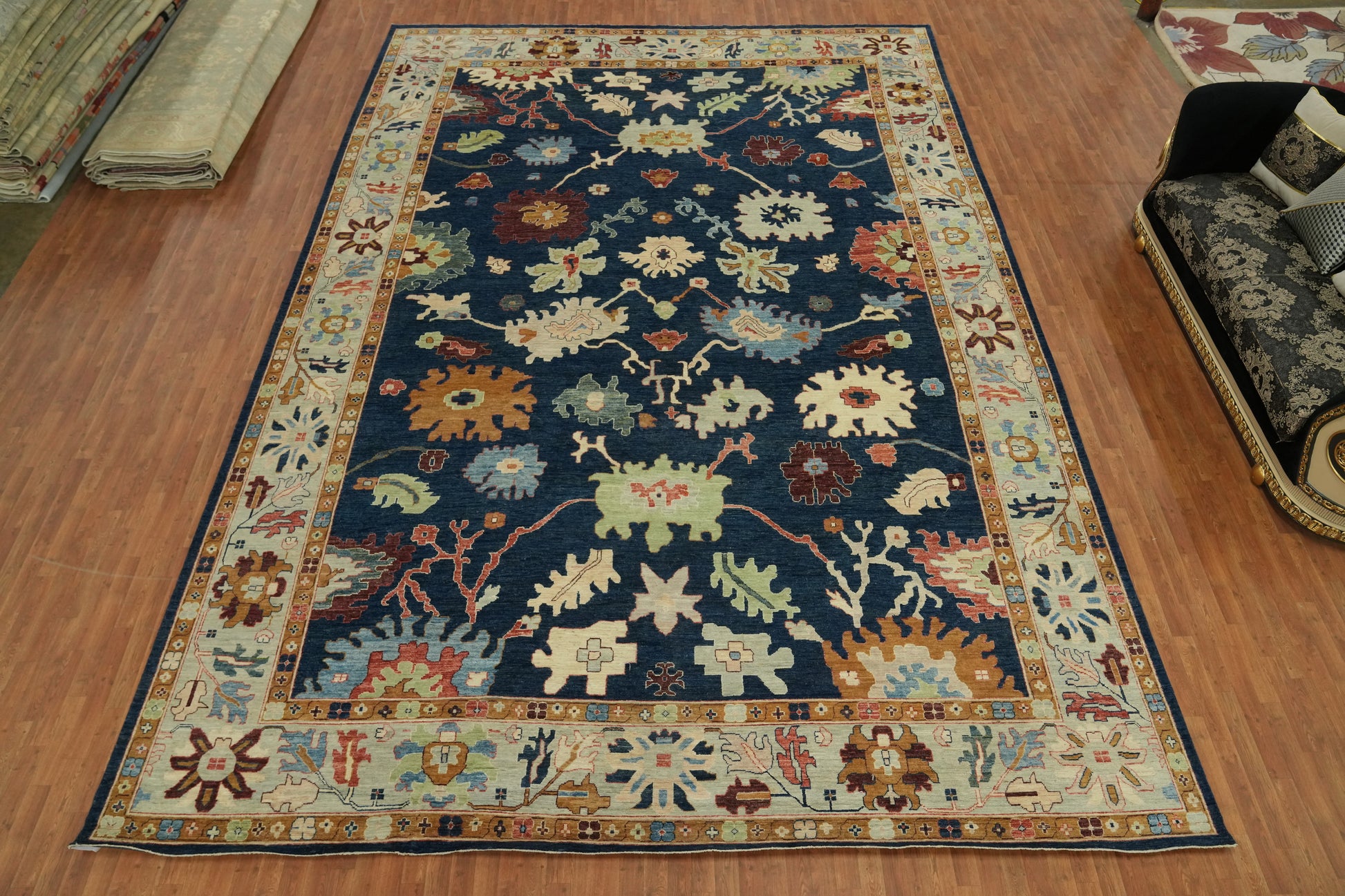 Floral Blue Oushak Vegetable Dye Large Rug 13x20
