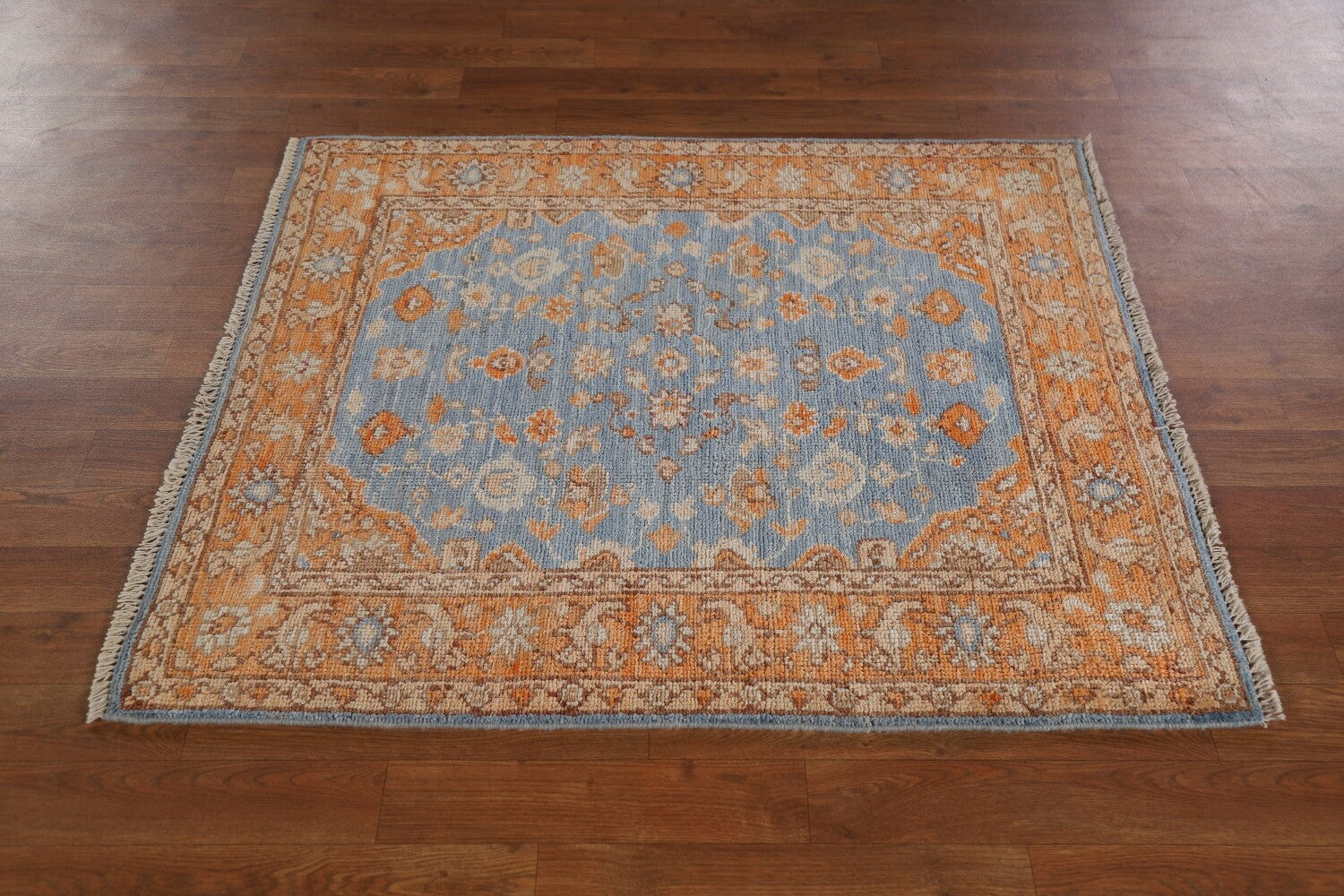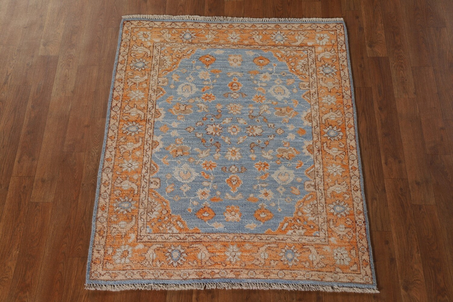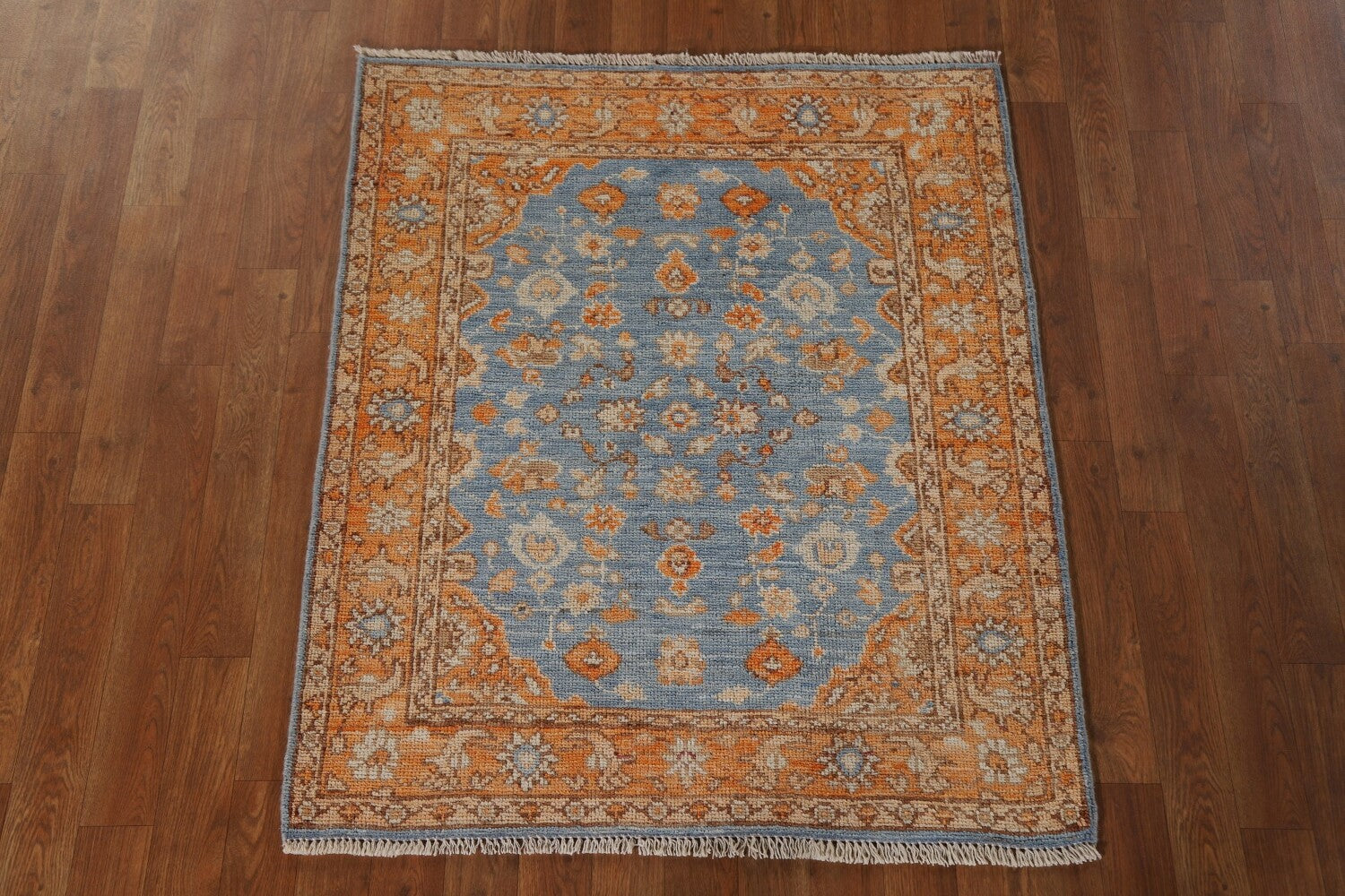 Floral Blue Oushak Vegetable Dye Wool Rug 3x4