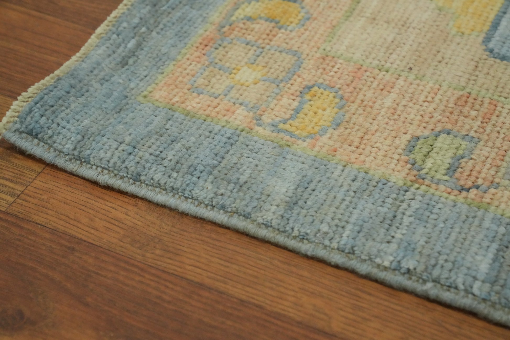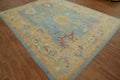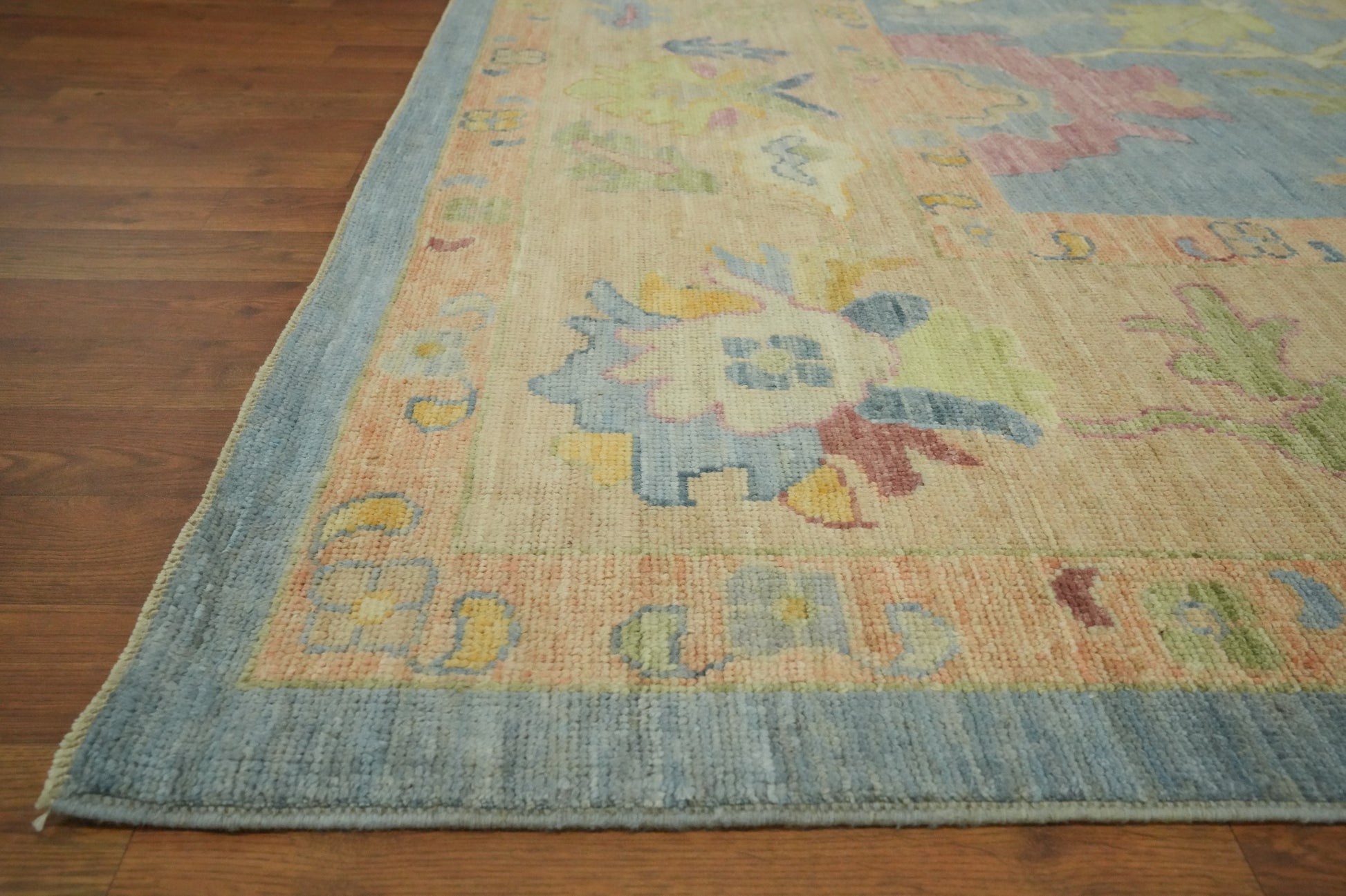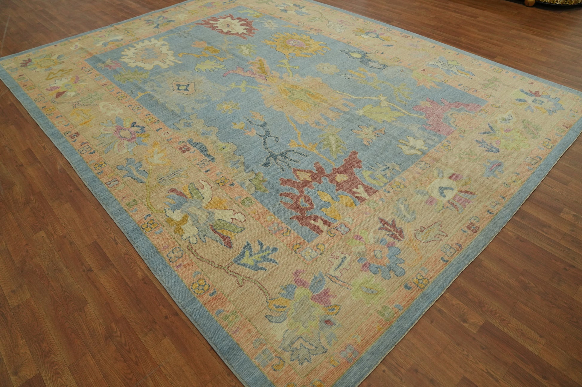 Floral Blue Wool Oushak Vegetable Dye Area Rug 9x12