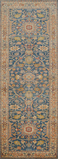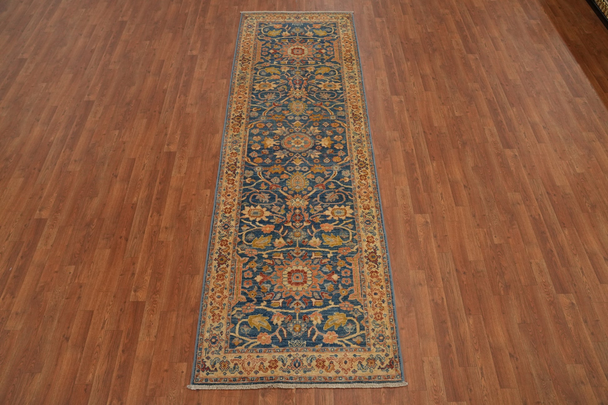Floral Blue Ziegler Vegetable Dye Runner Rug 3x10