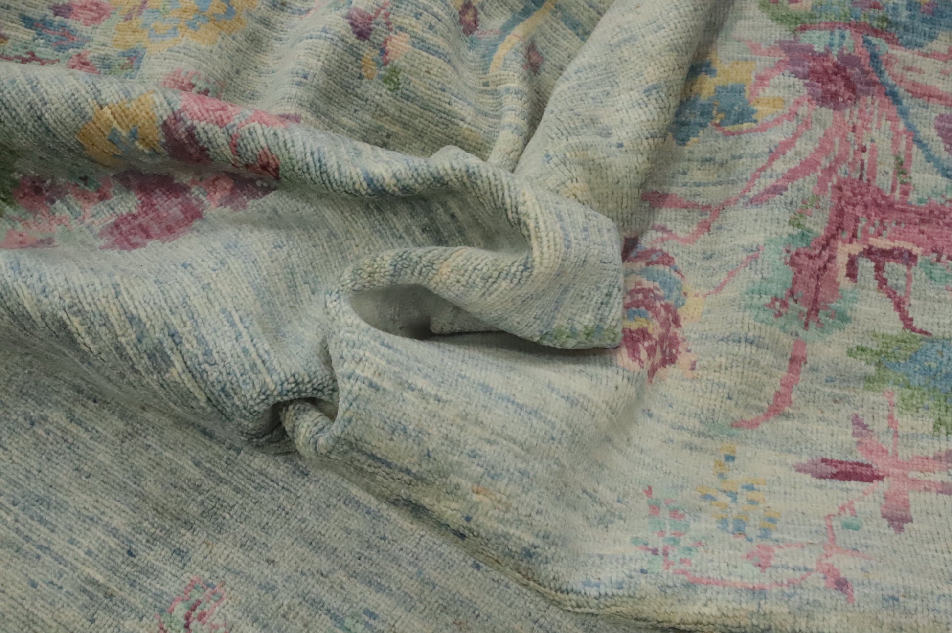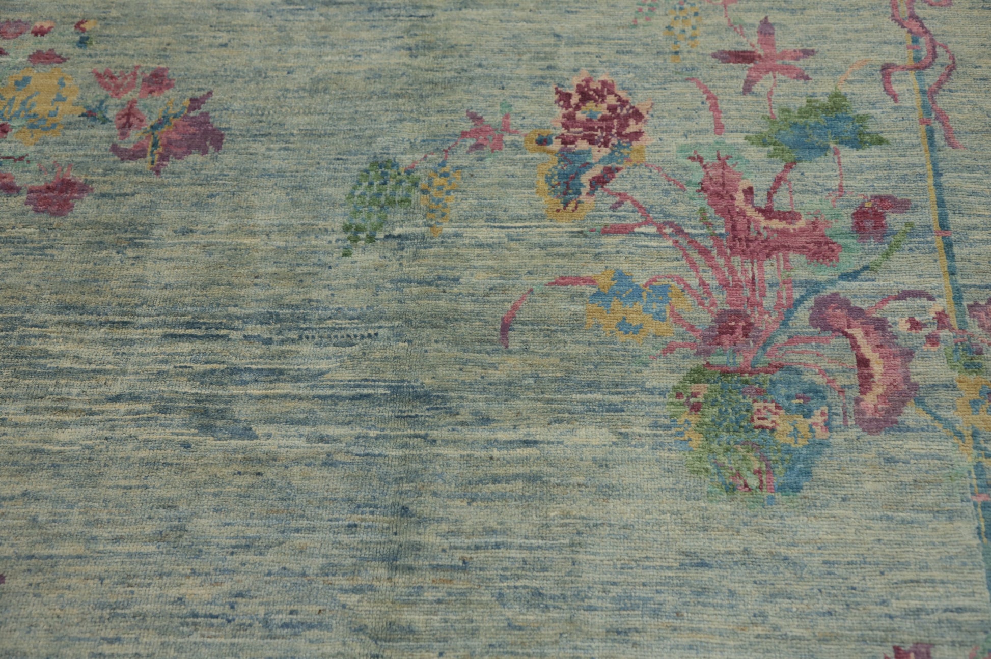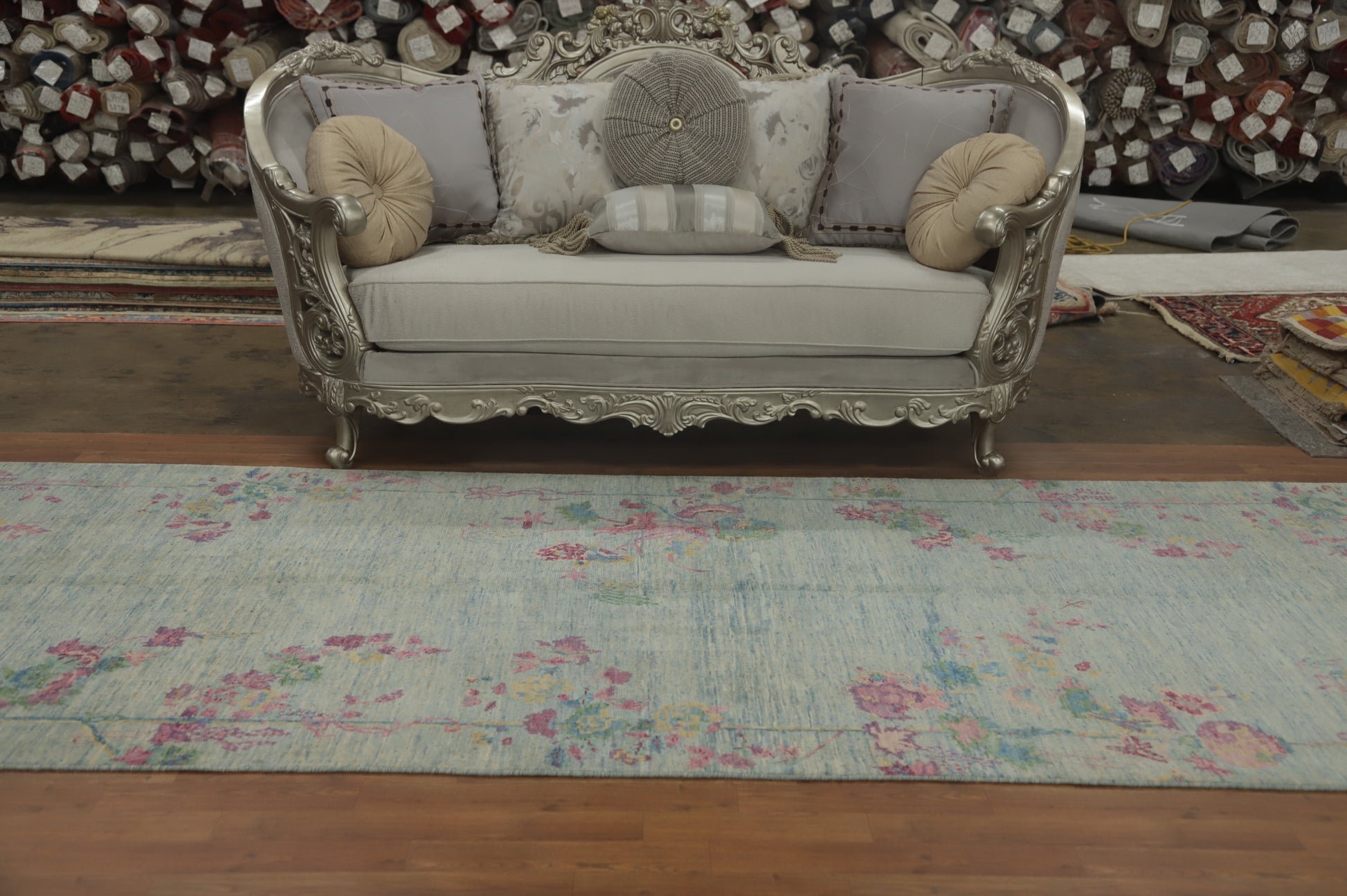Floral Blue Ziegler Vegetable Dye Runner Rug 5x15