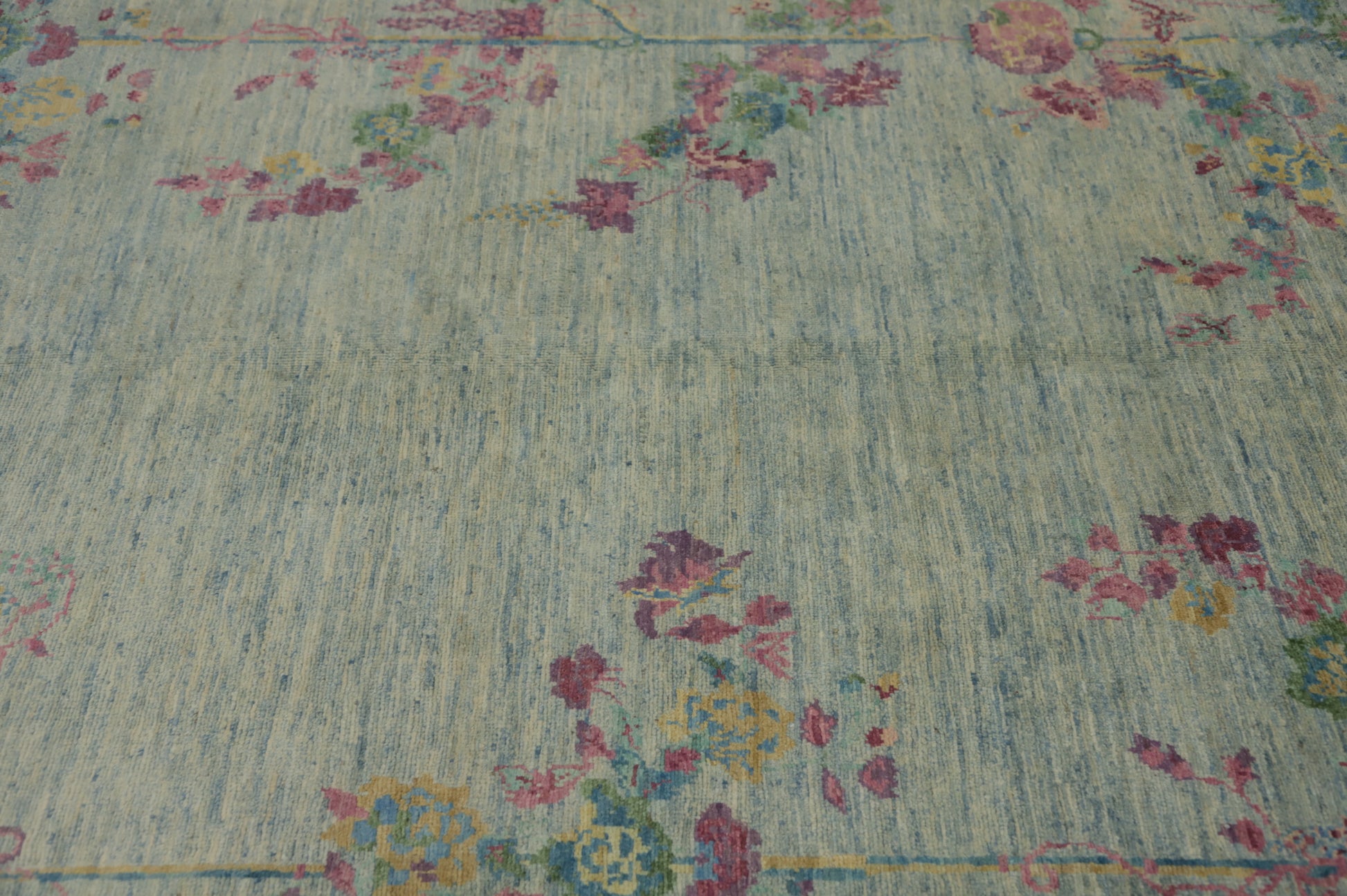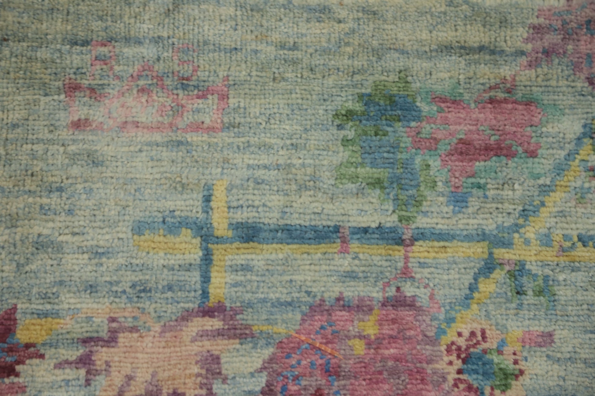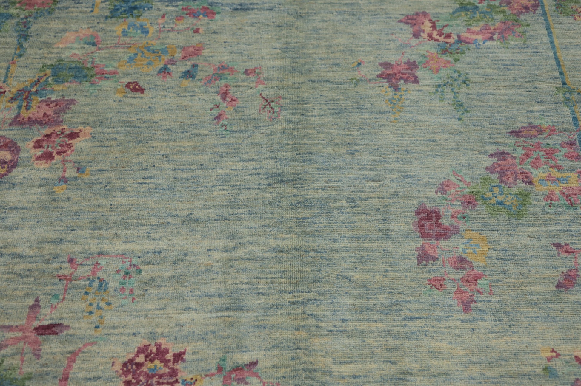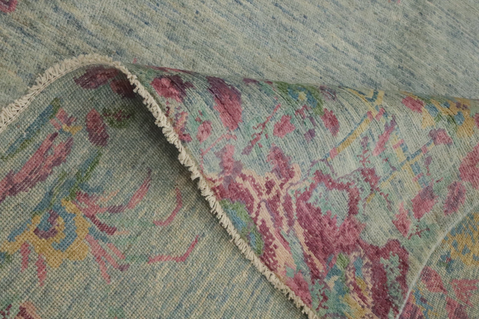 Floral Blue Ziegler Vegetable Dye Runner Rug 5x15