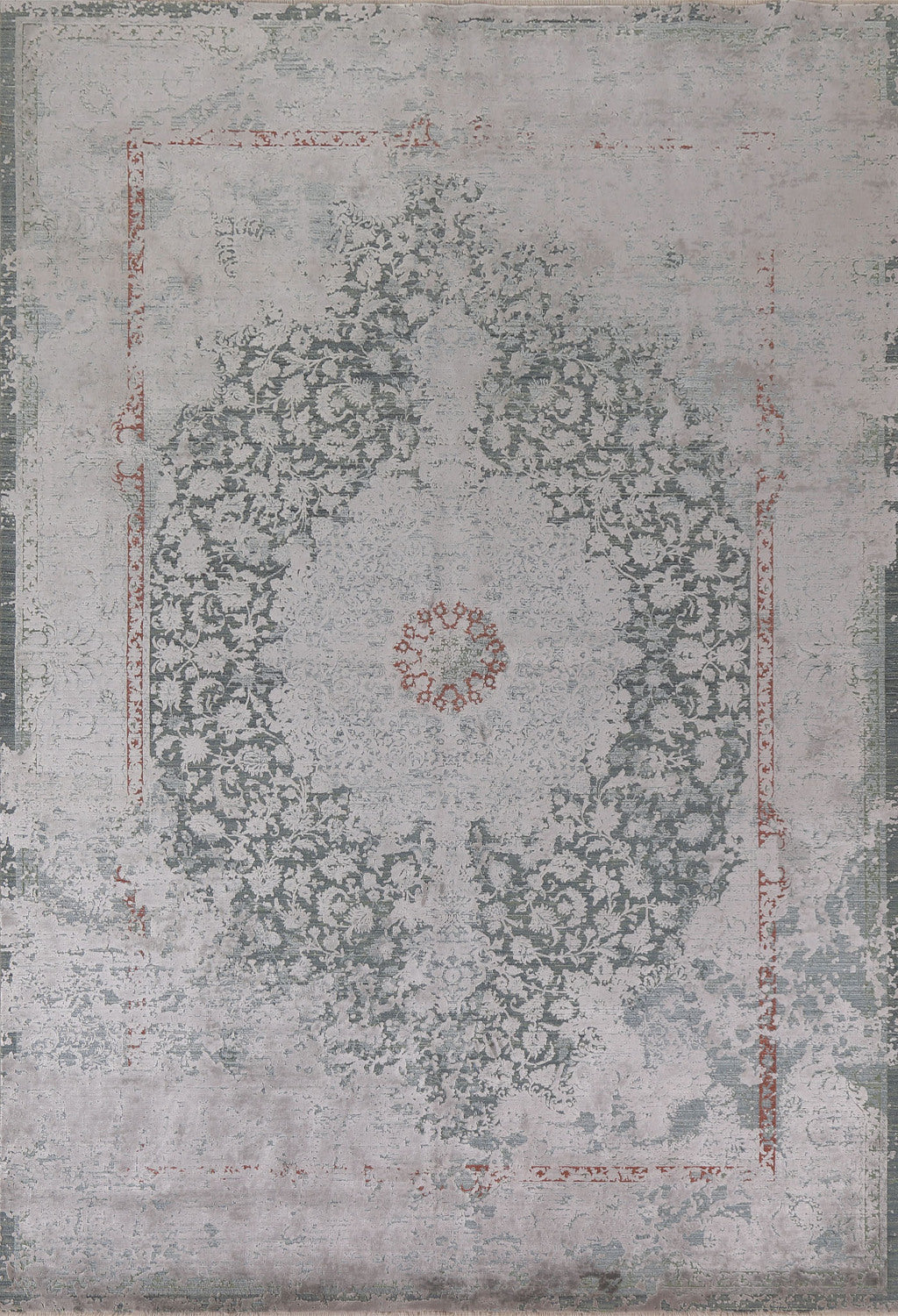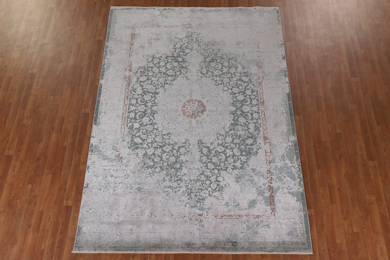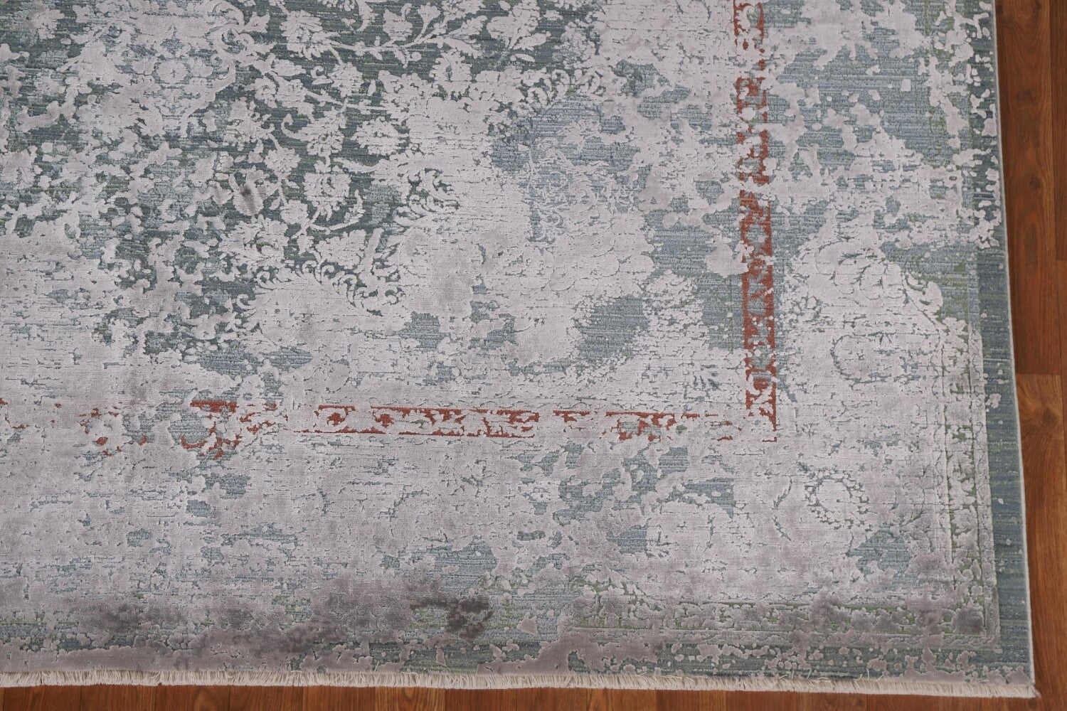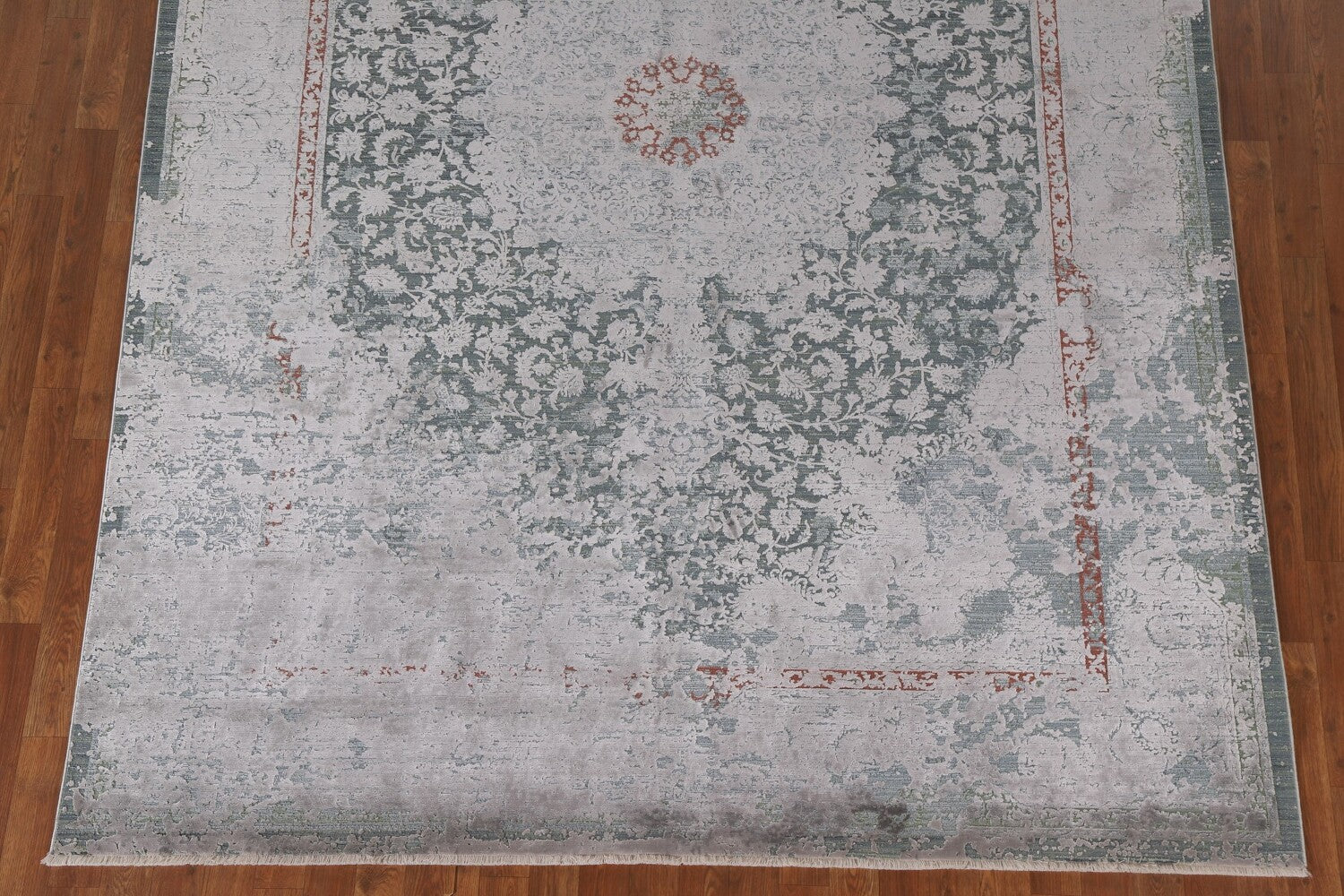 A Beautiful Genuine Turkey Kashan rug is Machine Made by skillful weavers in Turkey with 90% Silk - 10% Polyester Material. This rug is in condition. dimensions are 9' 8'' X 6' 10'' in foot and 295 X 208 in centimeter. the primary color is Greys & Charcoal.