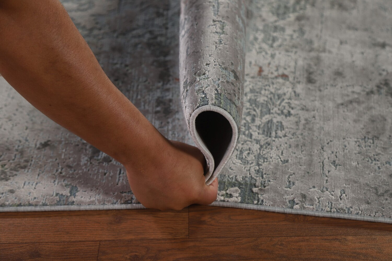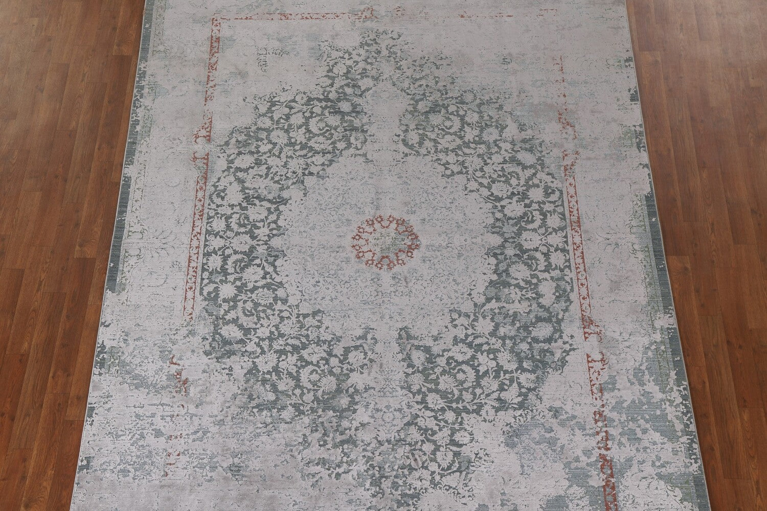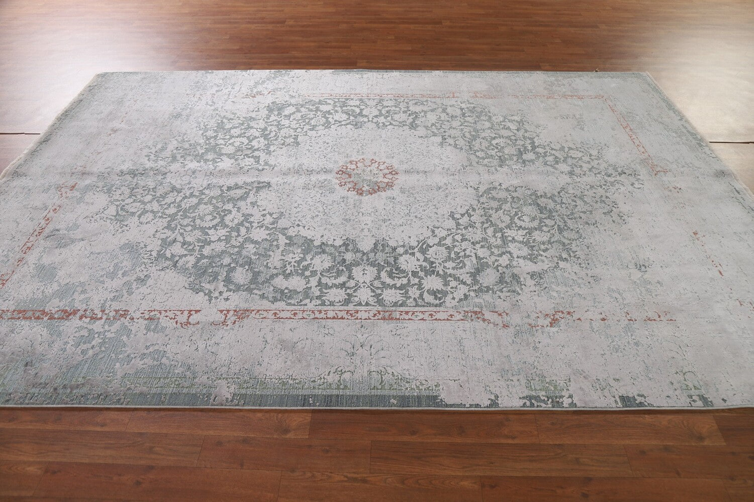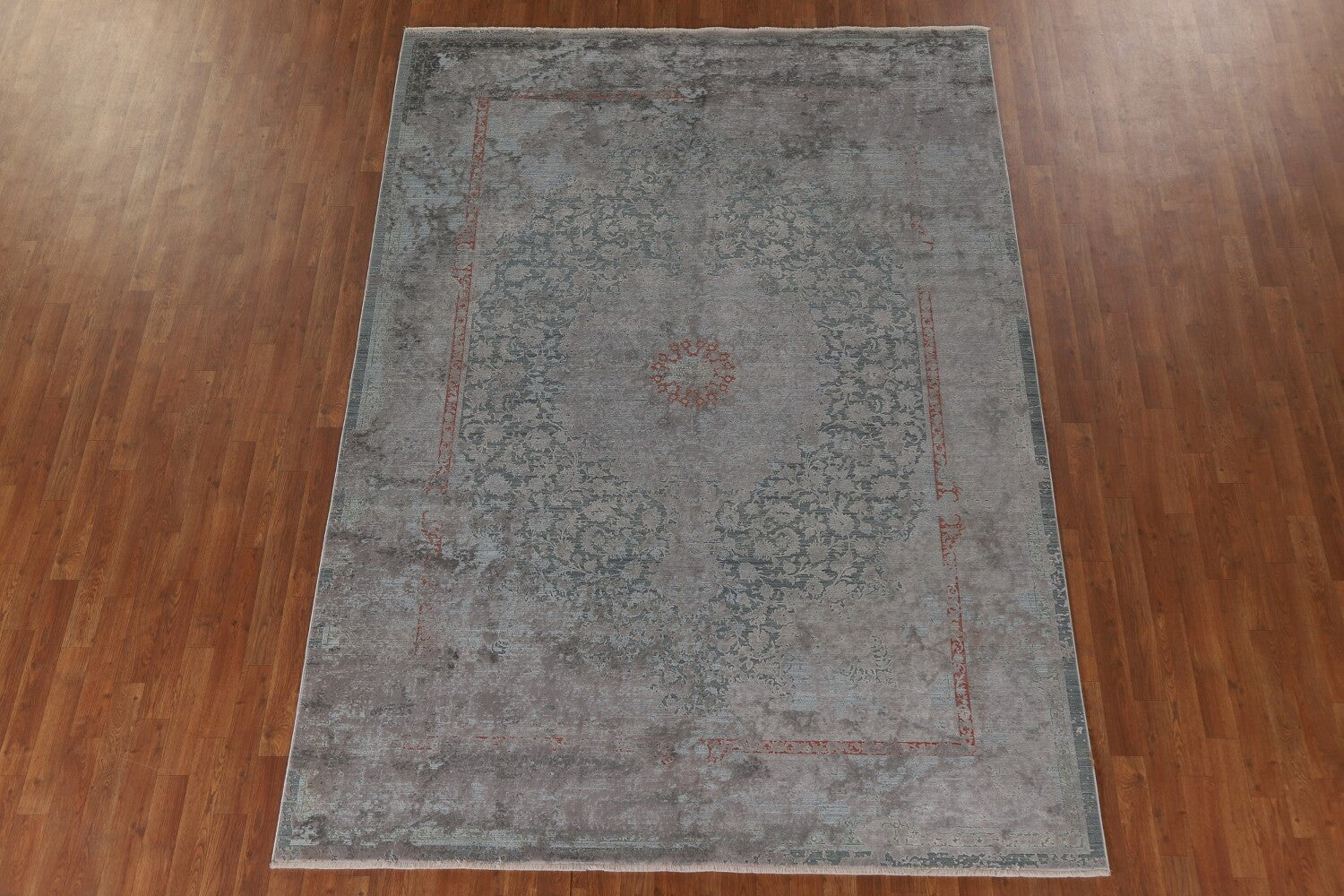 A Beautiful Genuine Turkey Kashan rug is Machine Made by skillful weavers in Turkey with 90% Silk - 10% Polyester Material. This rug is in condition. dimensions are 9' 8'' X 6' 10'' in foot and 295 X 208 in centimeter. the primary color is Greys & Charcoal.