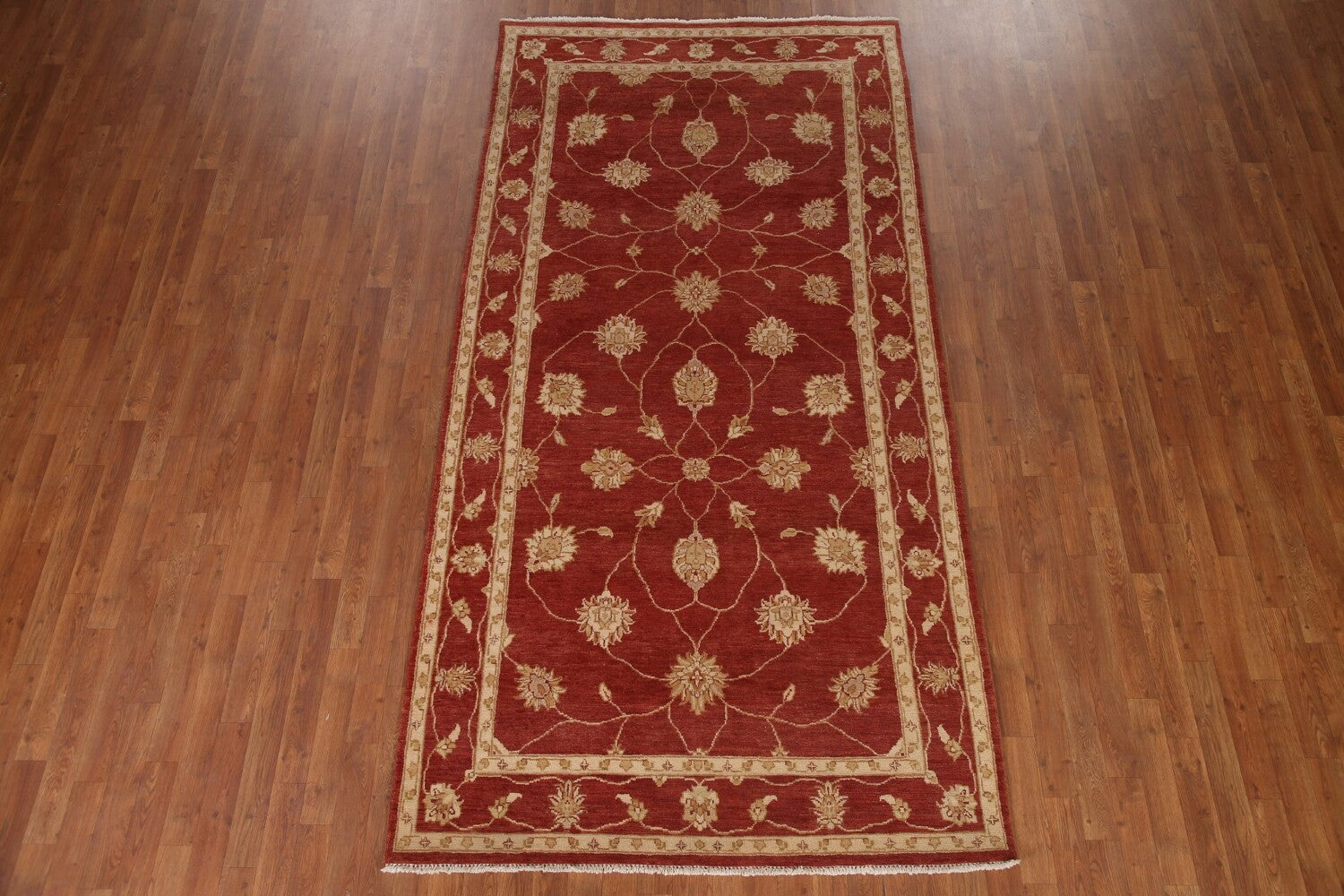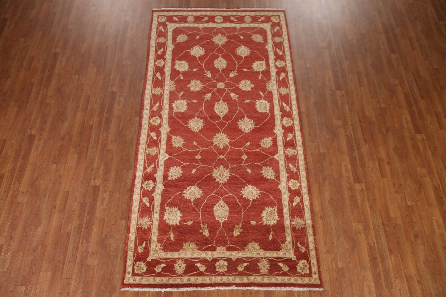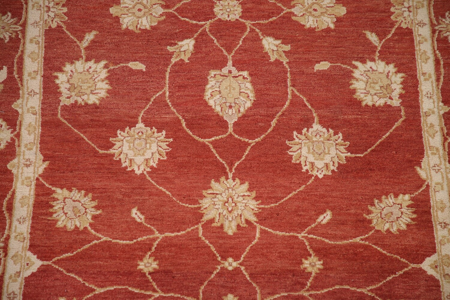 A Beautiful Genuine Pakistan Chobi-Peshawar rug is Hand Knotted by skillful weavers in Pakistan with 100% Wool Material. This rug is in condition. dimensions are 9' 9'' X 4' 11'' in foot and 297 X 150 in centimeter. the primary color is Red.