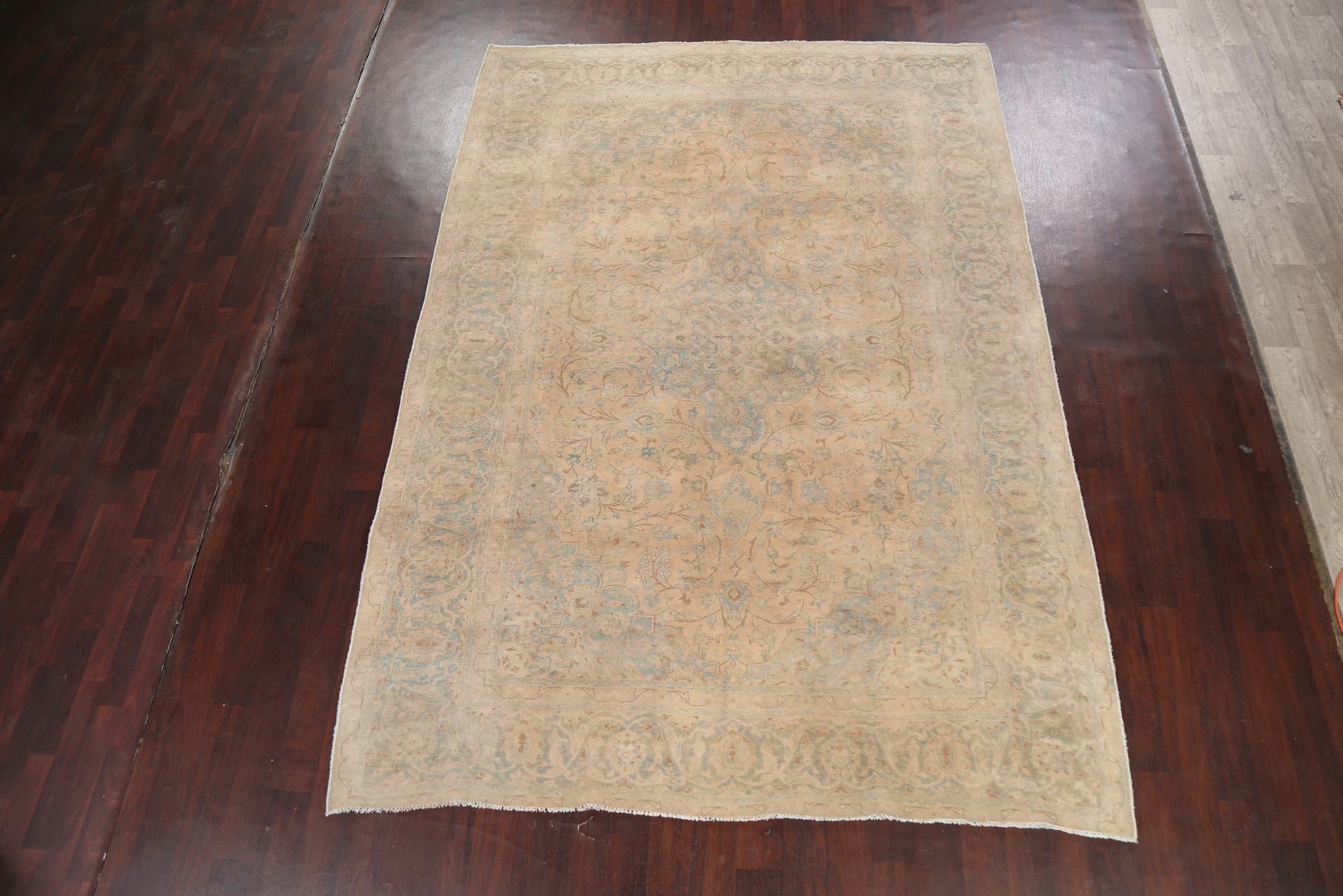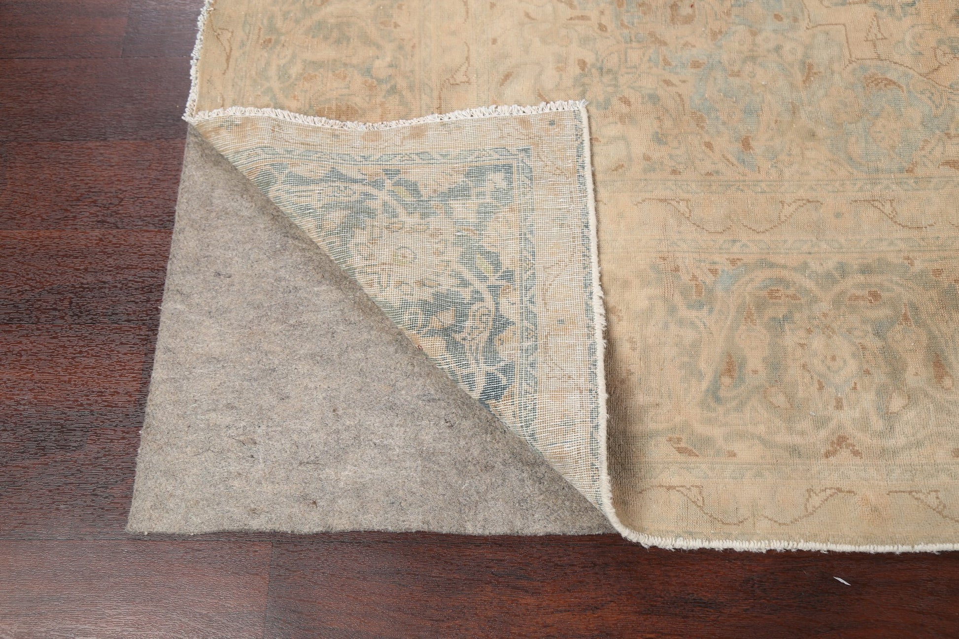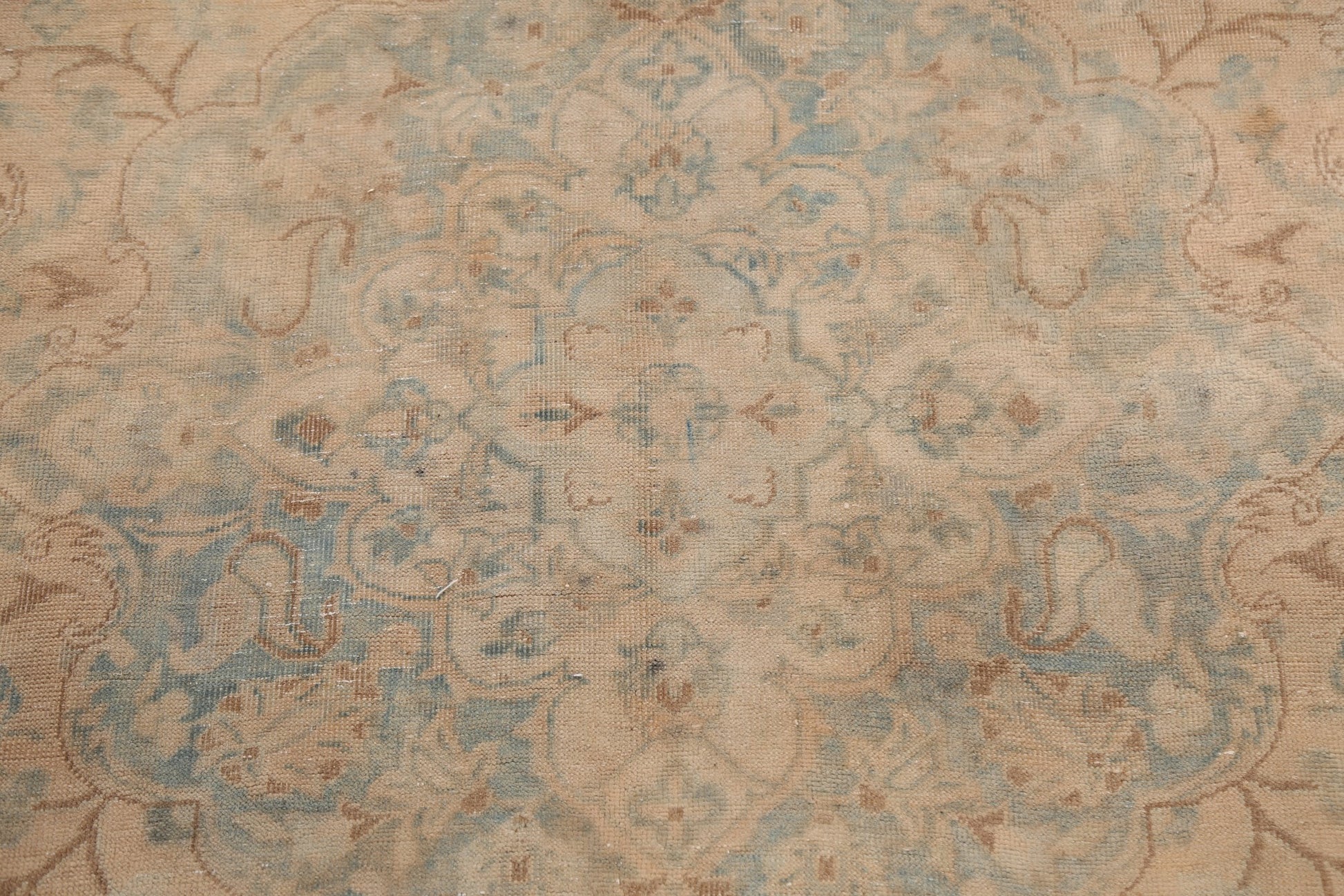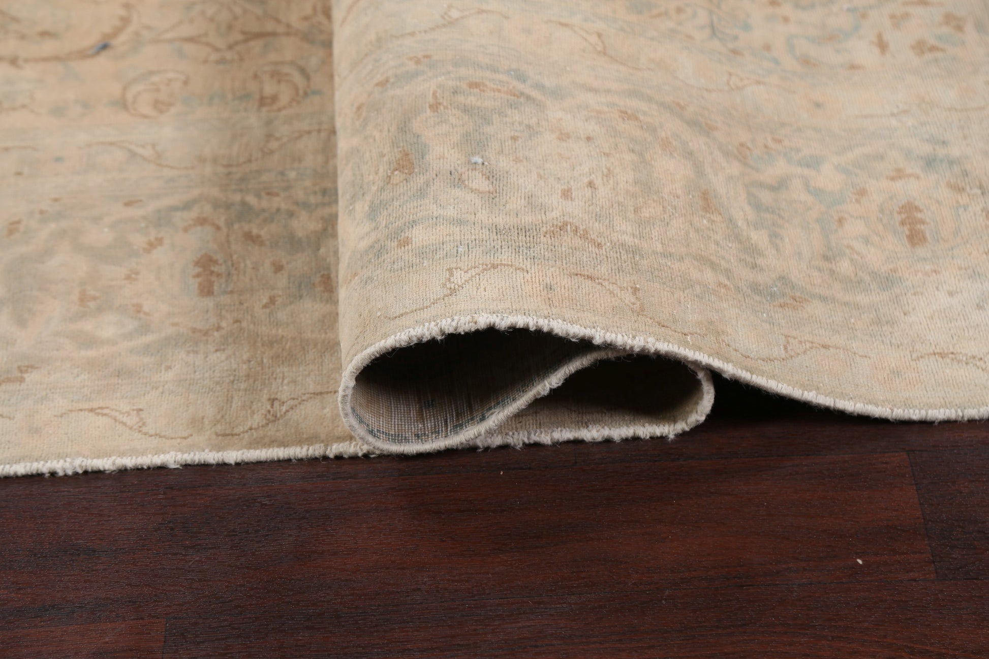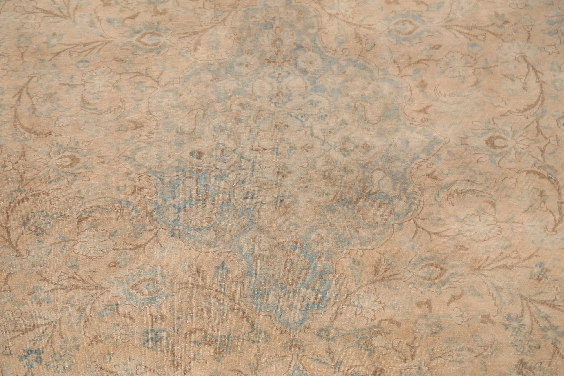 A Beautiful Genuine Persia ( Persia ) Kashan rug is Hand Knotted by skillful weavers in Persia ( Persia ) with 100% Wool Material. This rug is in Very Good (Evenly Low Pile) condition. dimensions are 11' 0'' X 7' 9'' in foot and 335 X 236 in centimeter. the primary color is Beige & Ivories.