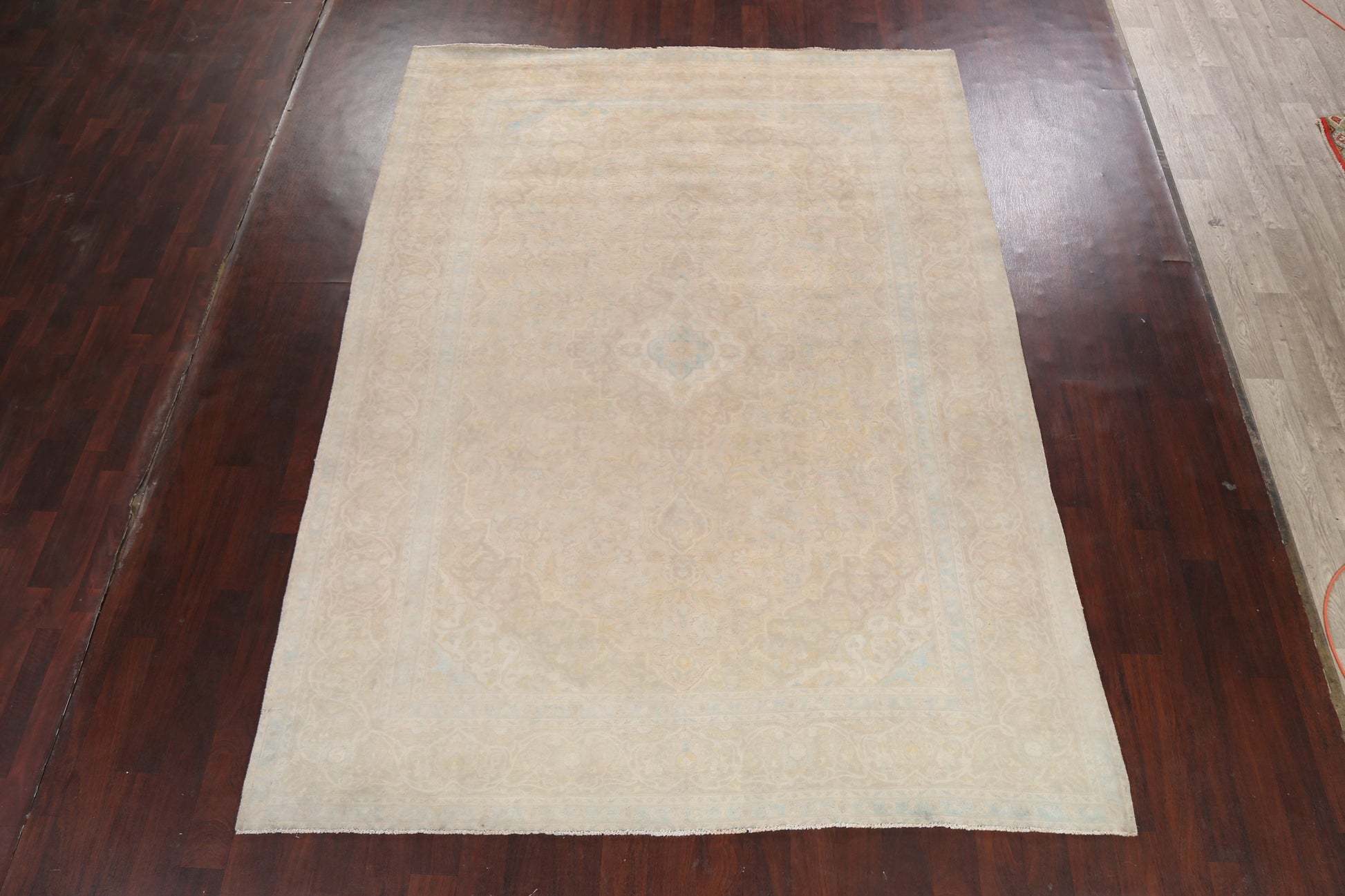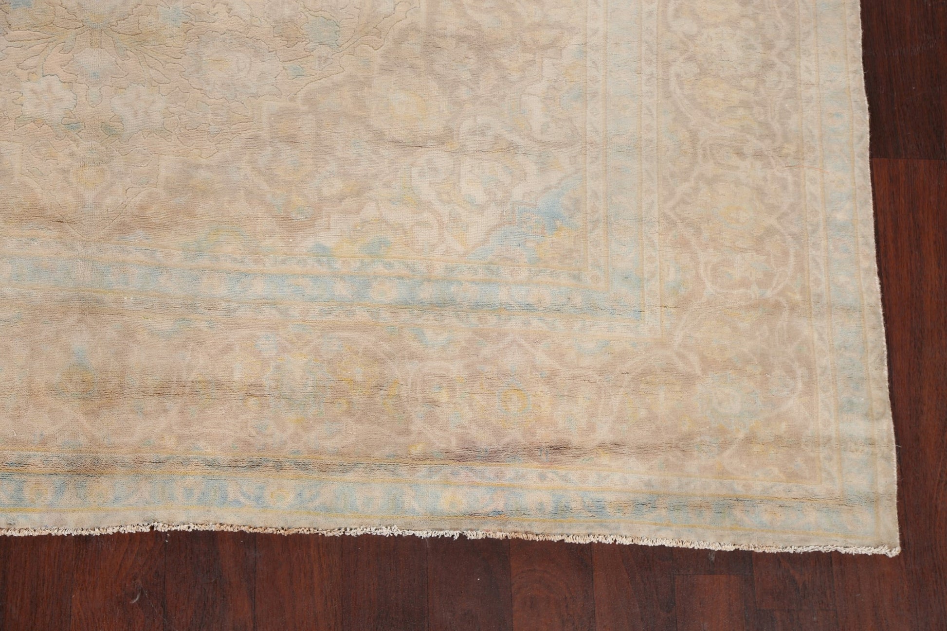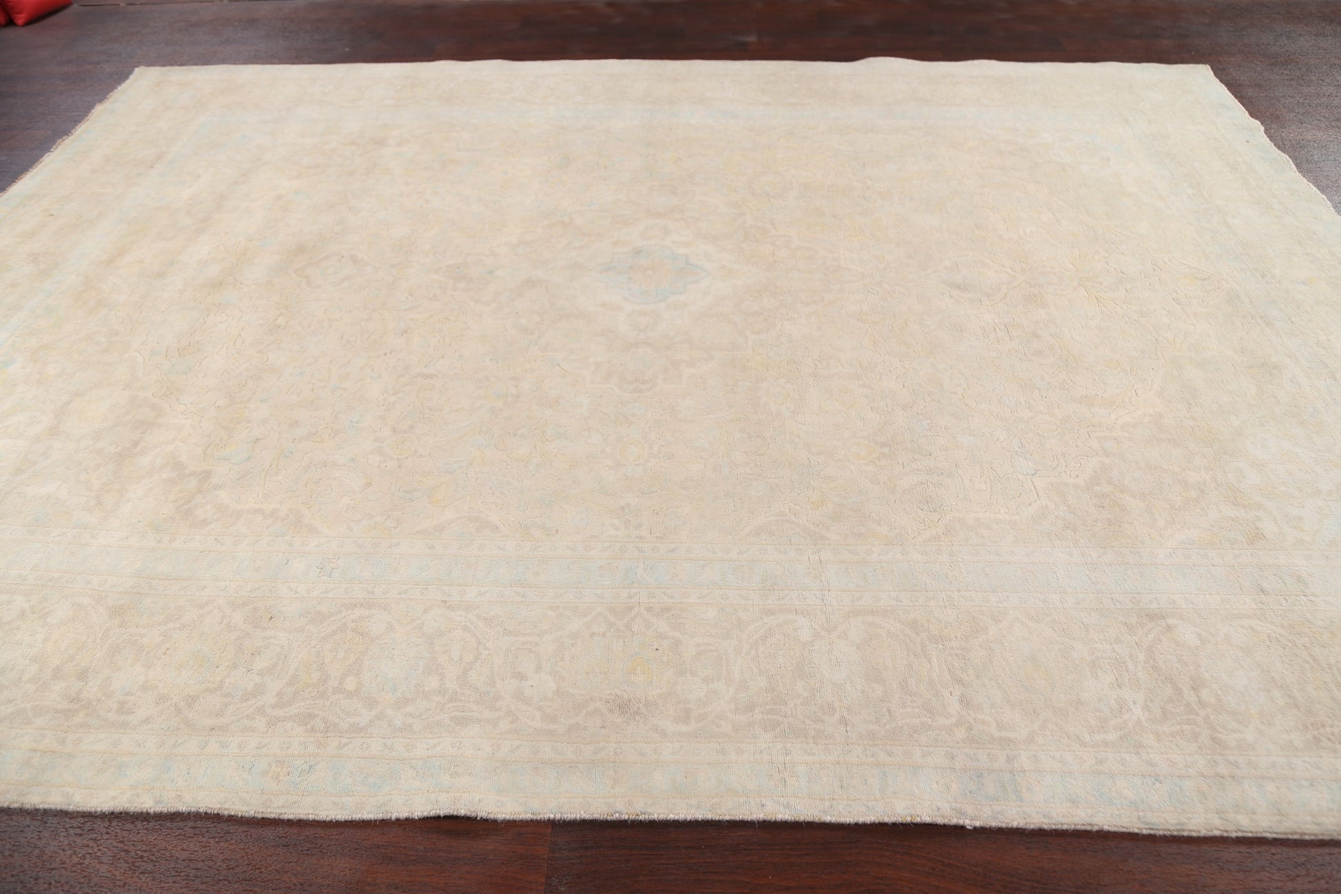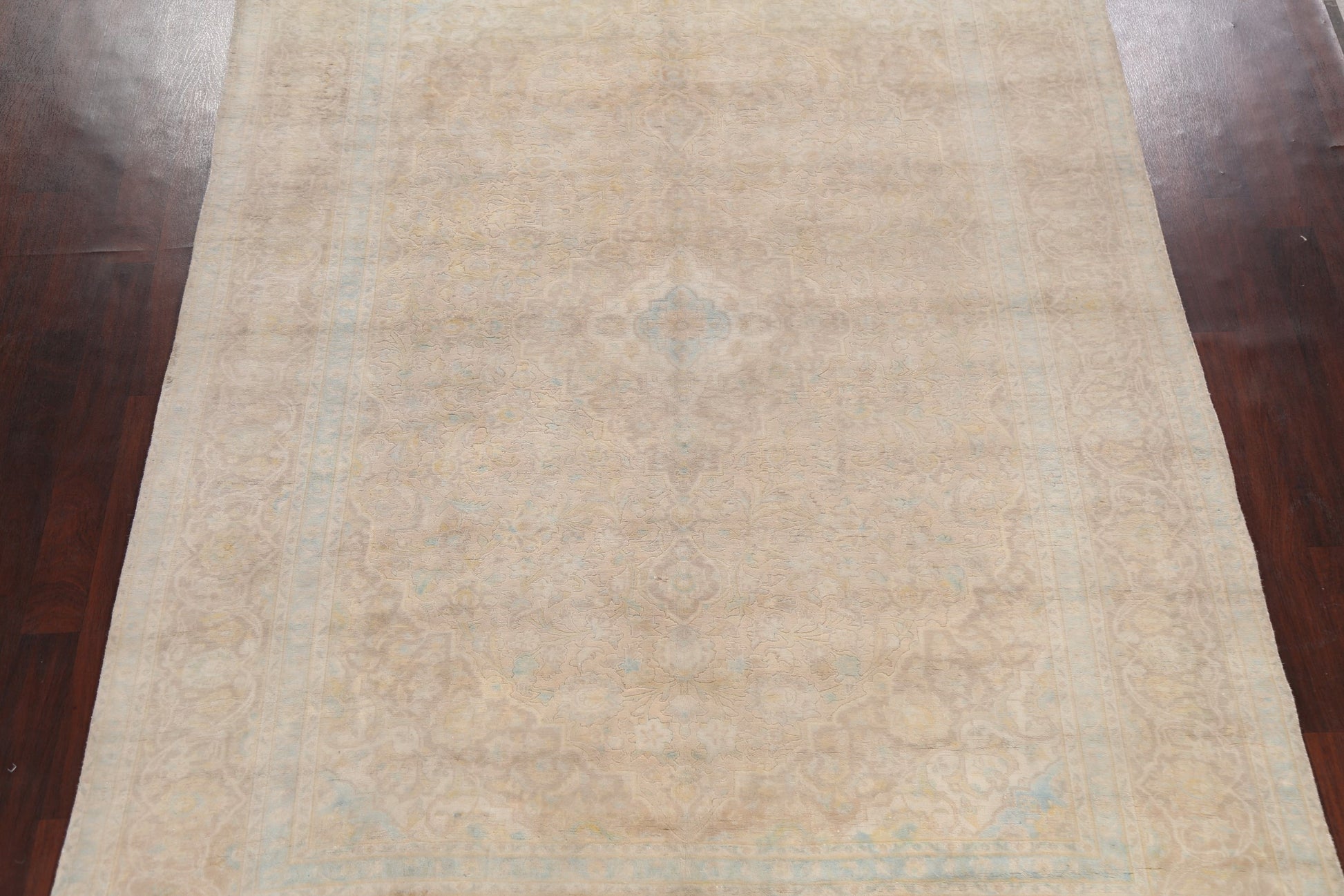 A Beautiful Genuine Persia ( Persia ) Kashan rug is Hand Knotted by skillful weavers in Persia ( Persia ) with 100% Wool Material. This rug is in Very Good condition. dimensions are 10' 8'' X 8' 0'' in foot and 325 X 244 in centimeter. the primary color is Beige & Ivories.
