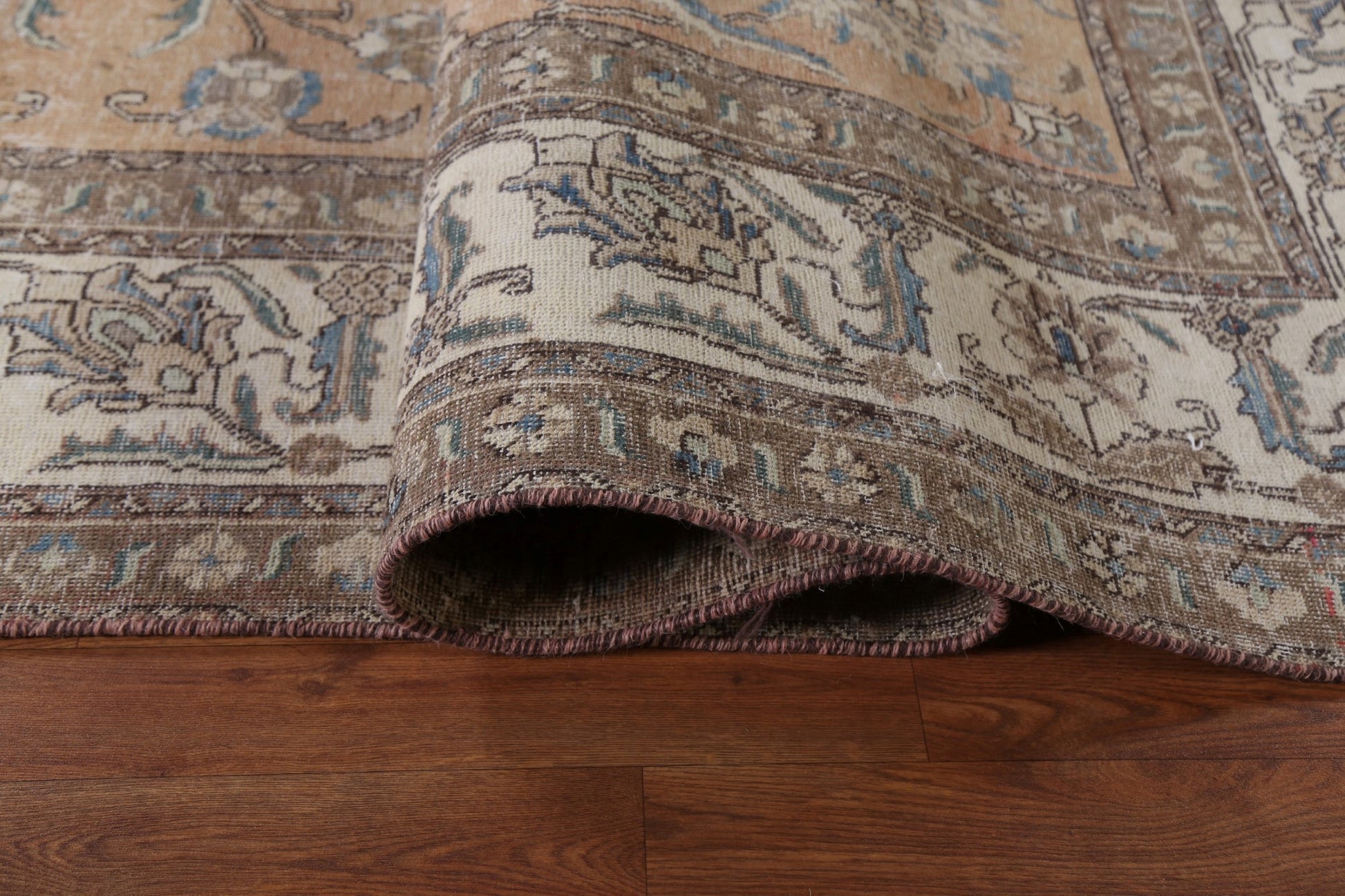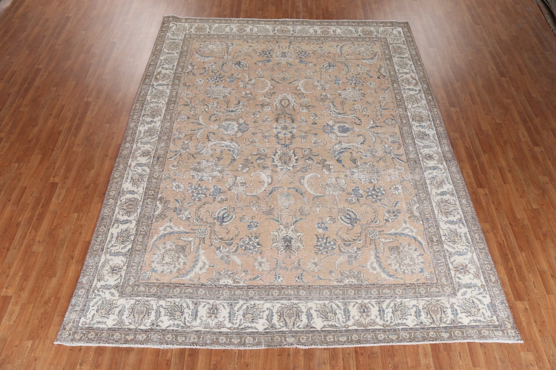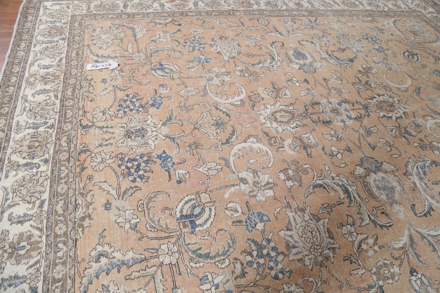 Floral Distressed Tabriz Persian Area Rug 10x13