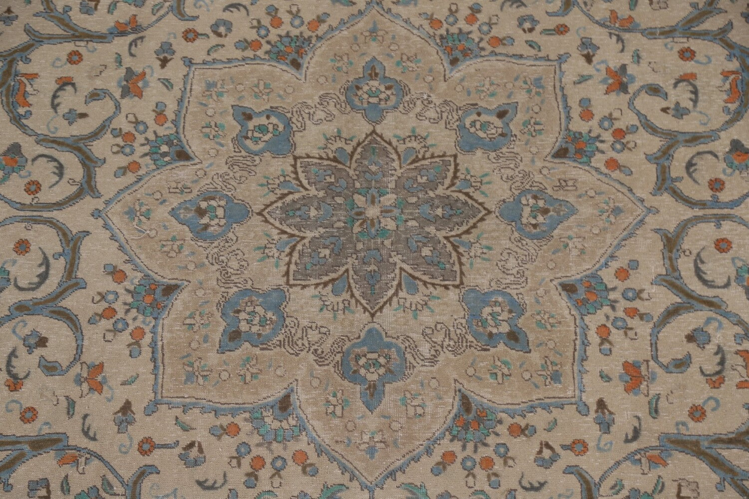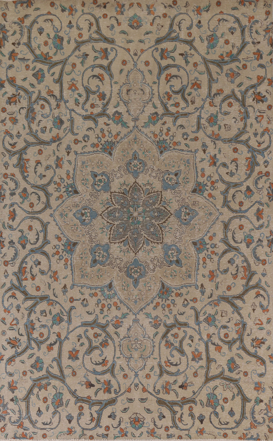 A Beautiful Genuine Persia ( Persia ) Tabriz rug is Hand Knotted by skillful weavers in Persia ( Persia ) with 100% Wool Material. This rug is in Very Good (Evenly Low Pile) condition. dimensions are 10' 1'' X 6' 10'' in foot and 307 X 208 in centimeter. the primary color is Beige & Ivories.
