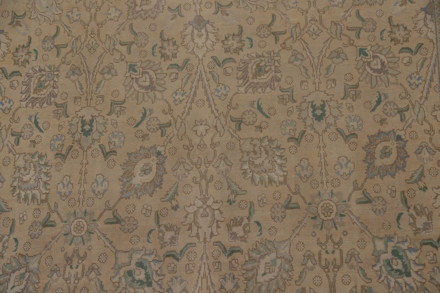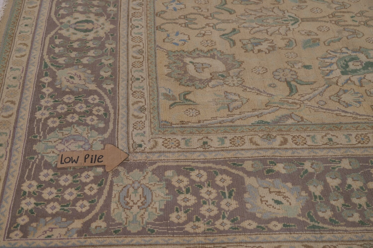A Beautiful Genuine Persia ( Persia ) Tabriz rug is Hand Knotted by skillful weavers in Persia ( Persia ) with 100% Wool Material. This rug is in Very Good (Low Pile) condition. dimensions are 12' 9'' X 9' 5'' in foot and 389 X 287 in centimeter. the primary color is Beige & Ivories.