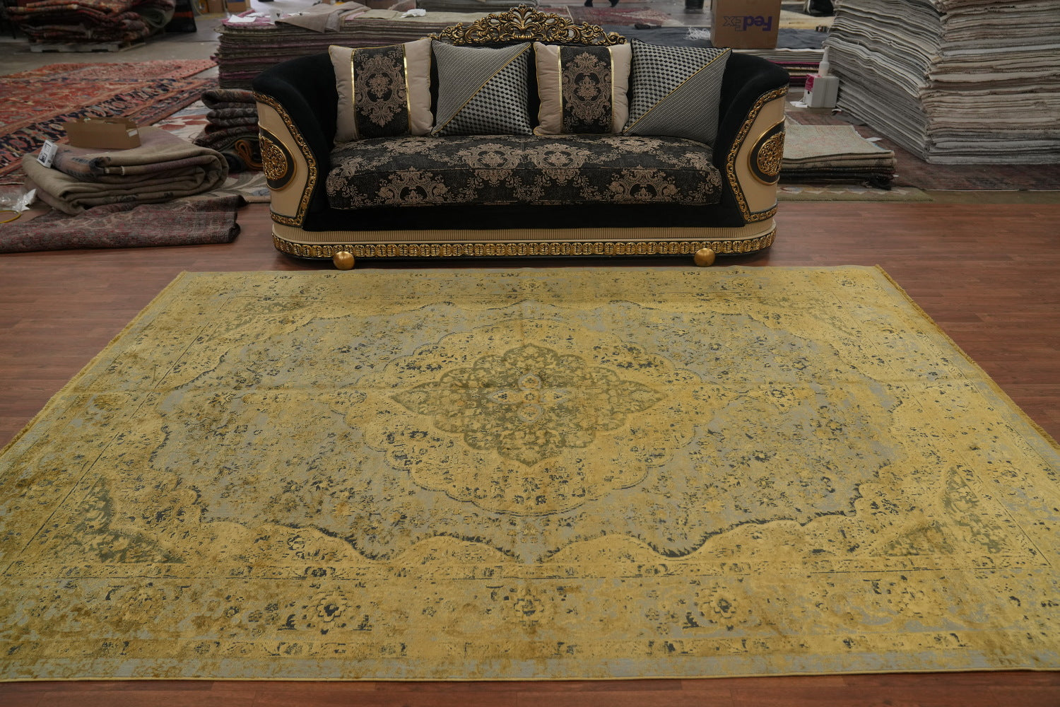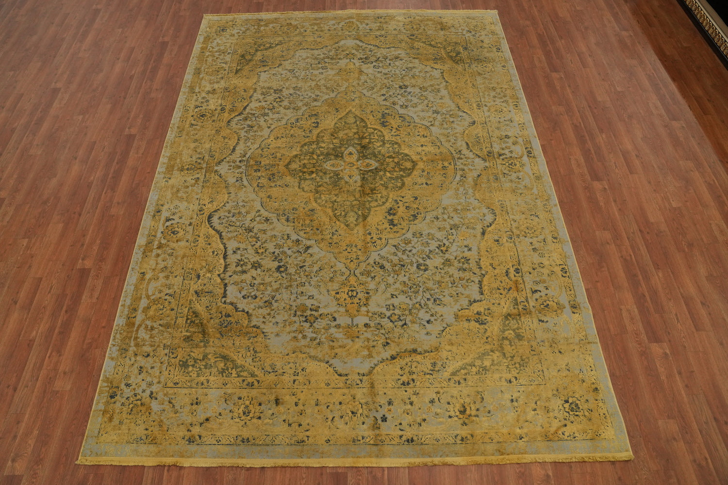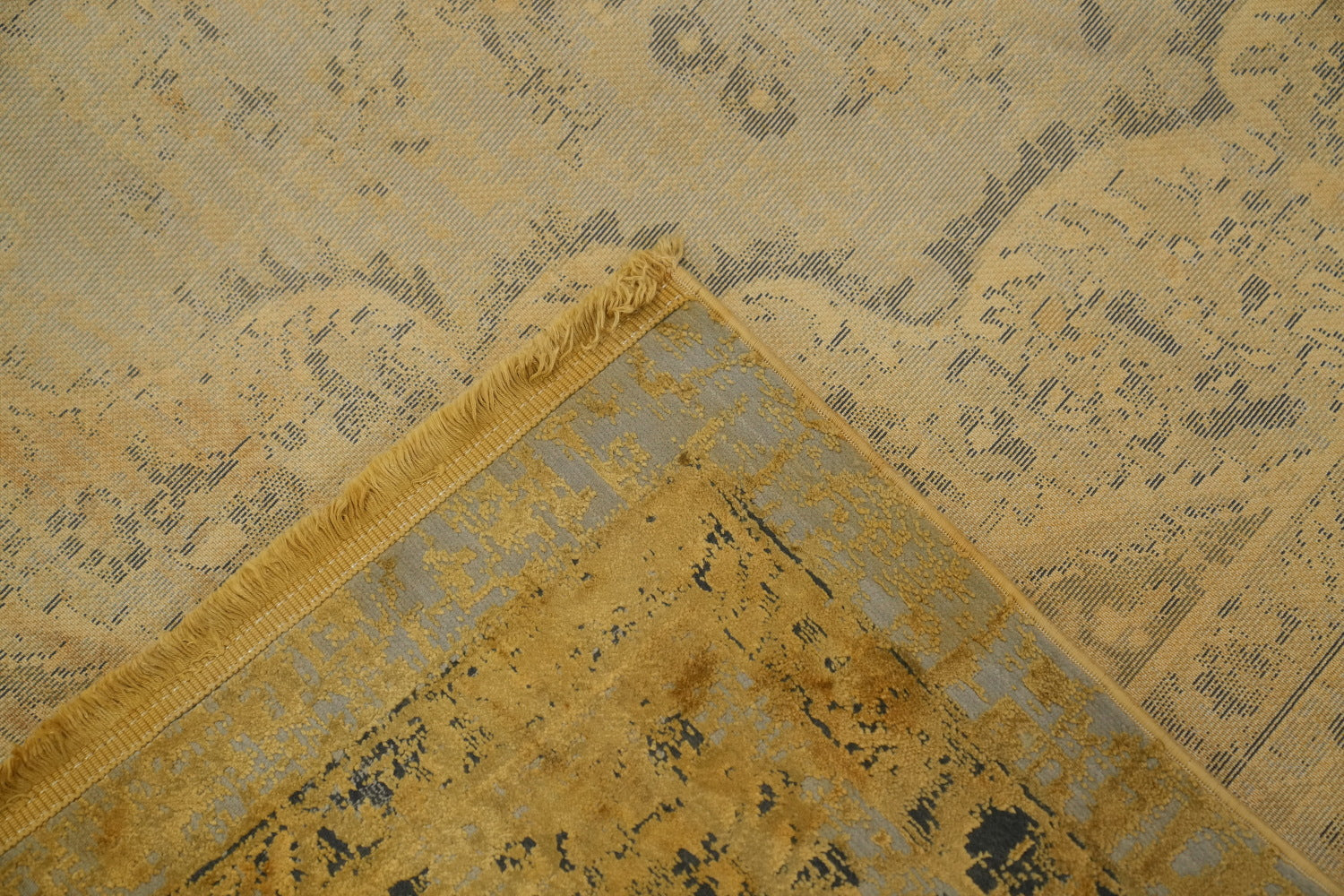 A Beautiful Genuine Turkey Tabriz rug is Machine Made by skillful weavers in Turkey with Polyester Material. This rug is in New, First Quality condition. dimensions are 10' 8'' X 7' 7'' in foot and 325 X 231 in centimeter. the primary color is Yellow & Gold.