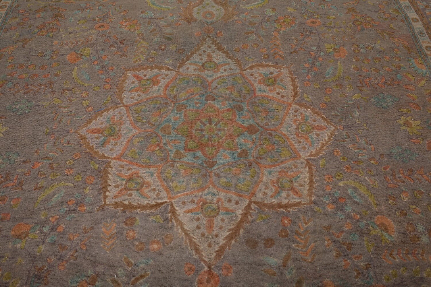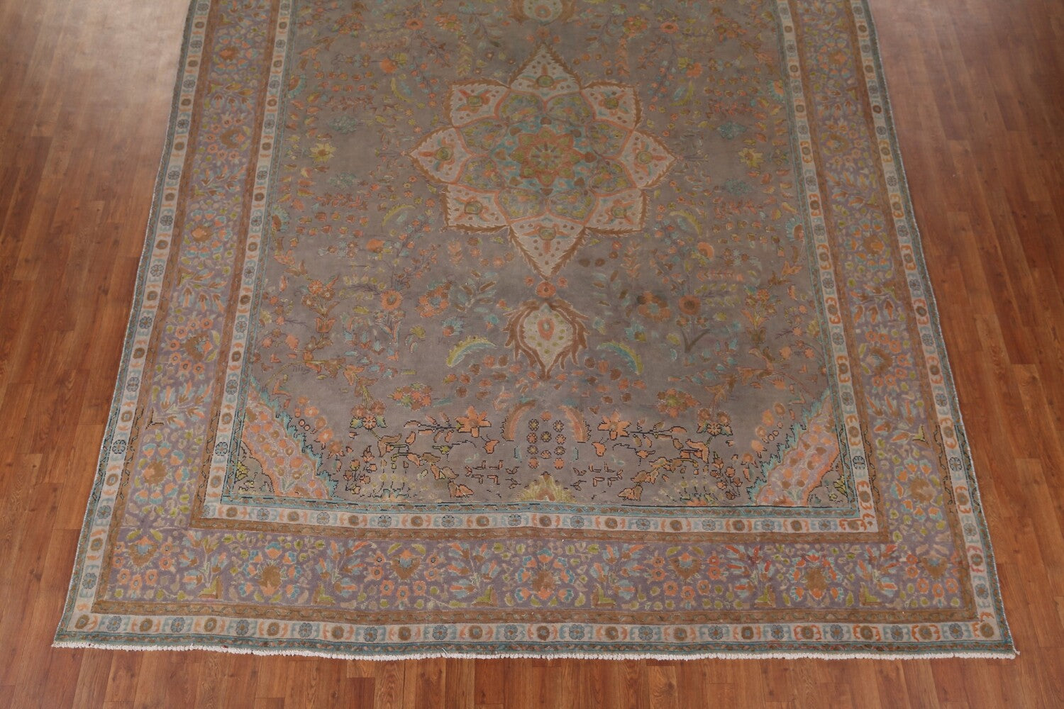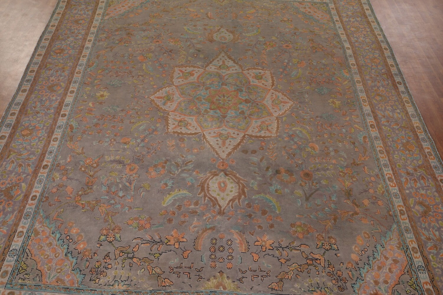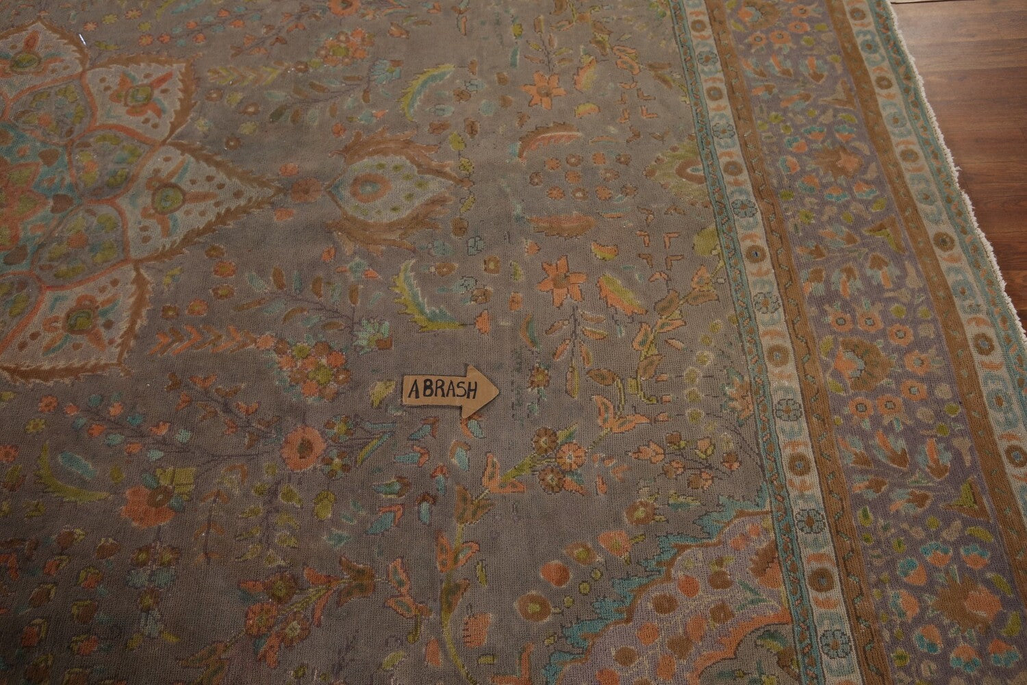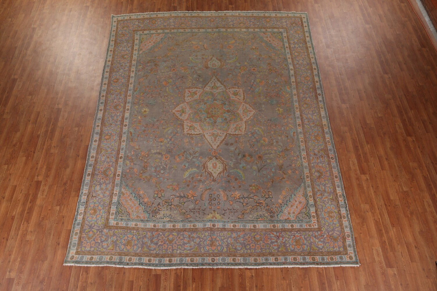 A Beautiful Genuine Persia ( Persia ) Tabriz rug is Hand Knotted by skillful weavers in Persia ( Persia ) with 100% Wool Material. This rug is in Very Good (Evenly Low Pile-Abrash) condition. dimensions are 12' 7'' X 9' 4'' in foot and 384 X 284 in centimeter. the primary color is Greys & Charcoal.