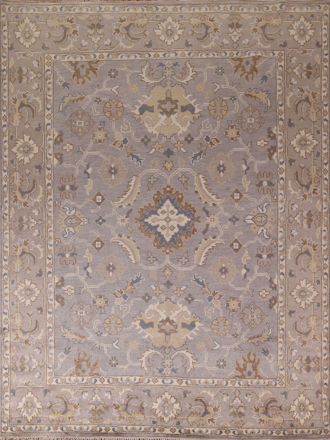 Floral Gray Wool Oushak Indian Area Rug 8x10
