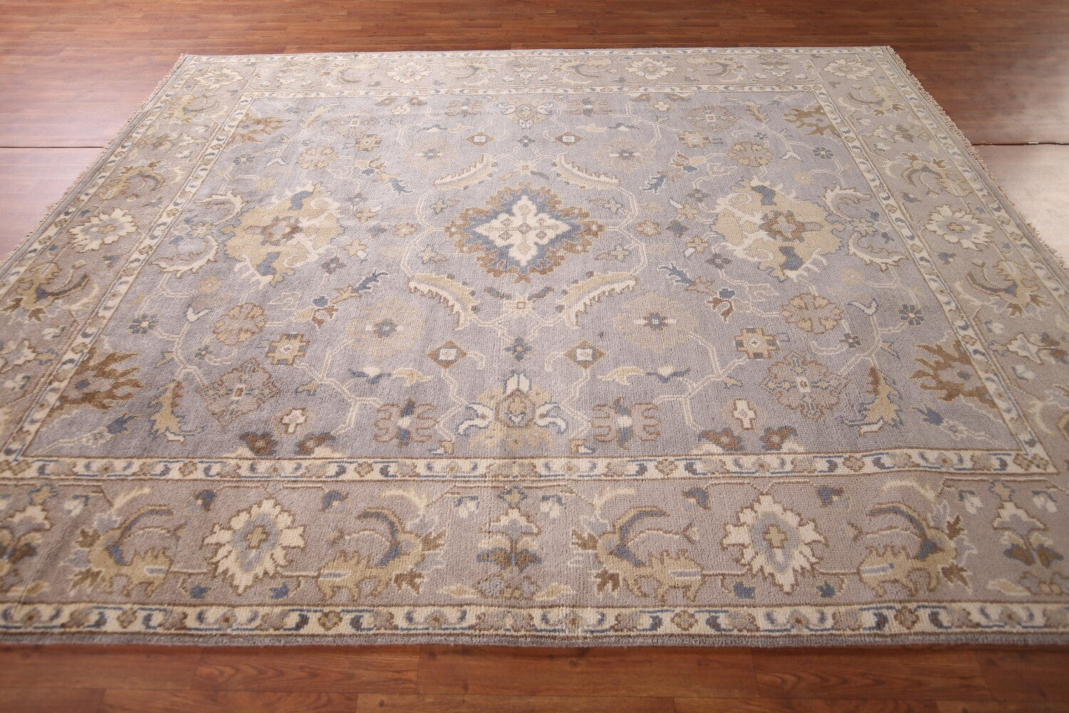 A Beautiful Genuine India Oushak rug is Hand Knotted by skillful weavers in India with 100% Wool Material. This rug is in New, First Quality condition. dimensions are 9' 11'' X 8' 1'' in foot and 302 X 246 in centimeter. the primary color is Greys & Charcoal.