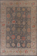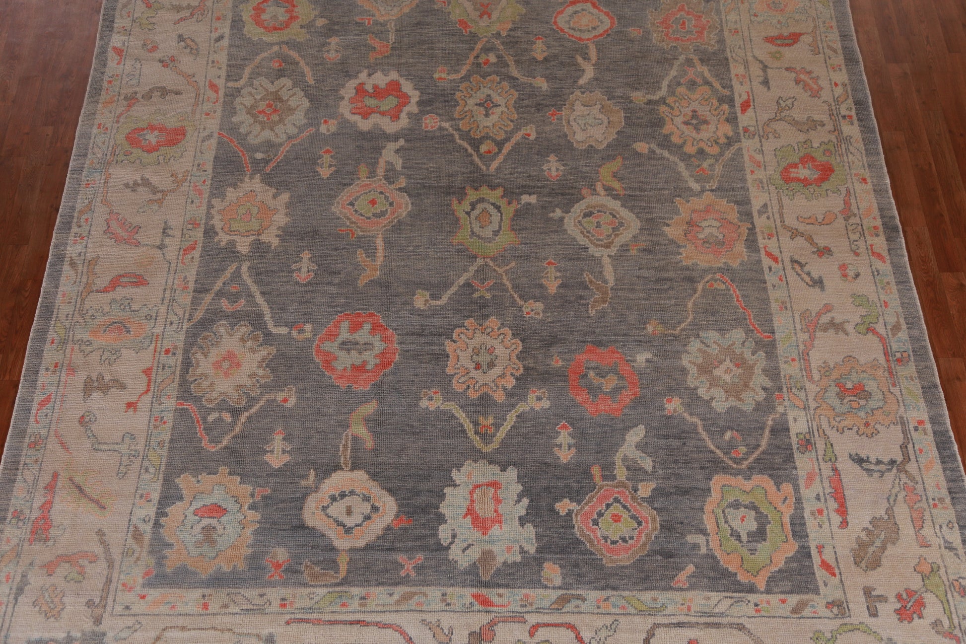 Floral Gray Wool Oushak Vegetable Dye Large Rug 10x14