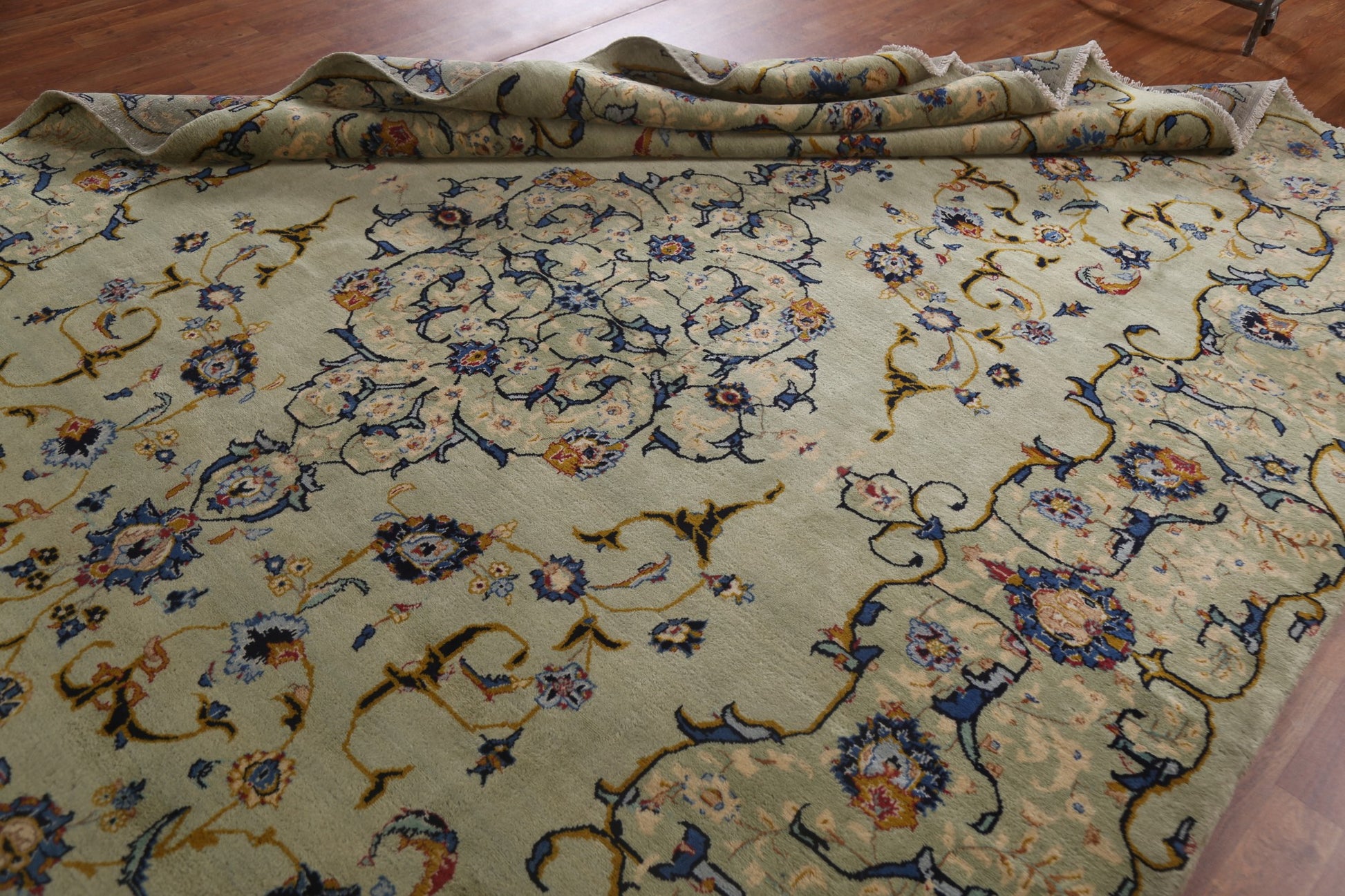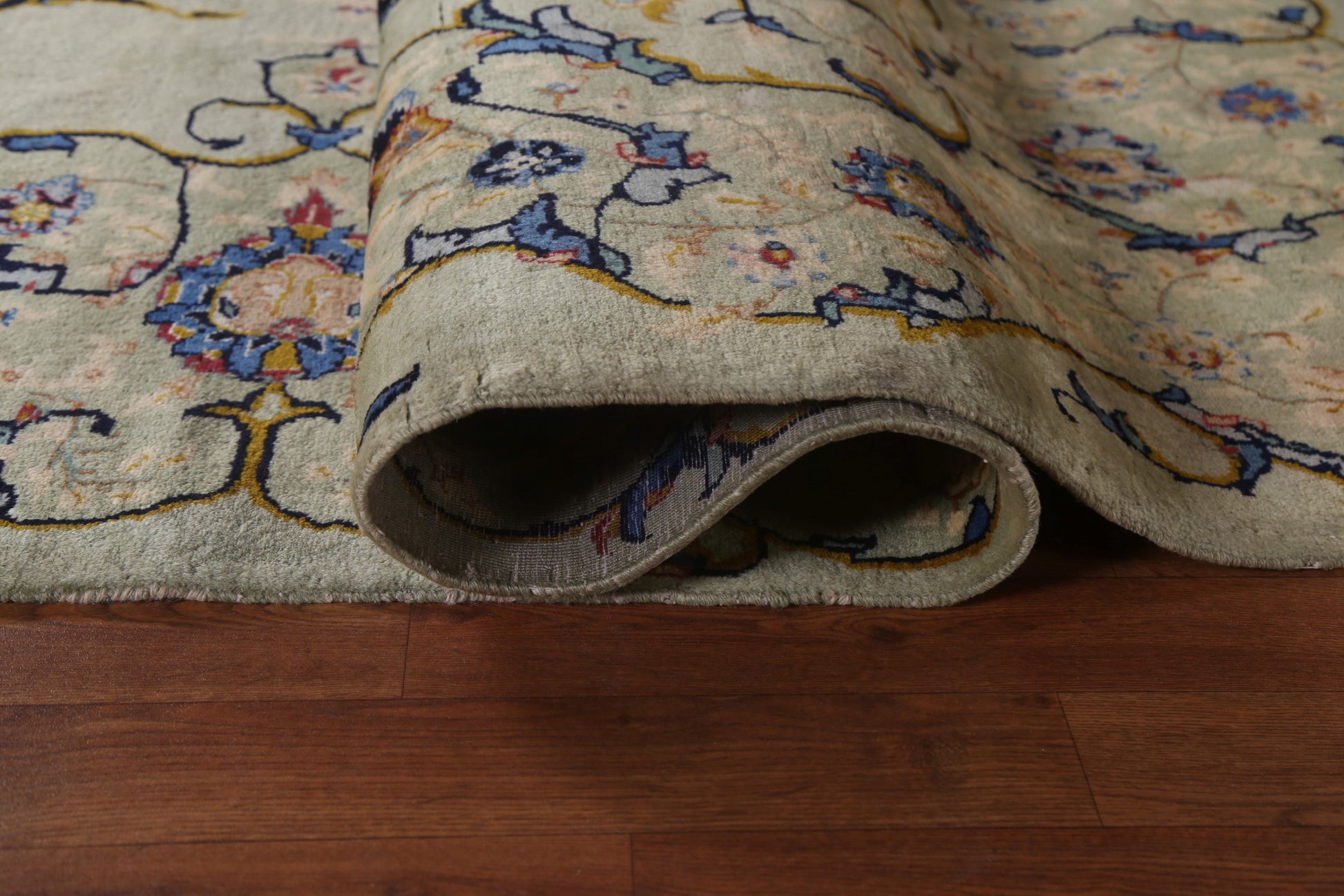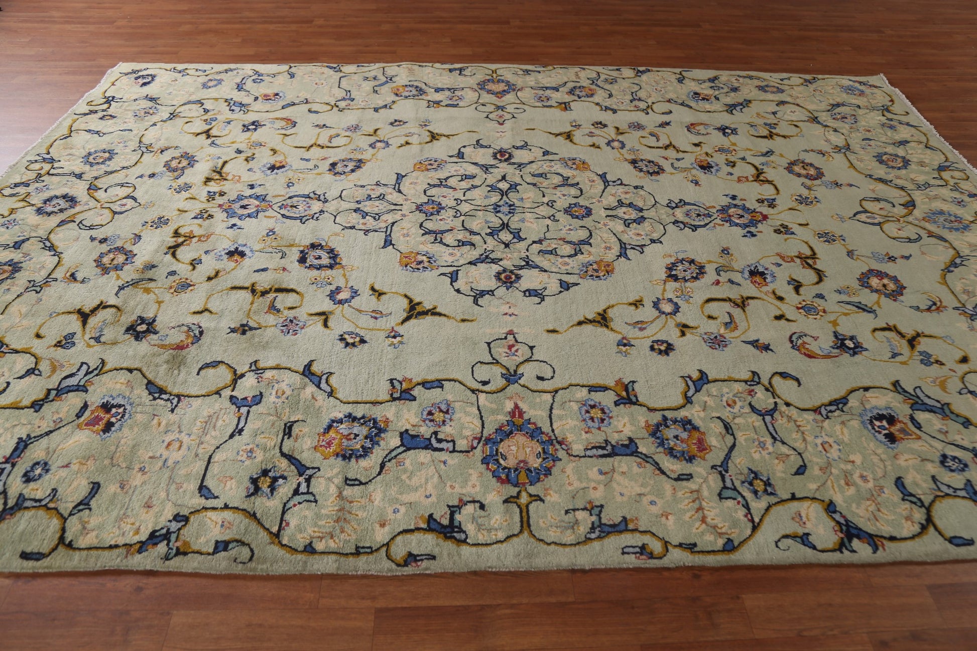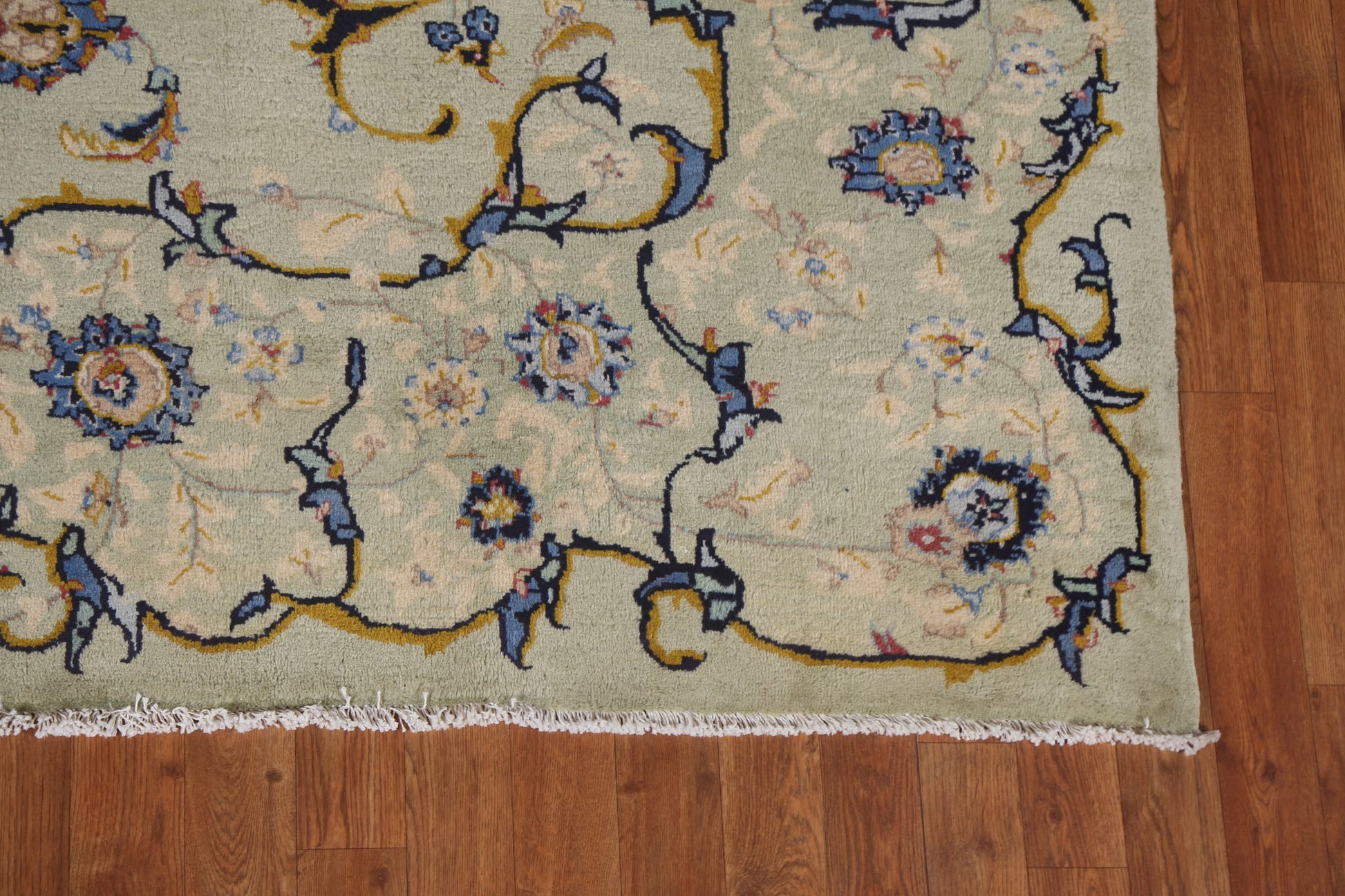 A Beautiful Genuine Persia ( Persia ) Kashan rug is Hand Knotted by skillful weavers in Persia ( Persia ) with 100% Wool Material. This rug is in Very Good condition. dimensions are 11' 1'' X 8' 0'' in foot and 338 X 244 in centimeter. the primary color is Green.
